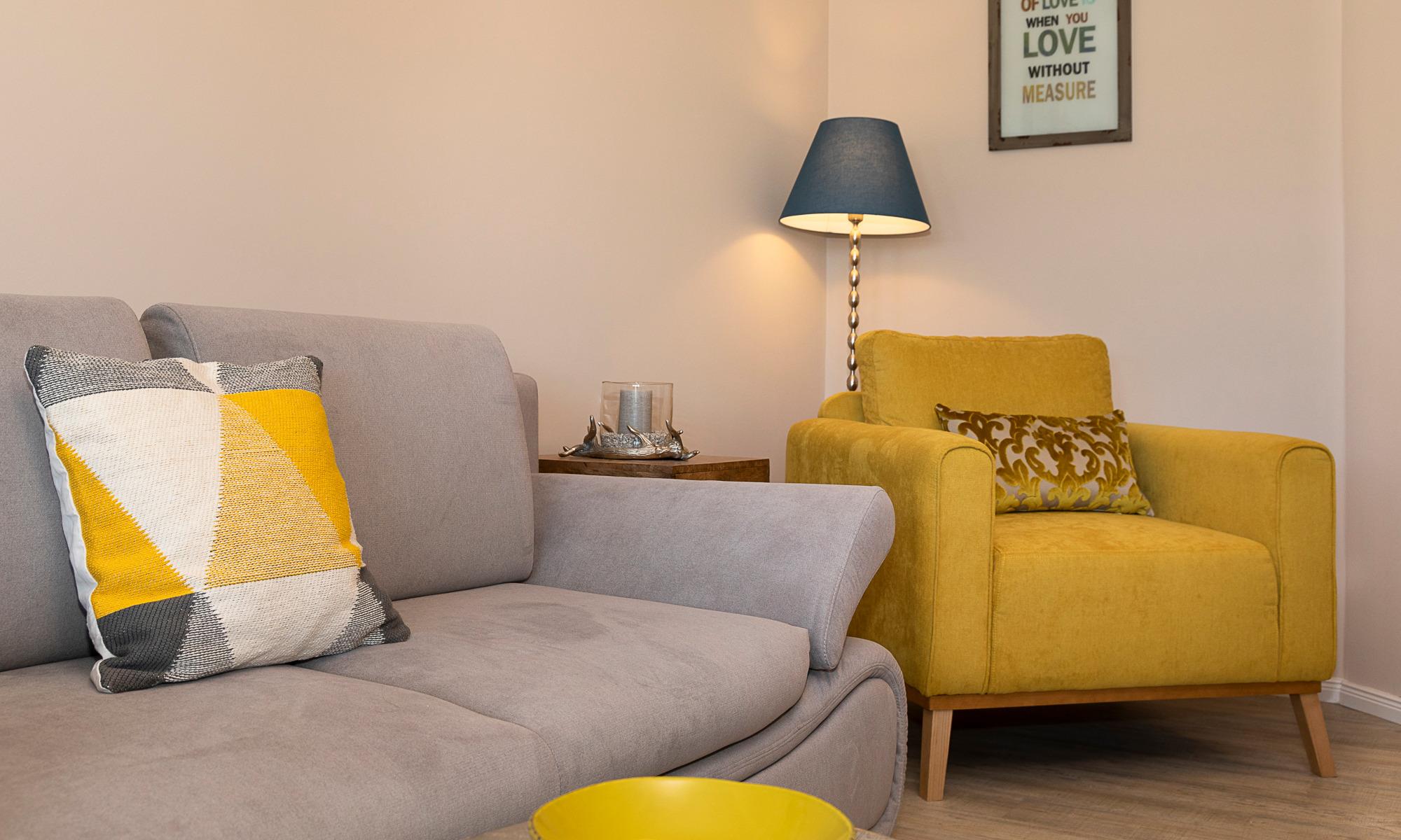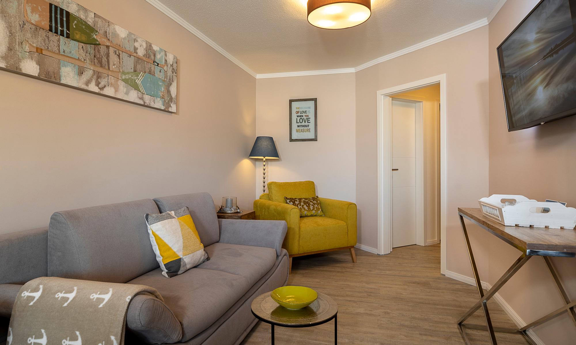 Der Wohn-Essbereich ist mit einer bequemen Couch (welche schnell in ein komfortables Schlafsofa umgebaut werden kann), einem Sessel sowie Beistelltischchen eingerichtet. Neben dem Flachbildfernseher steht Ihnen selbstverständlich kostenloses WLAN zur Verfügung. Die helle Küche mit angrenzendem Esstisch ist komplett ausgestattet. Schöne überdachte Loggia mit Morgensonne und Blick auf die Ostsee. Hier stehen Ihnen Tisch und Stühle zur Verfügung. Das Schlafzimmer ist mit einem Doppelbett (1,60 x 2,00m) und einem geräumigen Kleiderschrank sowie einem Flachbildfernseher ausgestattet. Auch von hier aus haben Sie einen Ostseeblick und Zugang zur Loggia. Das Badezimmer verfügt über eine bodentiefe Dusche und einen Handtuchheizkörper. Eine sehr angenehme Lösung in dieser Wohnung ist das separate WC.