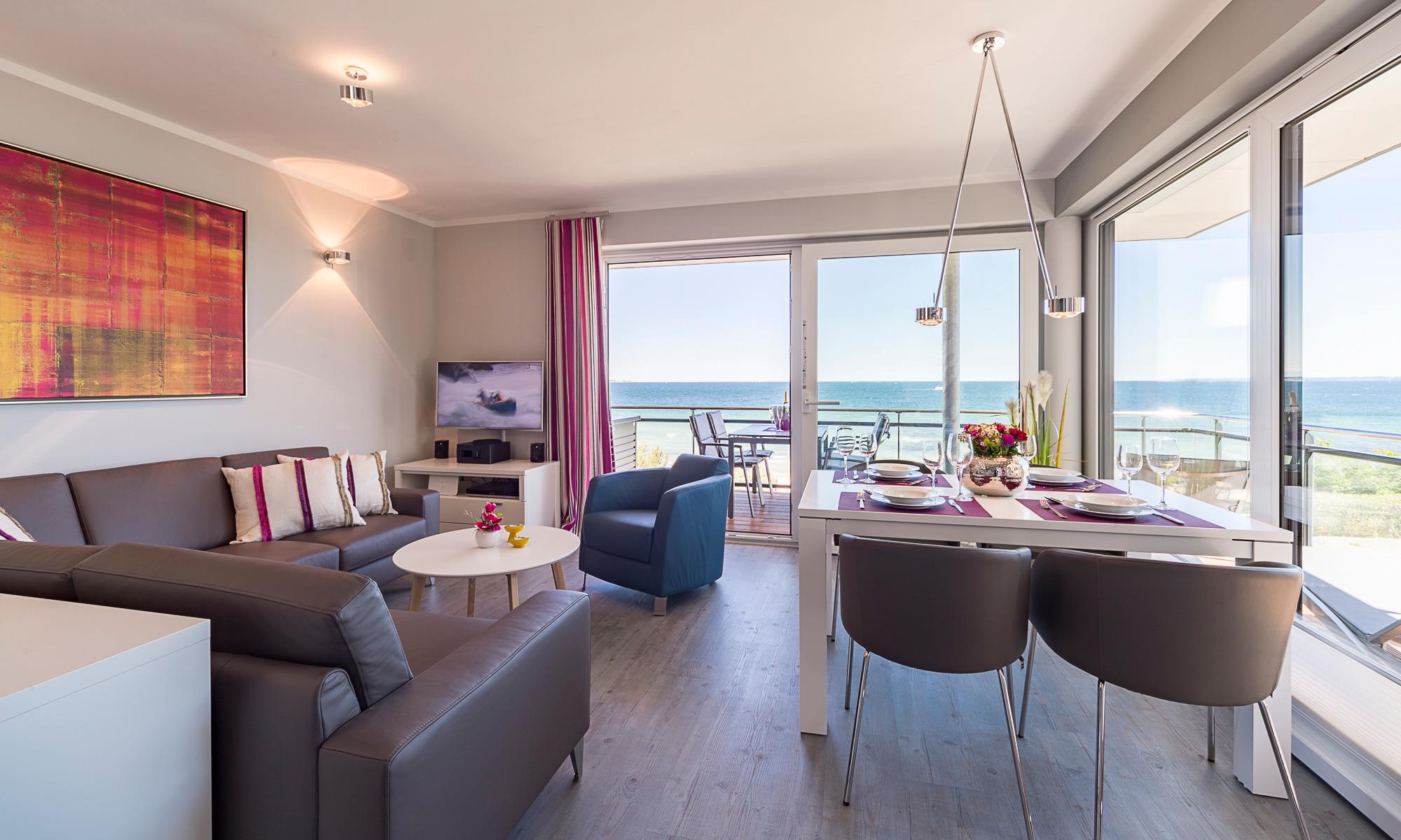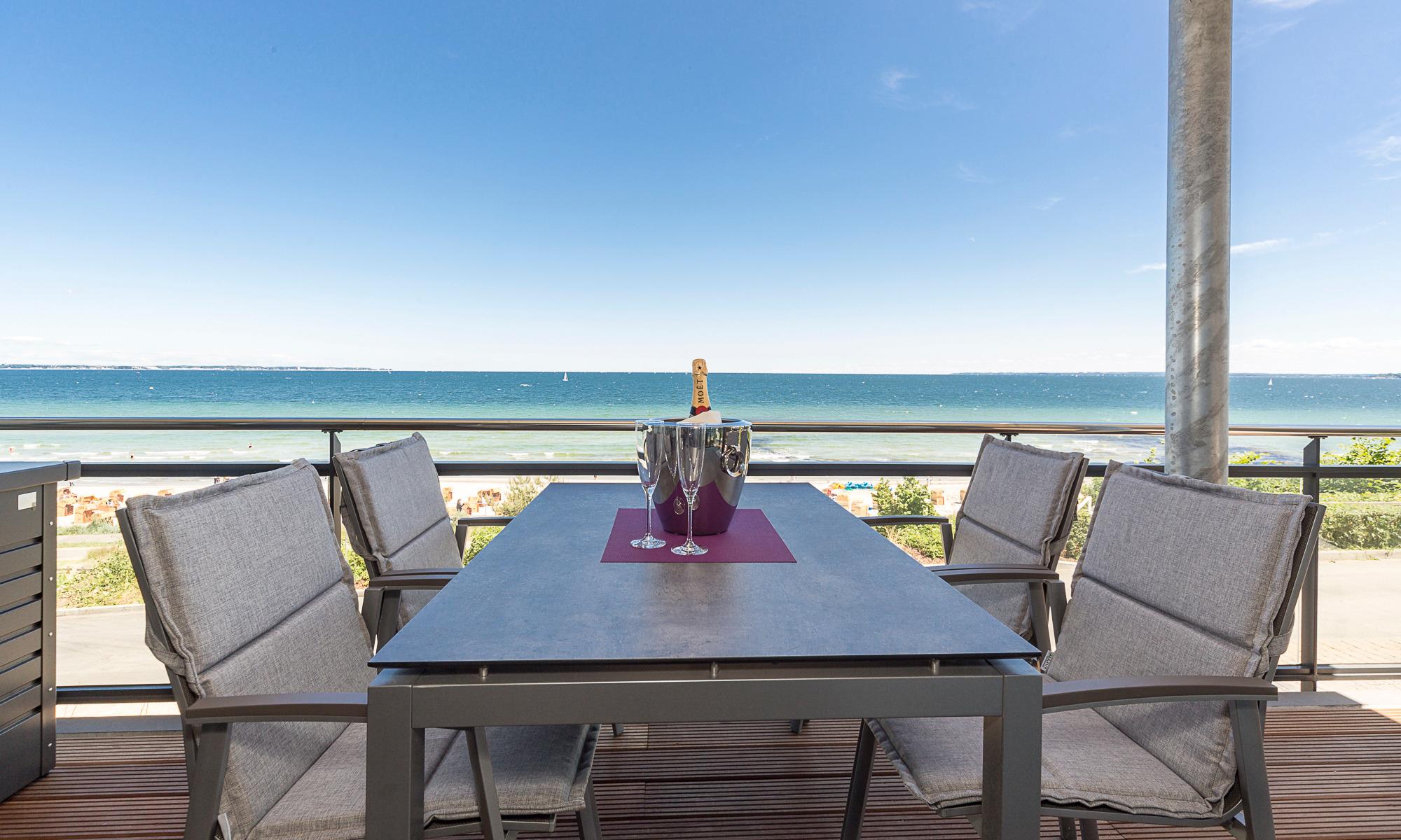 Genießen Sie eine luxuriöse Ferienwohnung mit 100% Meerblick und moderner Ausstattung in Scharbeutz, nahe der Lübecker Bucht.