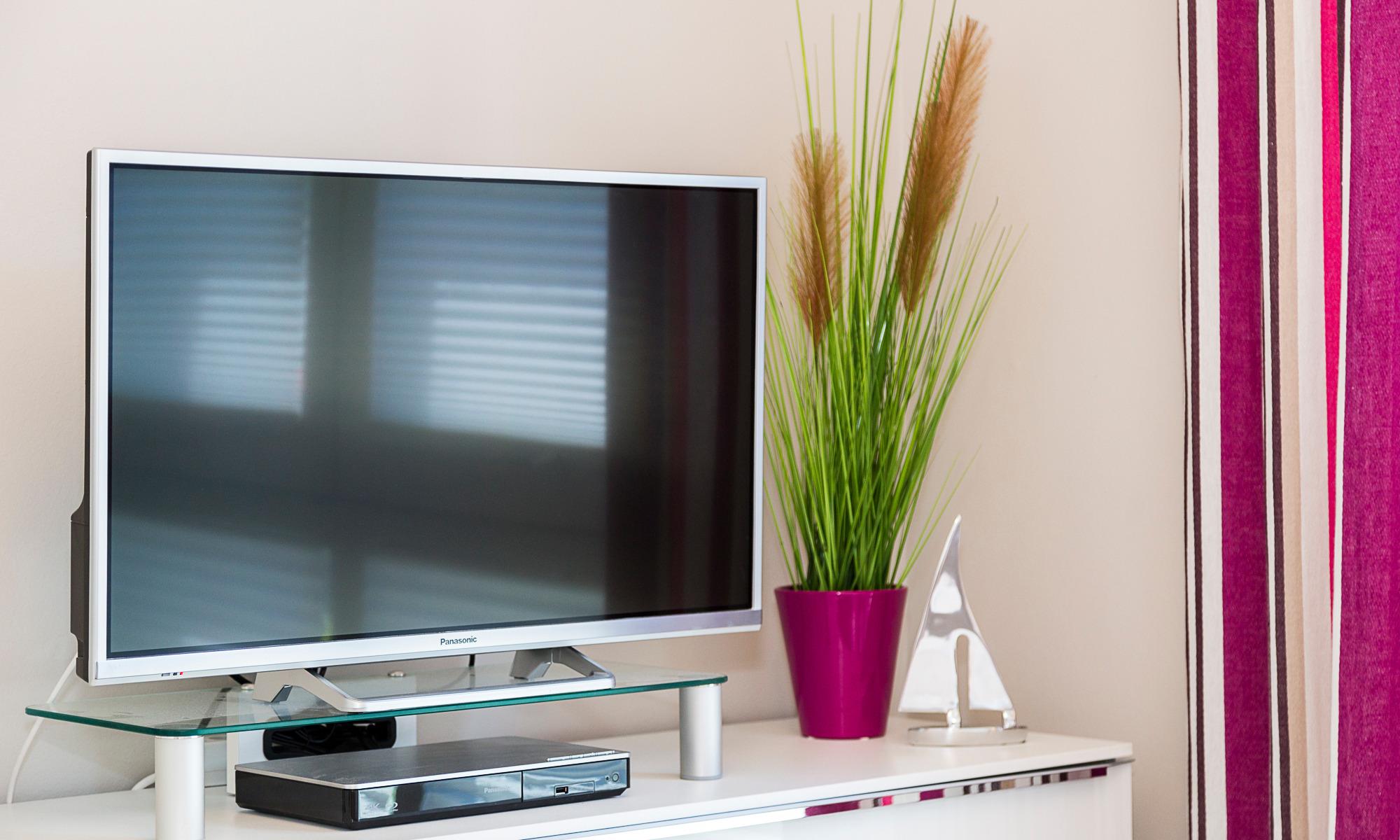 Die beiden Tageslichtbäder mit hellen, sandfarbenen Fliesen sind mit einer bodengleichen Dusche (Regenkopf- und Handbrause), jeweils einem Waschtisch mit Unterschrank von Villeroy und Boch, je zwei Handtuchhaltern, Handtuchheizkörper, Fußbodenheizung, Föhn, Kosmetikspiegel und jeweils einem Leuchtspiegel von Zierath sehr schön ausgestattet. Ein Radio von Busch Jaeger, verbunden mit eingebauten Deckenlautsprechern, sorgt für ein angenehmes Musikerlebnis. Die beiden Schlafzimmer verfügen über gemütliche Boxspringbetten (180 x 200m) der Marke Vito, einen Kleiderschrank mit Schiebetüren von Hülsta (Innenschubkästen, Einlegeböden, Kleiderstange), zwei Nachtkonsolen von Hülsta und einen Flachbildschirm von Panasonic. Ein Sicht- bzw. Lichtschutz ist ebenso vorhanden wie elektrische Rollläden. Der Balkon mit optimaler Süd-/Ostausrichtung begrüßt seine Gäste bereits zum Frühstück mit einem Platz an der Sonne. Ein großer Tisch mit vier Stühlen aus hochwertigem Aluminium lädt zu gemütlichen Stunden ein. Auf einer Rollenliege kann zusätzlich entspannt werden. In einer großen Stauraumkiste können nicht nur ihre Koffer platzsparend aufbewahrt werden, hier finden Sie auch Auflagen für Liege und Sessel. Ein großer, höhenverstellbarer Sonnenschirm rundet das Angebot auf dem Balkon ab. Wir freuen uns auf Sie!