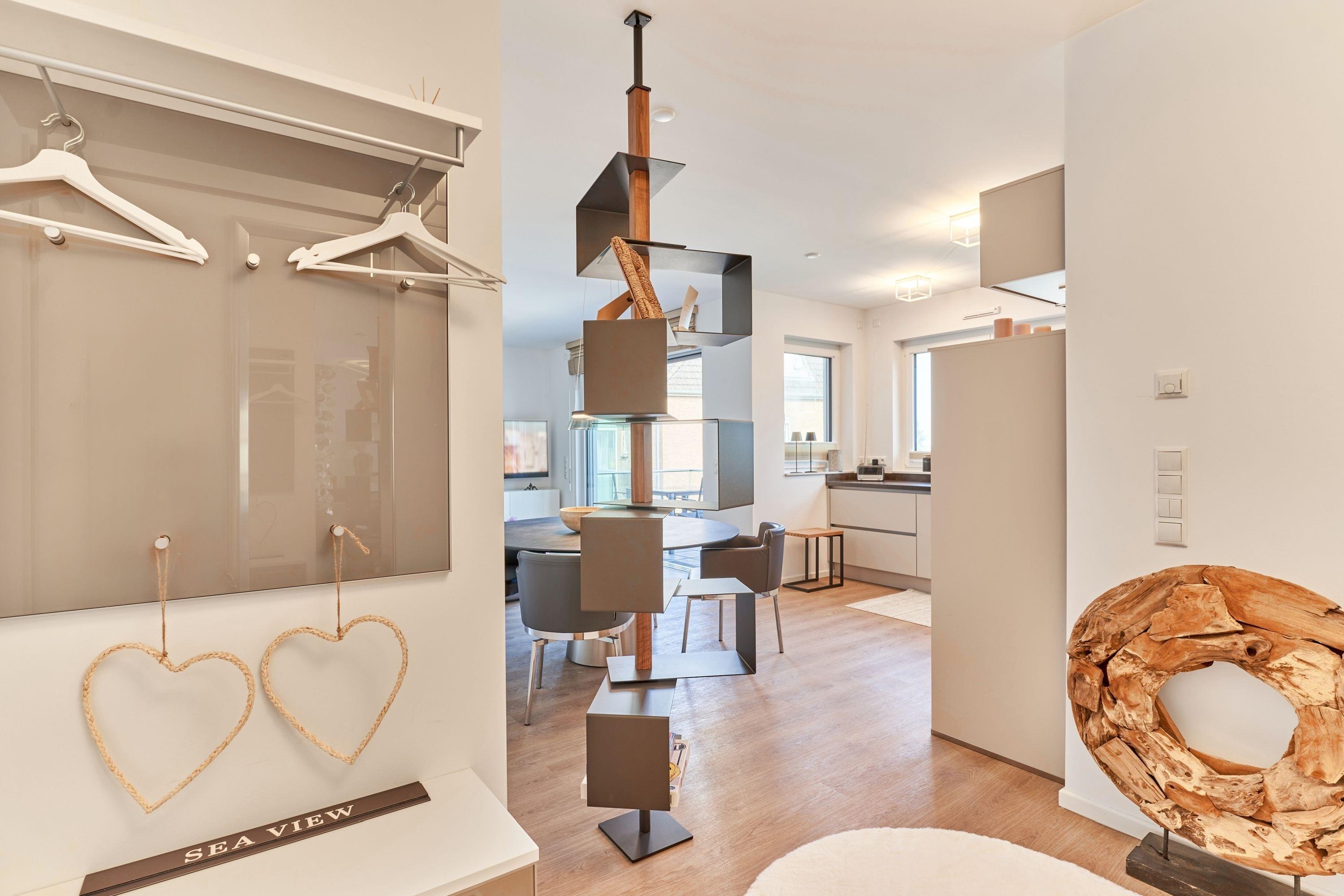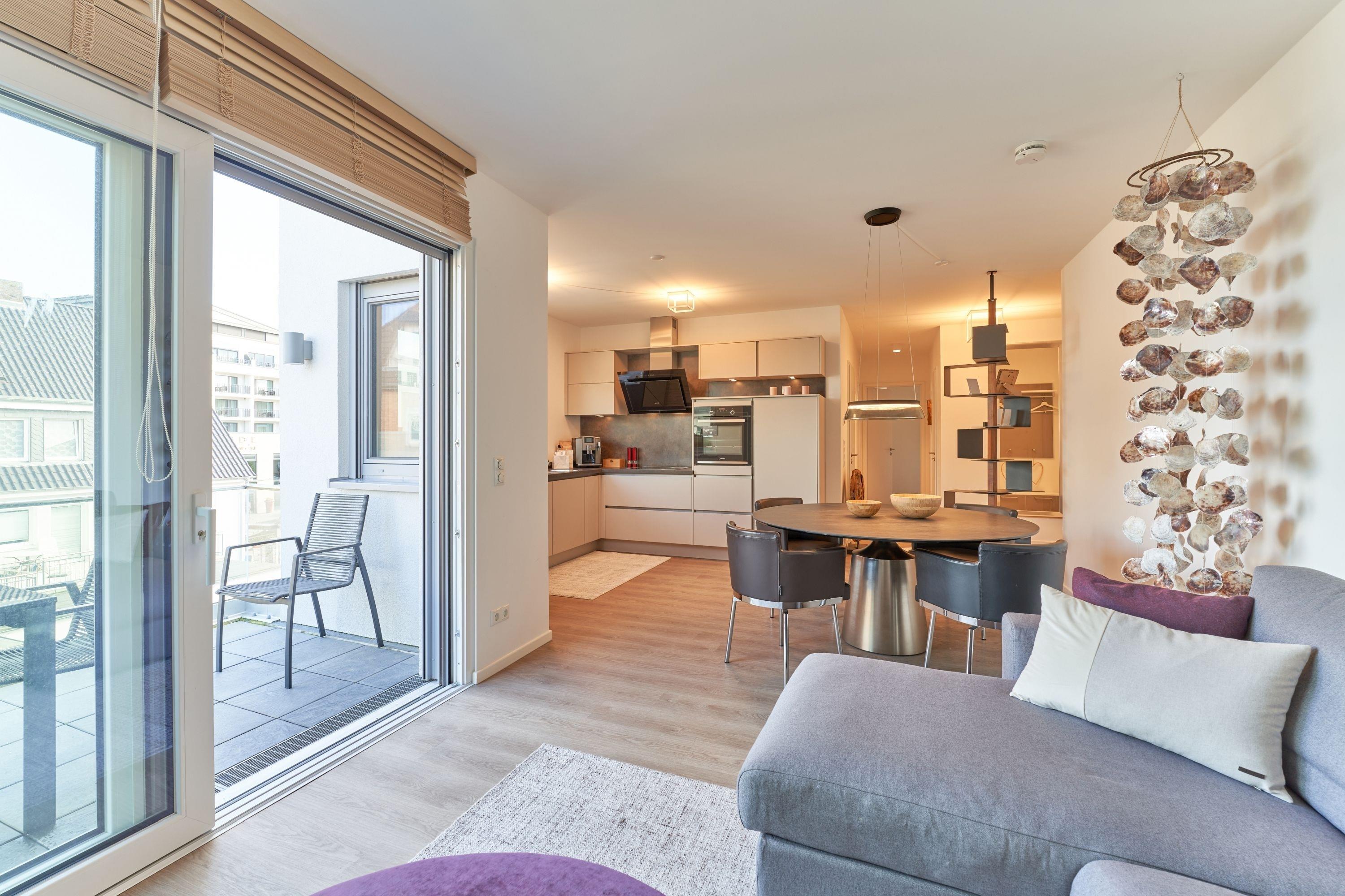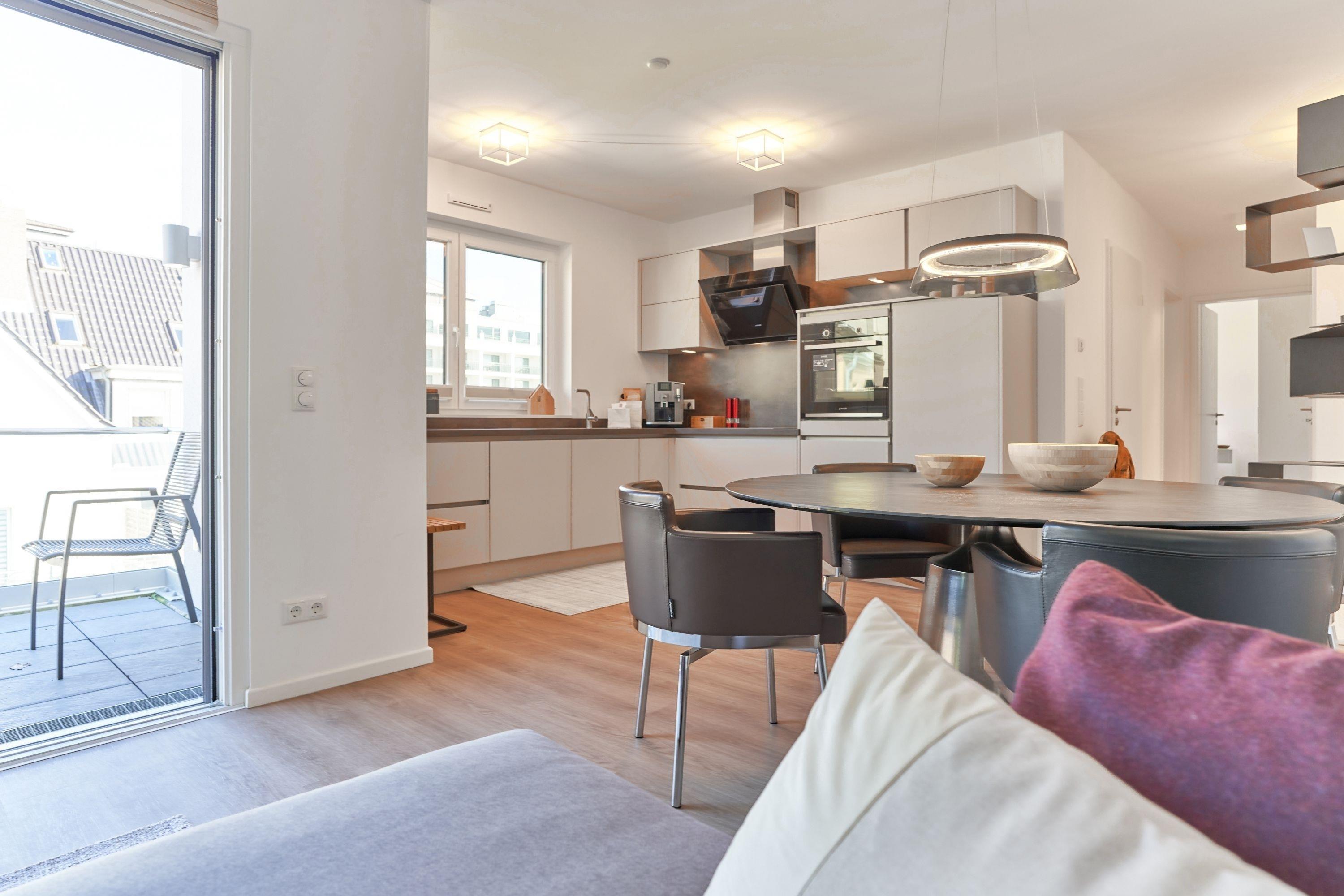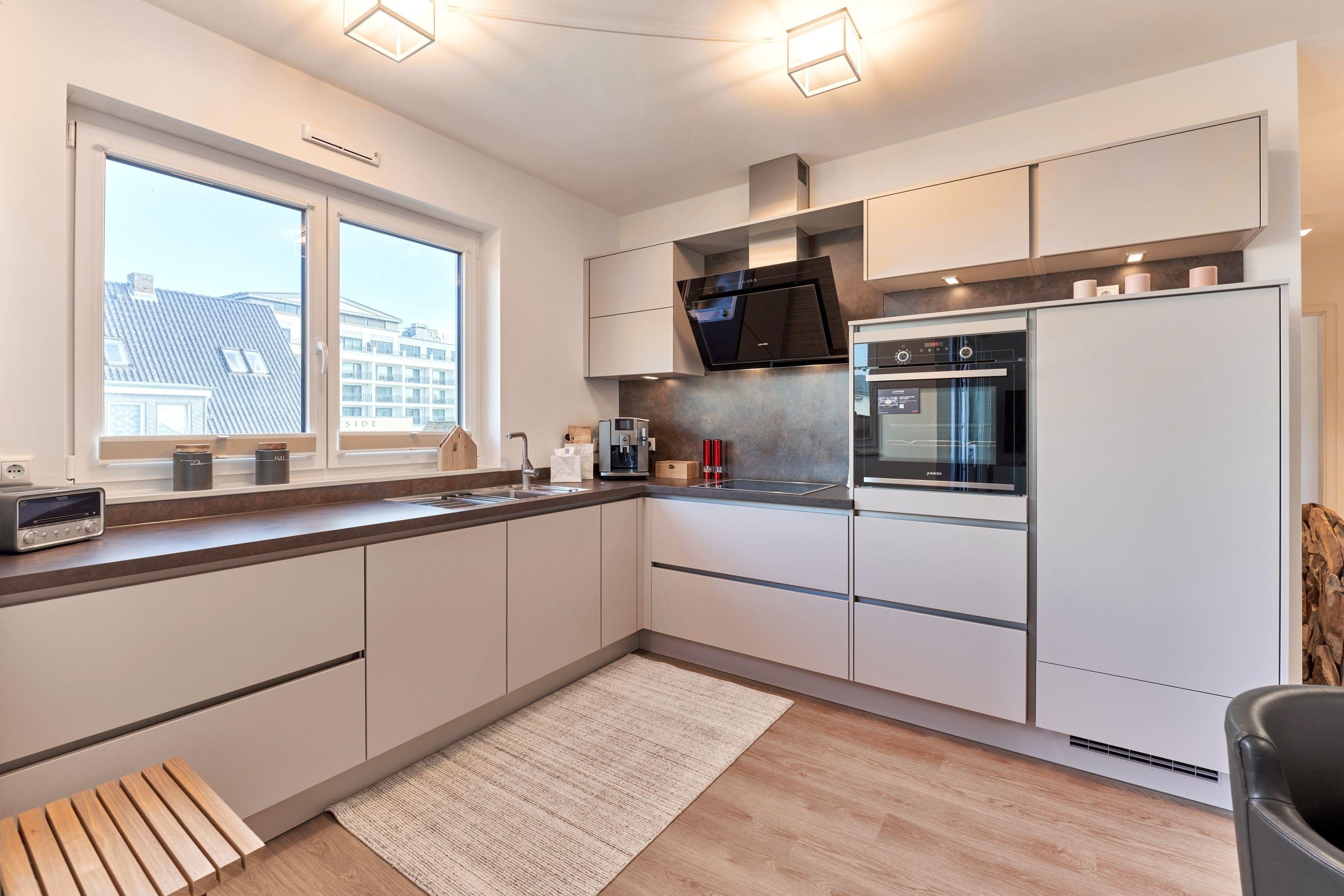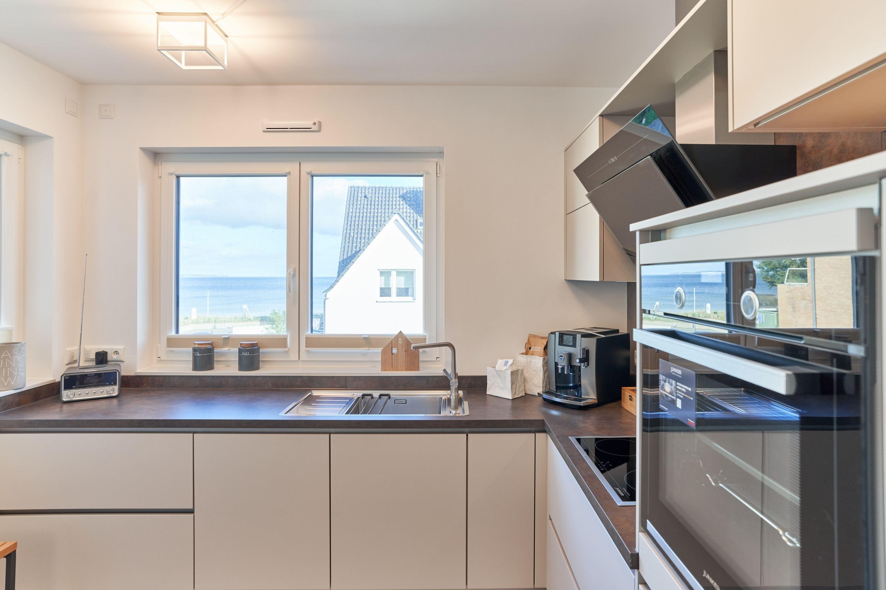 Sehr feine Wohlfühlwohnung, ca. 68m². Die Wohnung zeichnet sich durch eine moderne, hochwertige Inneneinrichtung aus. Die Küche ist in ansprechender Optik und mit hochwertigen Einbaugeräten ausgestattet. Neben einer Kaffeemaschine steht Ihnen auch ein Jura-Kaffee-Vollautomat zur Verfügung. Aus dem Küchenfenster genießen Sie einen ersten Blick auf die Ostsee.