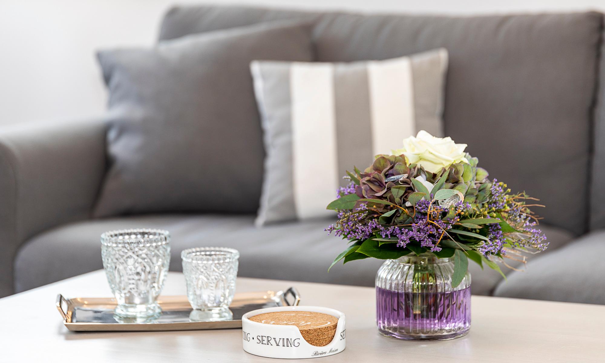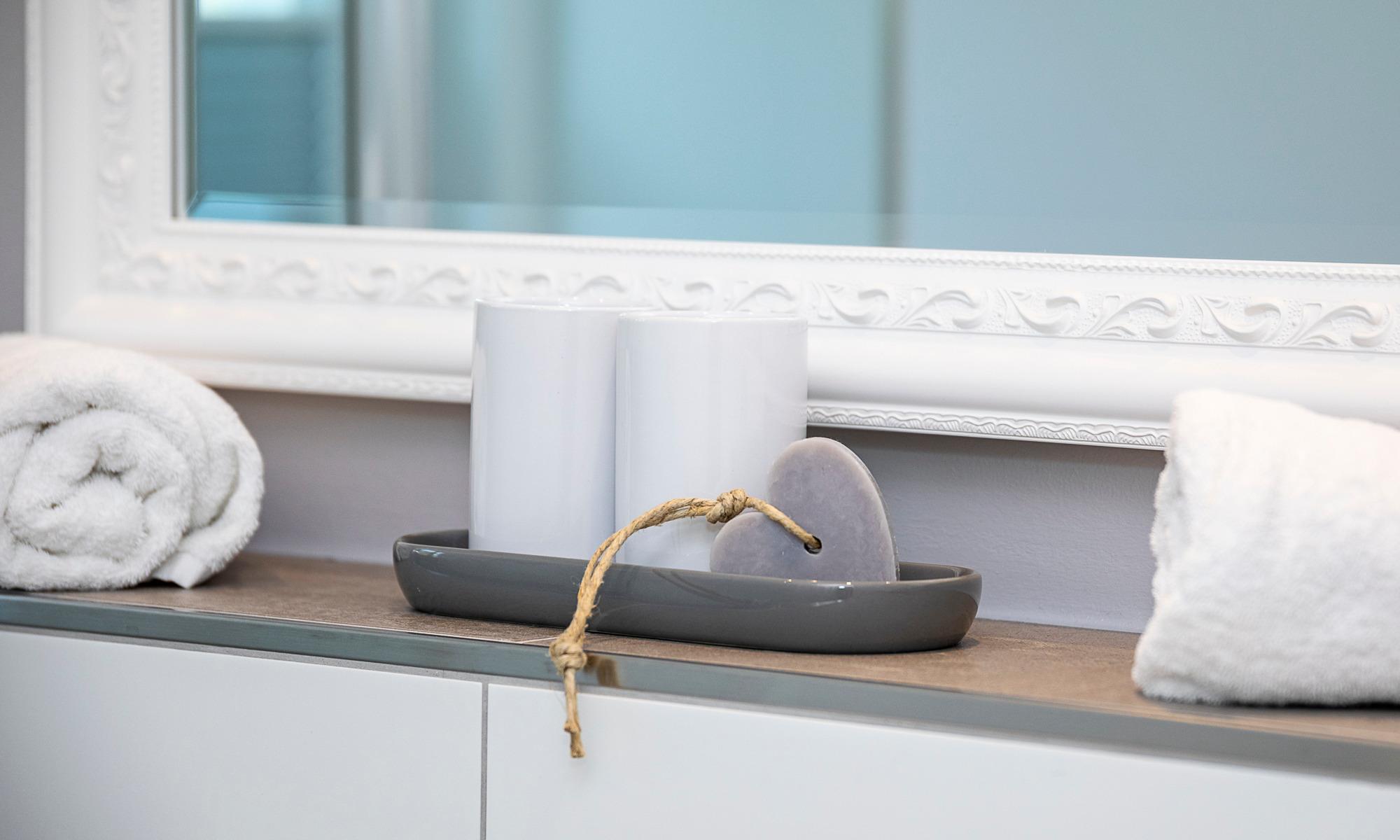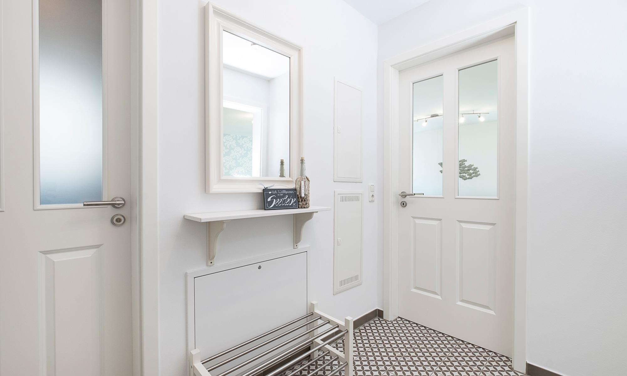 Diese geschmackvoll im Landhausstil eingerichtete Ferienwohnung bietet Ihnen einen gemütlichen Wohnbereich mit Couch und Sessel. Die Couch ist mit wenigen Handgriffen in eine bequeme Schlafcouch umwandelbar. Neben dem Flachbildfernseher und dem Blu-ray-Player steht Ihnen eine Stereoanlage zur Verfügung. Kostenloses WLAN ist selbstverständlich. Die Terrasse Richtung Süden ist mit Tisch und Stühlen ausgestattet. Die moderne Küche ist komplett ausgestattet und der Esstisch lädt zu geselligen Abenden ein. Das Schlafzimmer ist mit einem geräumigen Schrank und einem komfortablen Doppelbett (1,80x2,00m, durchgehender Topper ) und einem Flachbildfernseher ausgestattet. Zur Verdunkelung sind Plissees angebracht. Das helle Tageslichtbad verfügt über eine bodentiefe Dusche und einen großen Spiegel. Neben der Fußbodenheizung ist hier ein zusätzlicher Handtuchheizkörper angebracht.