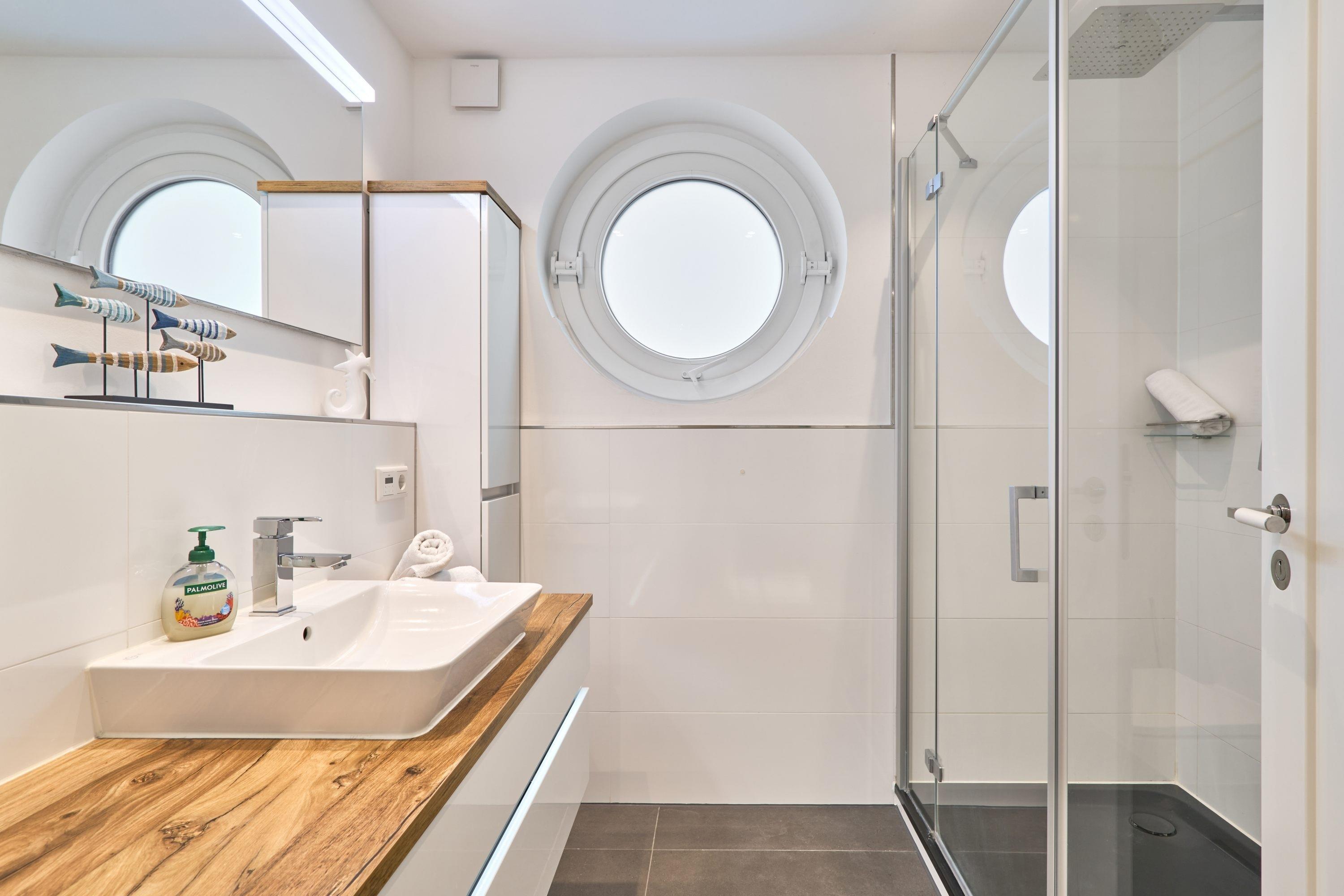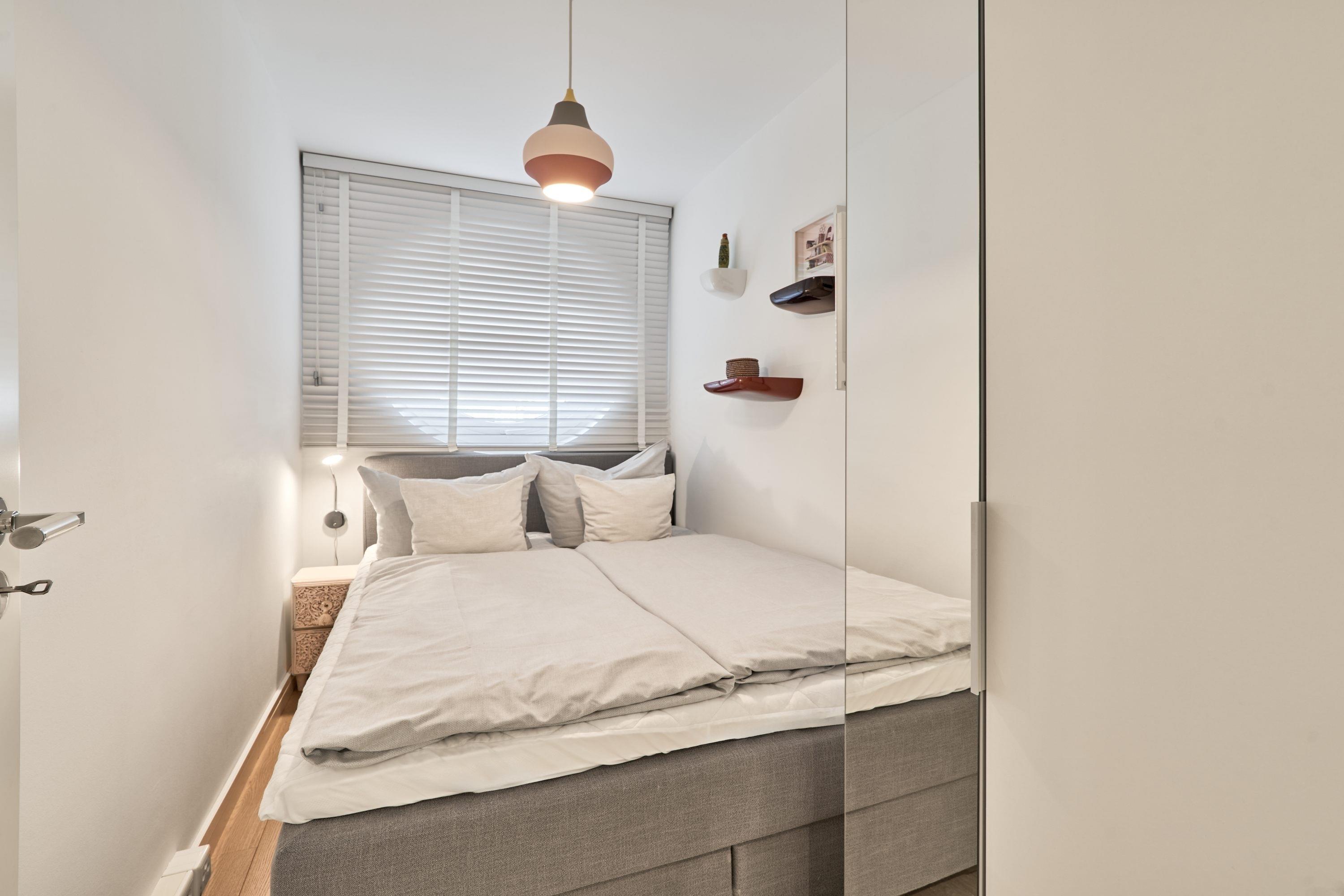 Freundliches, helles Schlafzimmer, ausgestattet mit einem Boxspringbett (1,80 x 2,00m), zwei Nachttischen und einem Kleiderschrank. Außenrollläden lassen Sie im Dunkeln schlafen. Das zweite Schlafzimmer ist mit einem Boxspringbett (1,40 x2,00m), einem Kleiderschrank sowie mit einem TV ausgestattet. Sehr schönes, helles Tageslicht – Duschbad mit bodengleicher Dusche, Hand- und Regendusche, Schrank, Handtuchheizkörper, Fön, Kosmetikspiegel. Im Flur steht Ihnen ein Einbauschrank zur Verfügung. Der Flurbereich ist mit einem elektrischen Bewegungsmelder ausgestattet. Tiefgaragenstellplatz, Fahrstuhl, Fahrradkeller. Die Waschmaschine und der Trockner stehen Ihnen in dem Gemeinschaftskeller zur Verfügung und sind per Münzzähler zu bedienen.