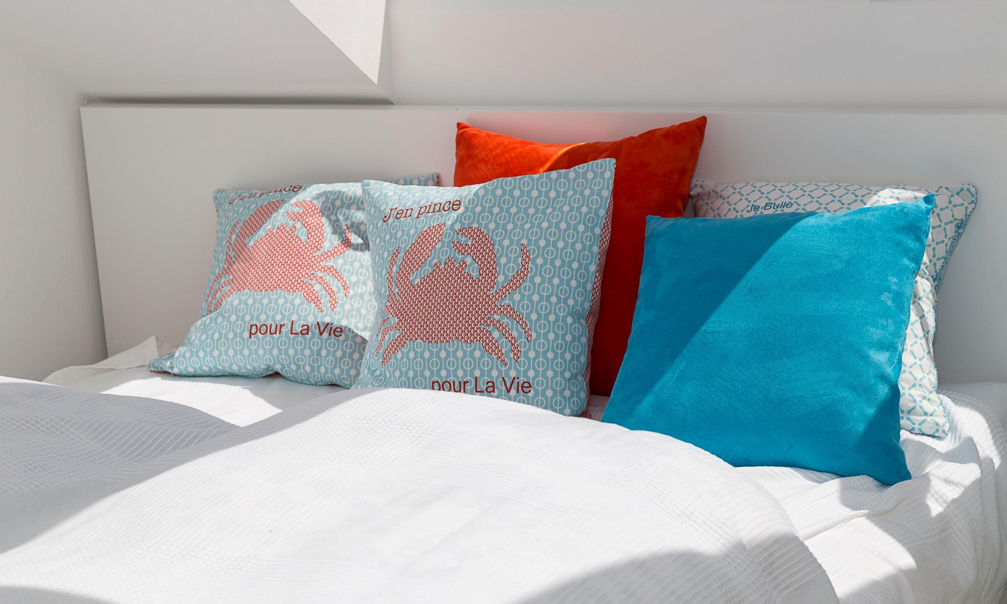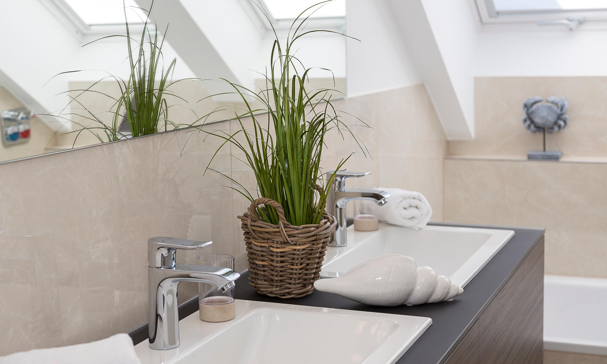 Der Wohnbereich ist mit einem großen Ecksofa und einem Tisch eingerichtet. Neben einem Flach-TV steht Ihnen selbstverständlich kostenloses WLAN zur Verfügung. Das Bad verfügt über Tageslicht, eine bodentiefe Dusche, eine Badewanne und Fußbodenheizung. Die Schlafzimmer sind mit Boxspringbetten (1,80 x 2,00m), Kleiderschrank sowie mit je einem TV ausgestattet.