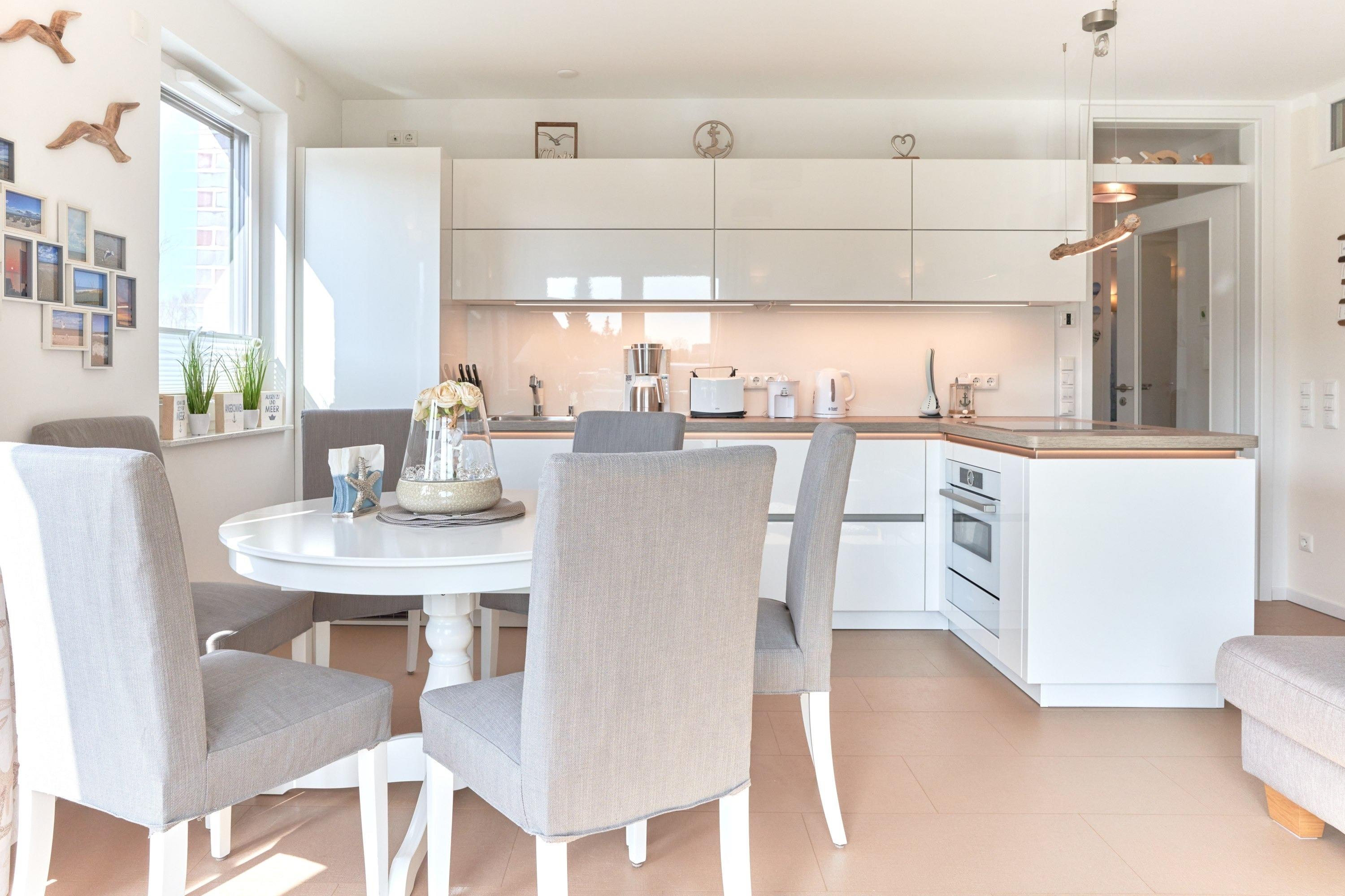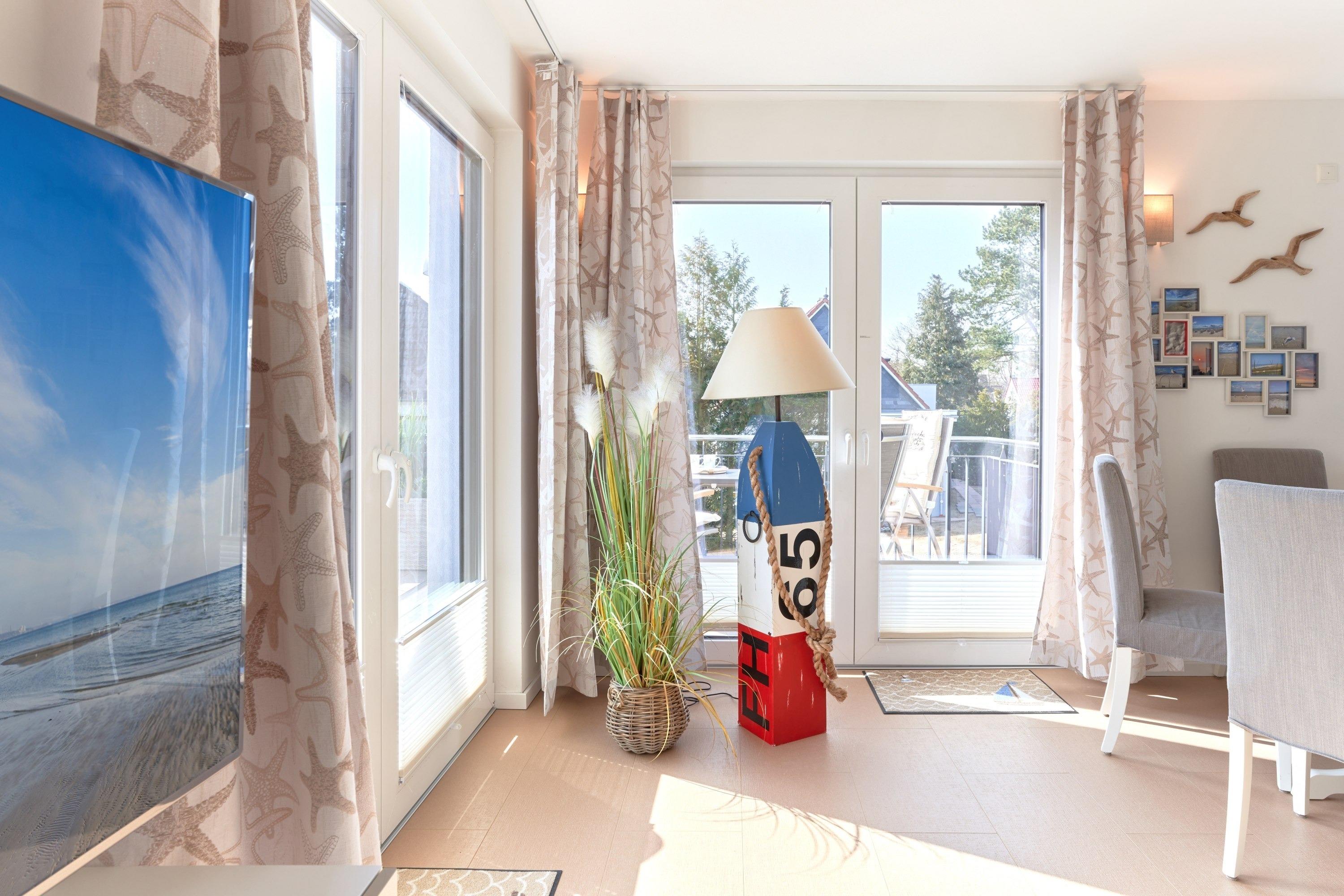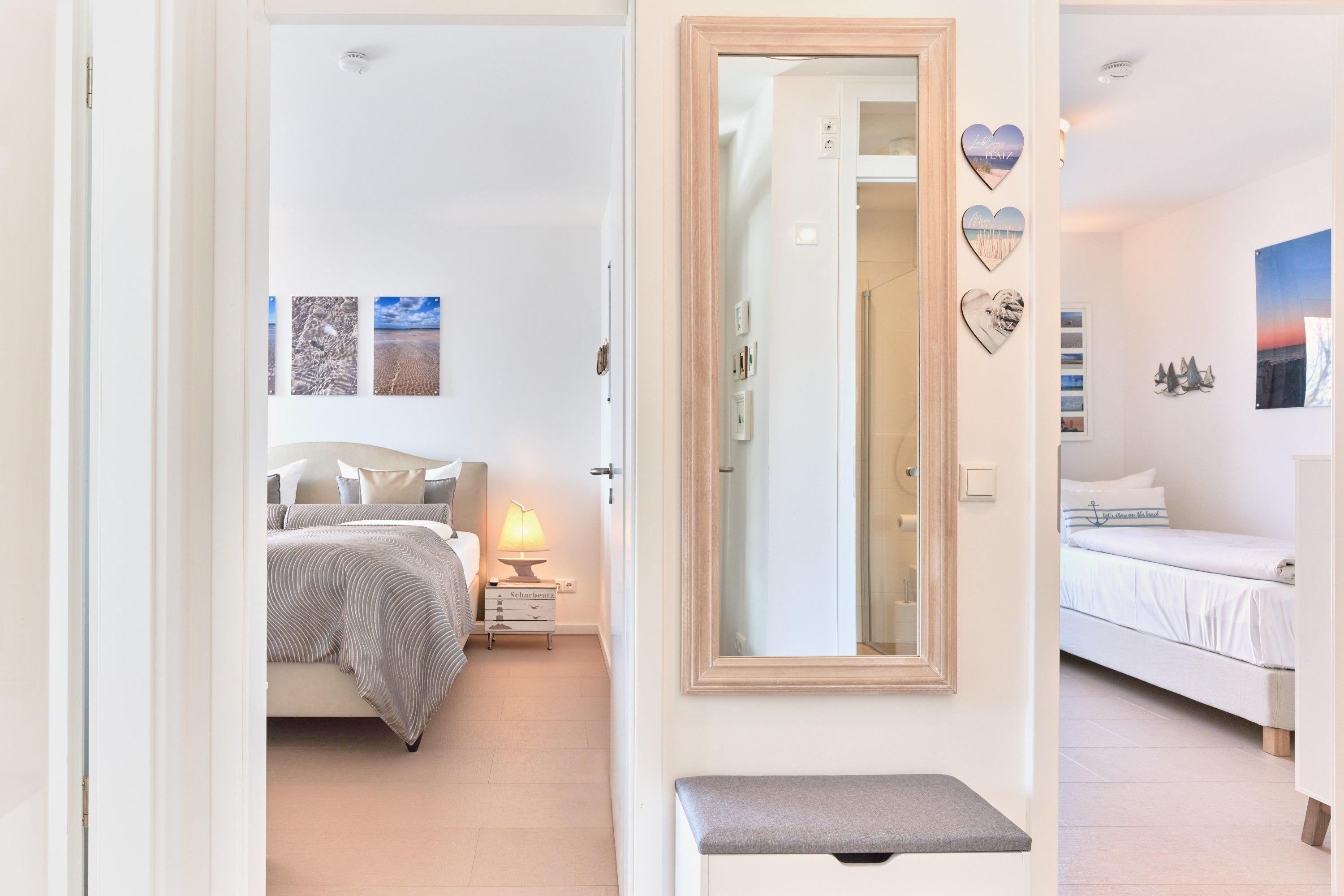 Genießen Sie Ihren Urlaub in dieser lichtdurchfluteten Ferienwohnung. Es warten auf Sie drei Schlafzimmer; 1. Schlafzimmer mit einem Doppelboxspringbett, 2. Schlafzimmer mit zwei Einzelboxspringbetten sowie ein 3. Schlafzimmer mit einem Einzelboxspringbett. Alle Zimmer lassen sich durch Außenrollläden verdunkeln, auch sind die Schlafzimmer je mit einem TV ausgestattet. Im Wohn-Essbereich erwartet Sie eine großzügige, helle sowie sehr gut ausgestatte[nbsp] Küche. Angrenzend ist der Essbereich, hier lässt es sich sehr gut sitzen, auch für lange Spielabende. Der Wohnbereich ist mit einem bequemen Sofa eingerichtet. TV und Musikanlage sind selbstverständlich ebenso wie das kostenlose WLAN. Auf dem Balkon stehen Ihnen zwei Liegen sowie ein Tisch mit vier Stühlen zur Verfügung. In heller Optik gehaltenes Duschbad mit bodengleicher Dusche, Handtuchheizkörper, Fön, Kosmetikspiegel.