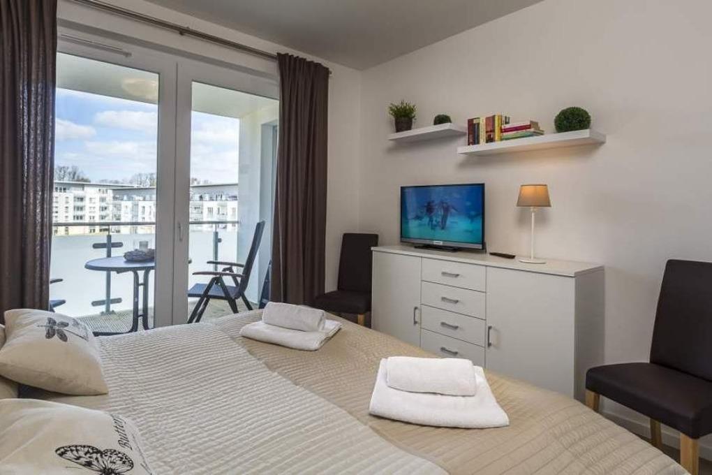 2-Zimmer-Ferienwohnung, ca. 50 m², mit Balkon, Duschbad, PKW-Stellplatz und Fahrstuhl, für bis zu 3 Personen.