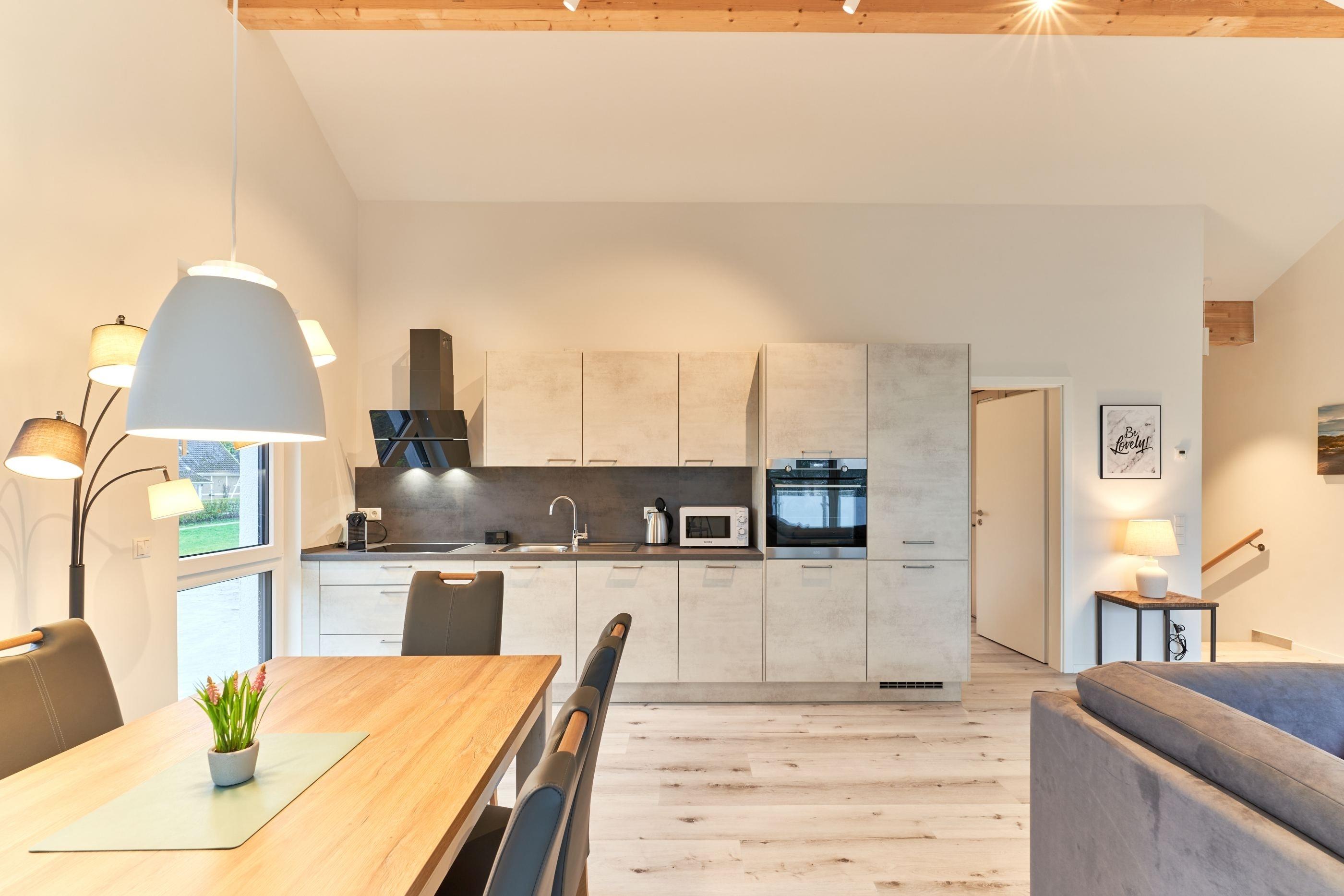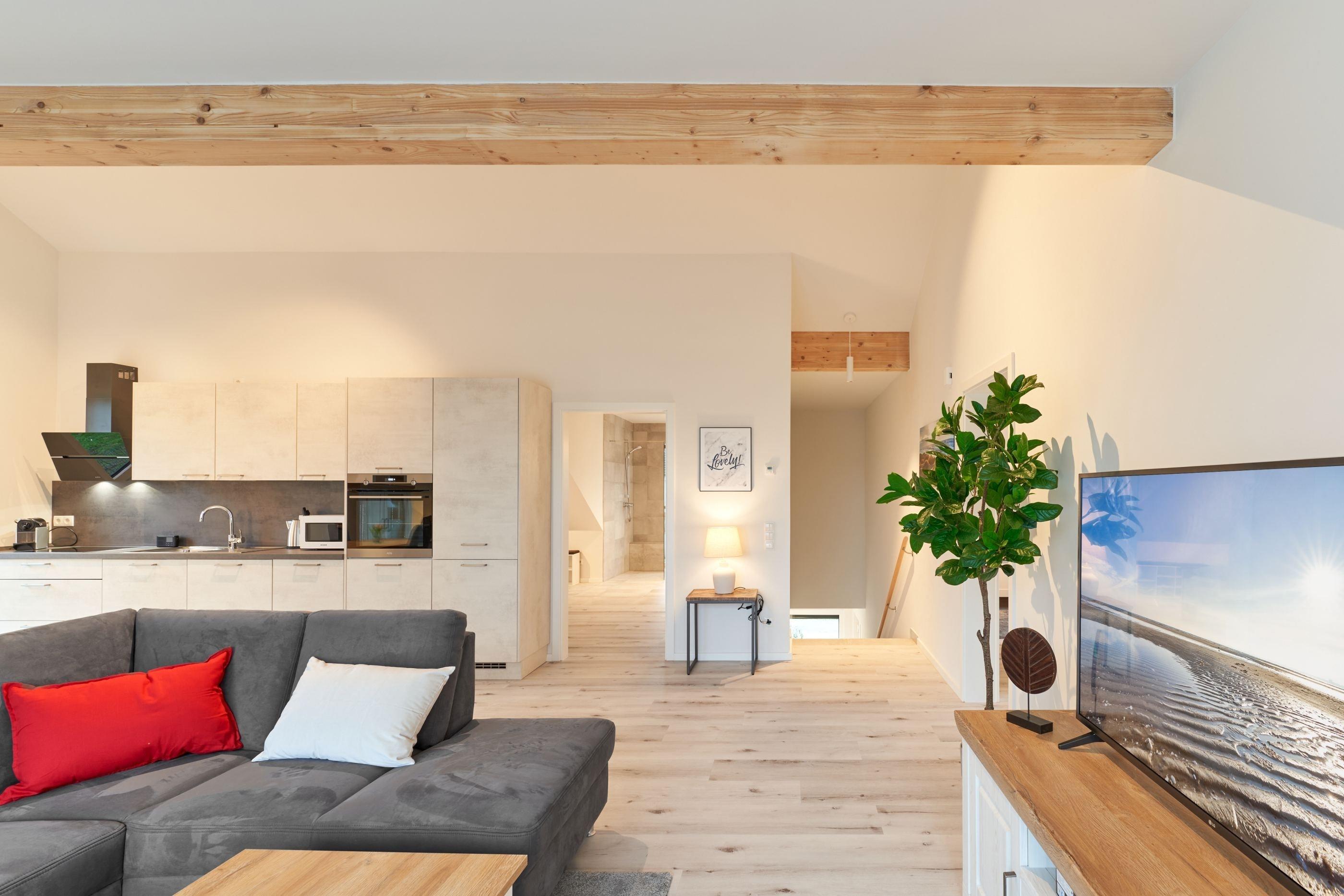 Genießen Sie Ihren Urlaub in dieser lichtdurchfluteten Ferienwohnung, die Ihnen mit ihren zwei geräumigen Schlafzimmern, 2 Duschbädern und dem großen Wohnzimmer mit integrierter Küchenzeile ihre wohlverdiente Entspannung bietet.