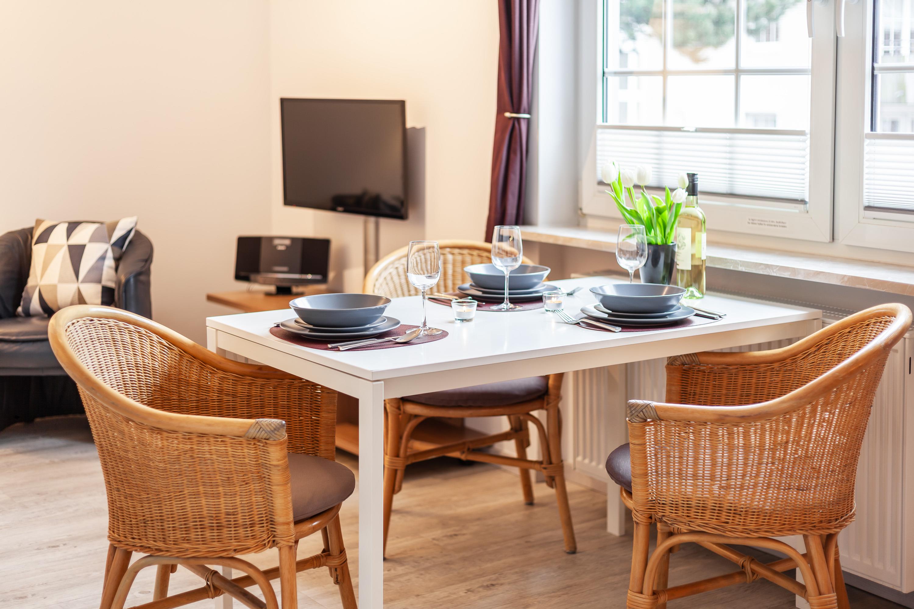 Bäckereien sind in nur wenigen Gehminuten zu erreichen, weitere Einkaufsmöglichkeiten wie ein Supermarkt befinden sich in einer Entfernung von ca. 650 m. Geschäfte, Restaurants und der Strand sind nur ca. 250 m entfernt. Der Kurpark beginnt schon nach ca. 50 m.