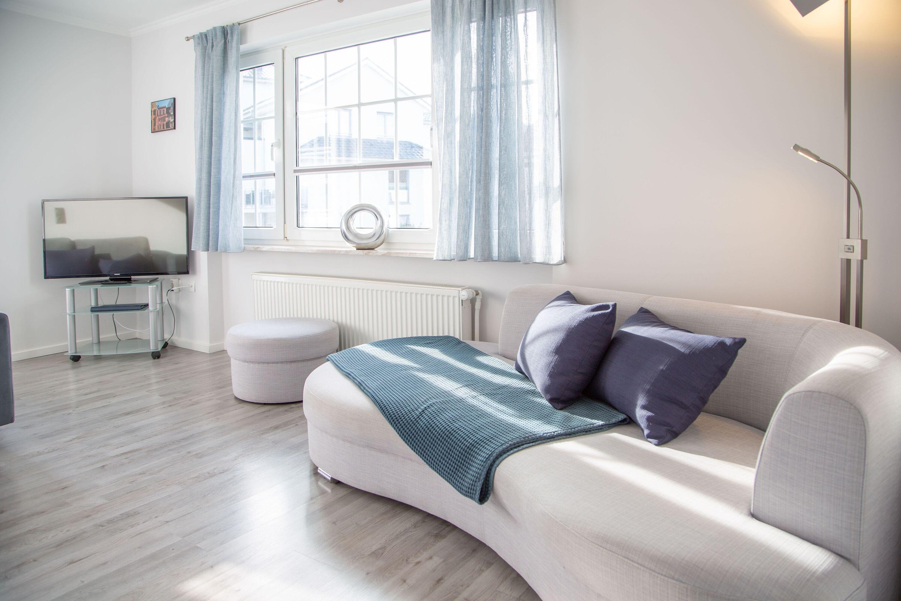 Die helle Ferienwohnung "Appartement 05 mit Balkon" im Haus Gästehaus Daheim bietet auf 54 m² Platz für bis zu 4 Personen (zzgl. max. 1 Babybett). Sie befindet sich in der ersten Etage und verfügt über 2 Schlafzimmer, 2 Badezimmer, 1 Wohnzimmer, 1 Küche und einen großen Balkon. Für die Raucher unter unseren Gästen befindet sich auf dem Balkon ein Aschenbecher. Ein Parkplatz steht direkt am Haus kostenfrei zur Verfügung.