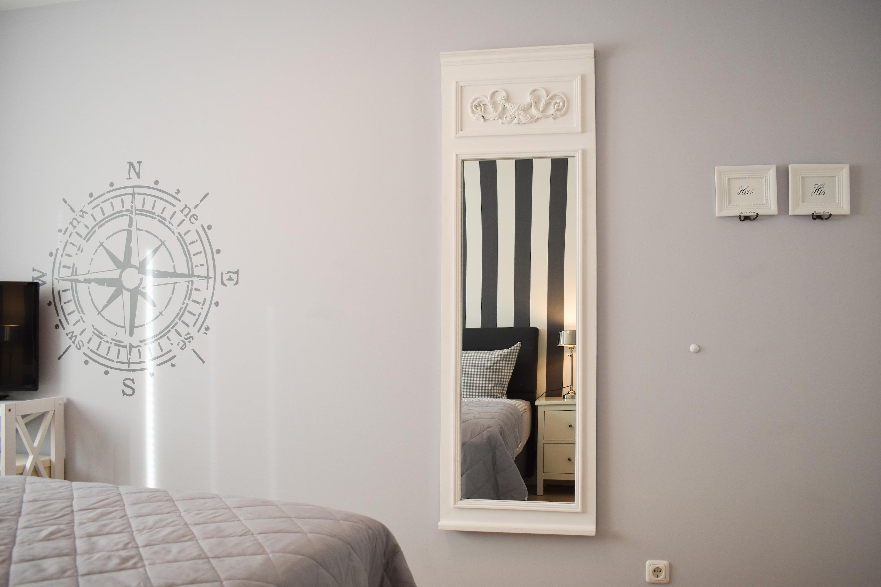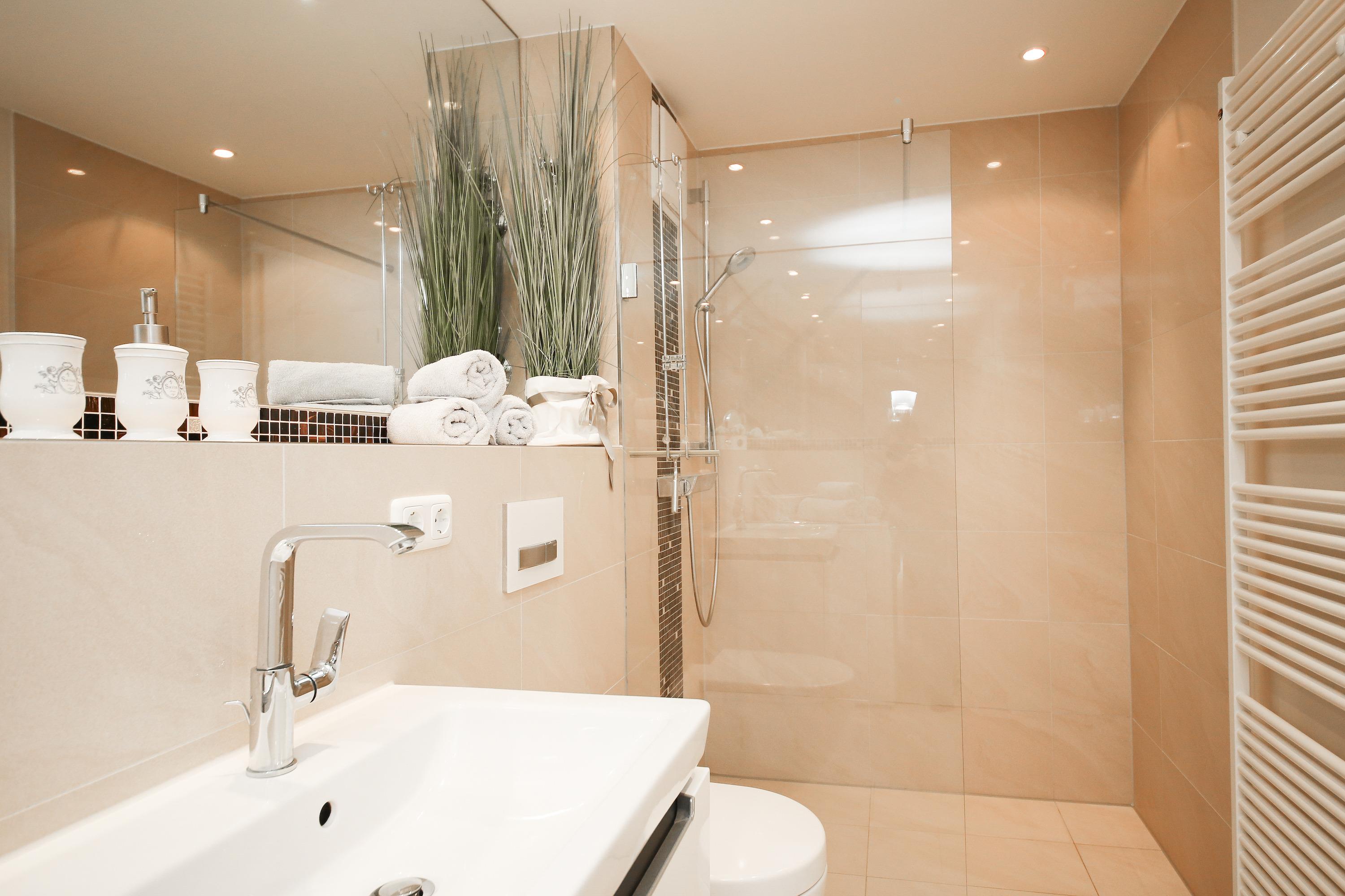 Es gibt 1 Schlafzimmer, ausgestattet mit einem Boxspringbett (180x200), Flat TV sowie elektrischen Außenjalousien zum Verdunkeln. Für eine 3. Person kann im Wohnbereich ein Zustellbett (max. 80 kg) zur Verfügung gestellt werden. Das innenliegende hochwertige Bad verfügt über eine große, ebenerdige Dusche, WC, Waschtrockner und Fußbodenheizung und ein Radio. WLAN steht selbstverständlich kostenlos zur Verfügung.