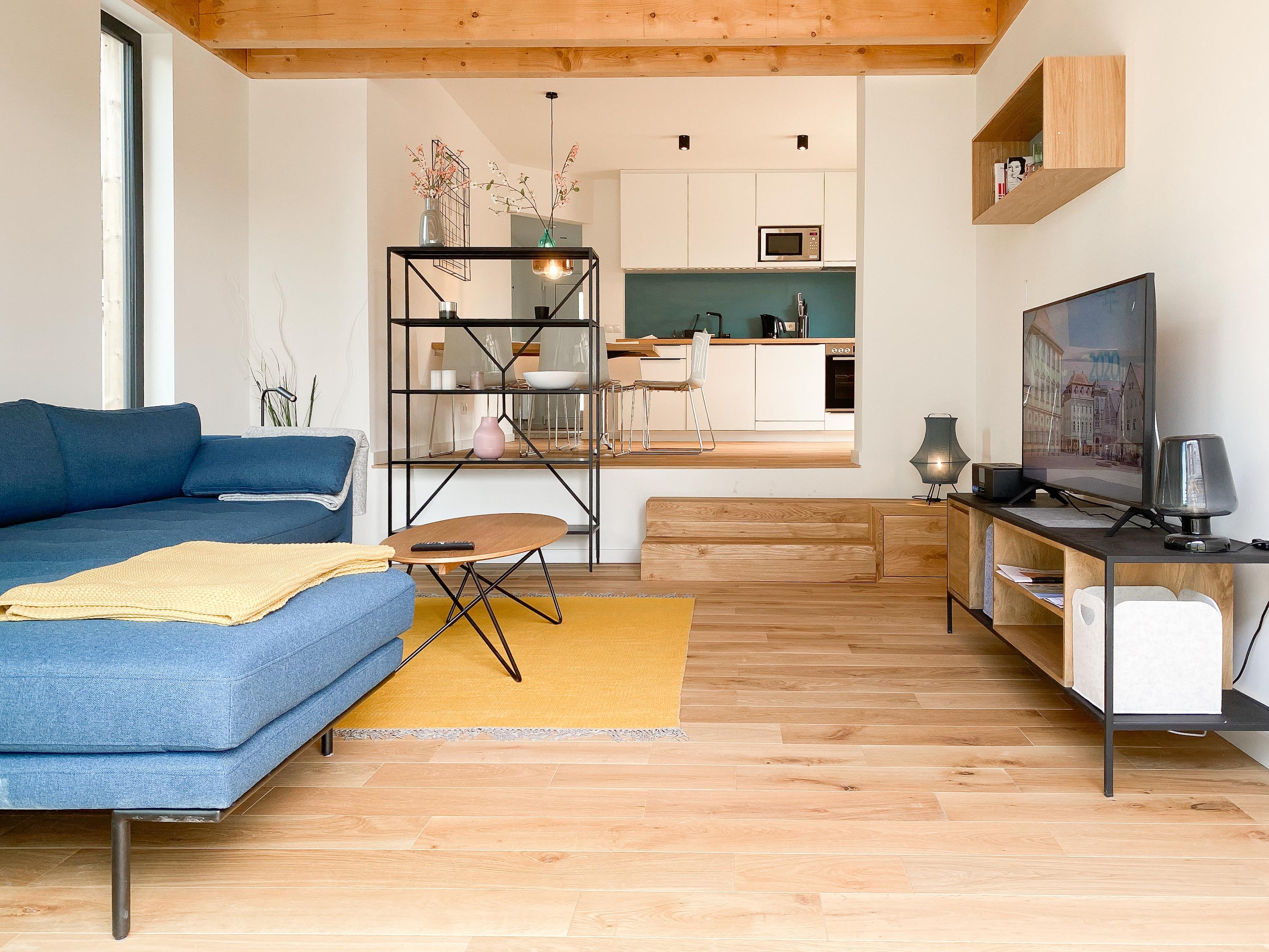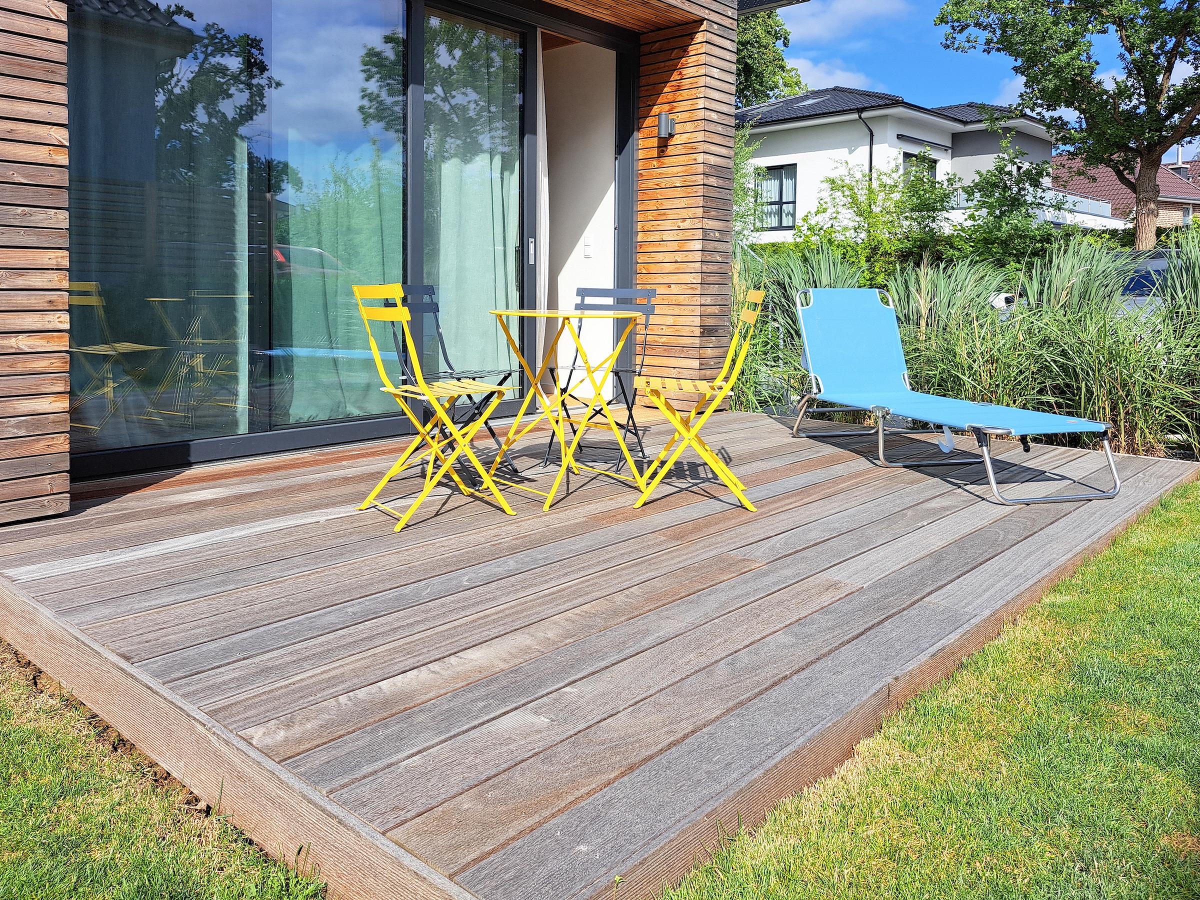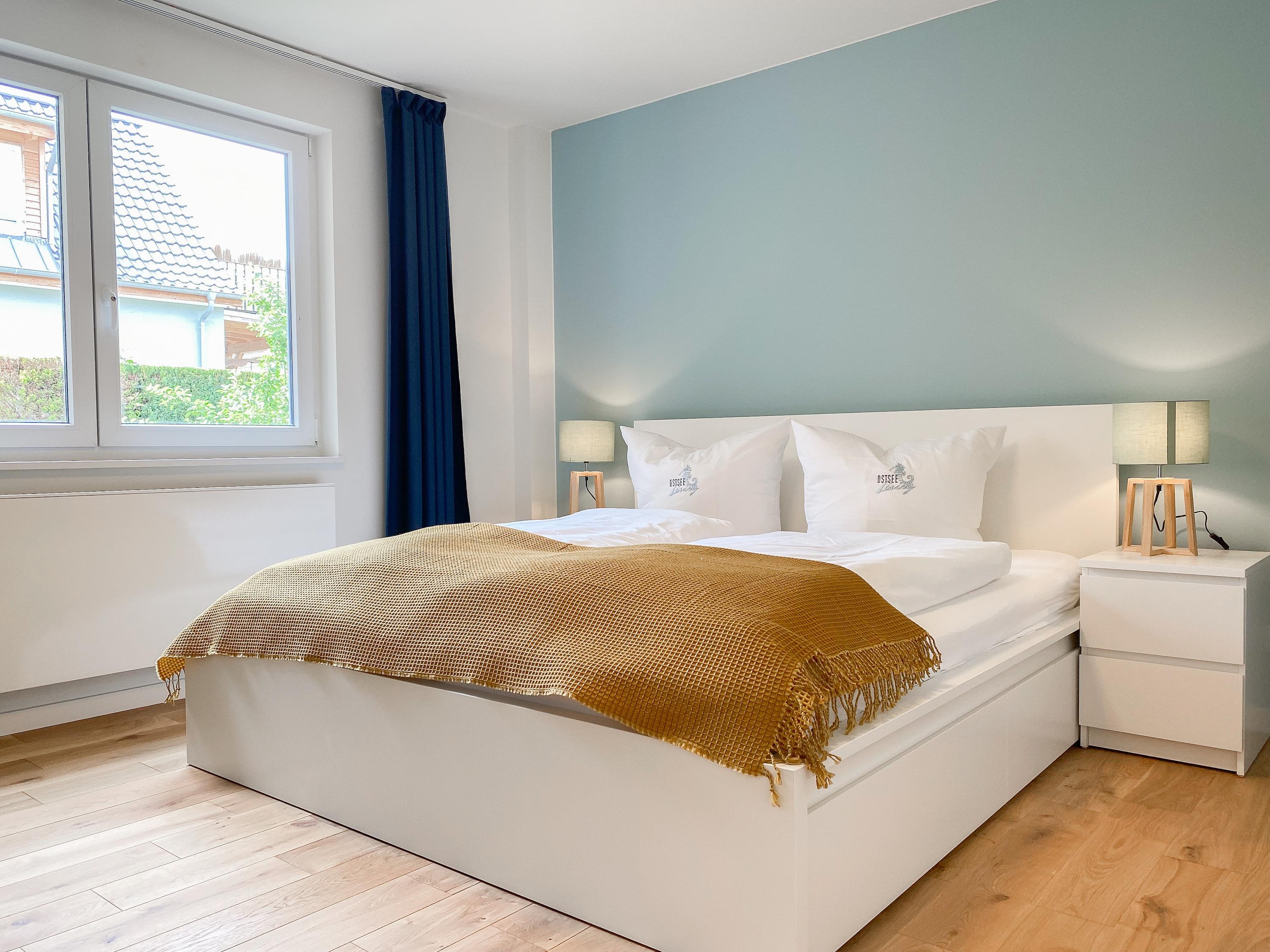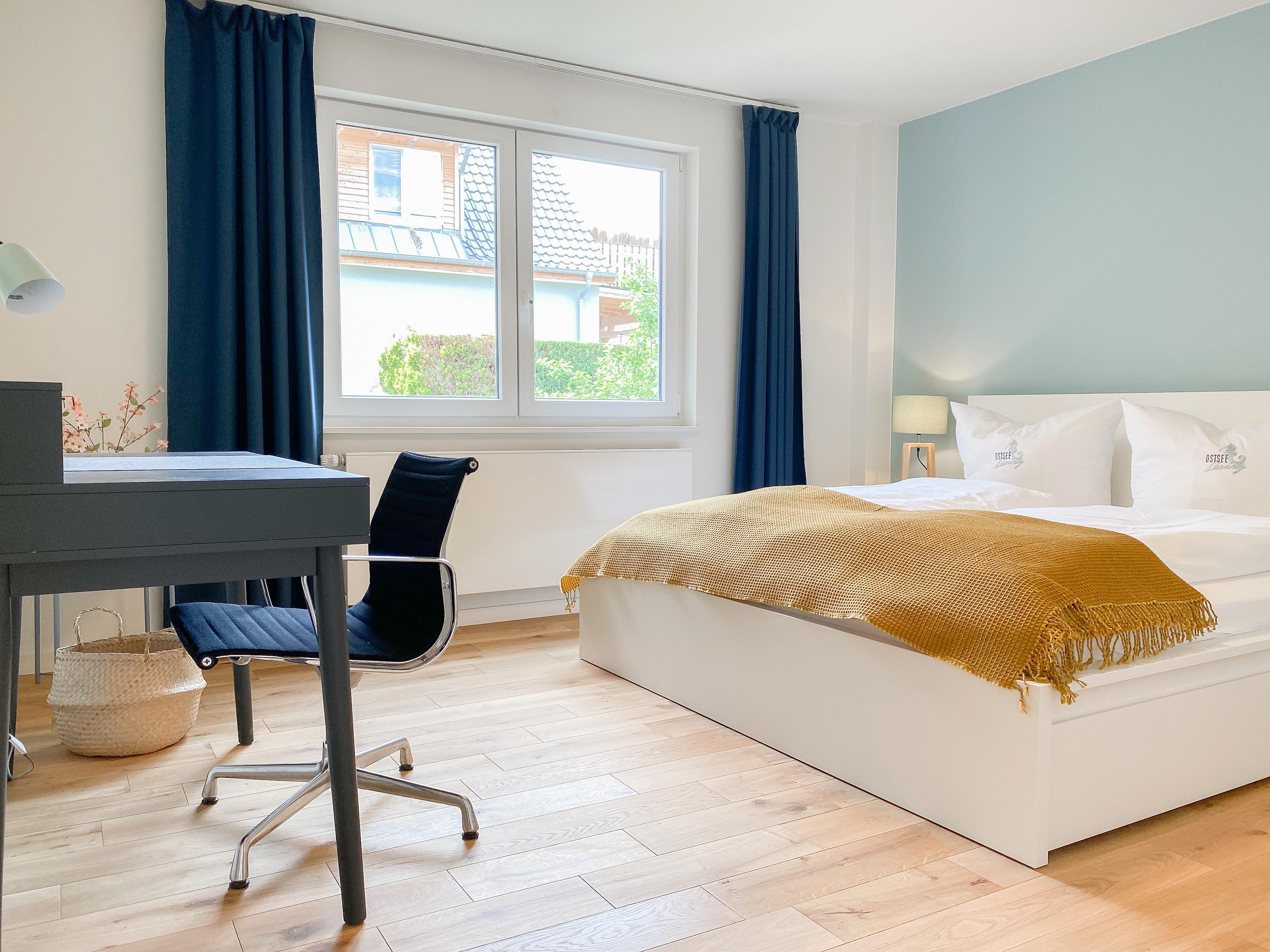 Es erwartet Sie eine wunderschöne Ferienwohnung im hyggeligen Wohnstil, der Gemütlichkeit und Wohlbefinden vermittelt. Natürliche Materialien, warme Farben und ein durchdachtes Raumkonzept schaffen eine ganz besondere Atmosphäre, um wohl verdiente Urlaubstage zu genießen. Herzstück der Wohnung bildet der großzügige Essbereich mit offener Einbauküche in bester Ausstattung zum geselligen Beisammensein und gemeinsamen Kochen. Der um zwei Stufen abgesenkte Wohnbereich ist mit einem gemütlichen Ecksofa und TV eingerichtet. Die anschließende Holzterrasse in Südwest Ausrichtung ist großzügig angelegt und von einer Rasenfläche umgeben. Es gibt 2 Schlafzimmer, ausgestattet mit einem Doppelbett (180x200) und zwei Einzelbetten (90x200) sowie Verdunkelungsvorhängen bzw. Verdunkelungsrollo. Das hochwertige Bad mit Doppelwaschtisch, WC und Walk In Dusche ist lichtdurchflutet und großzügig gestaltet. Zusätzlich gibt es ein separates Gäste WC. WLAN steht selbstverständlich kostenlos zur Verfügung.