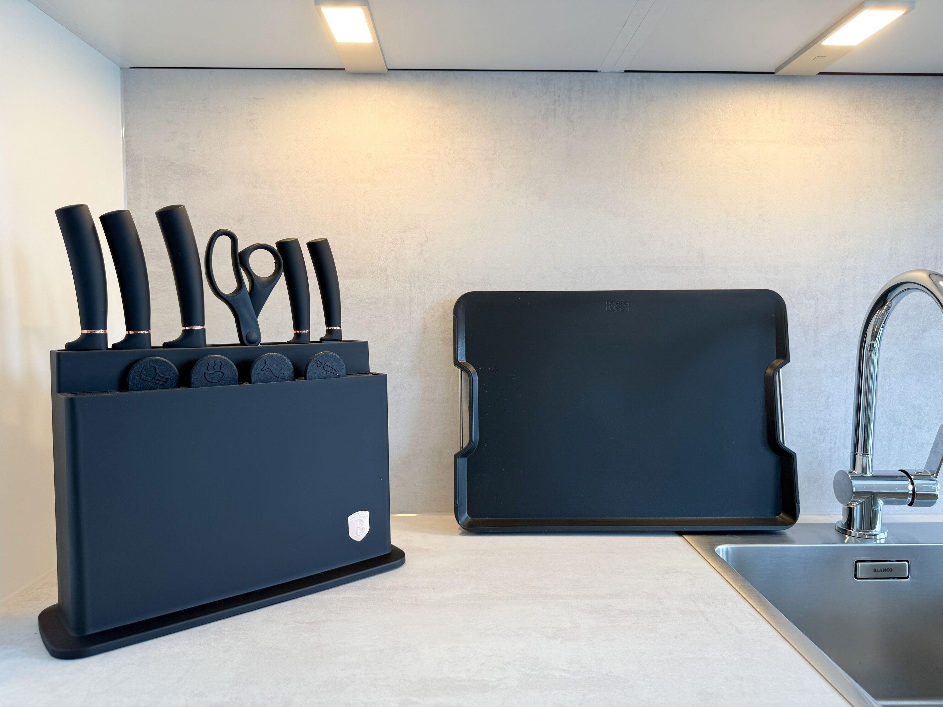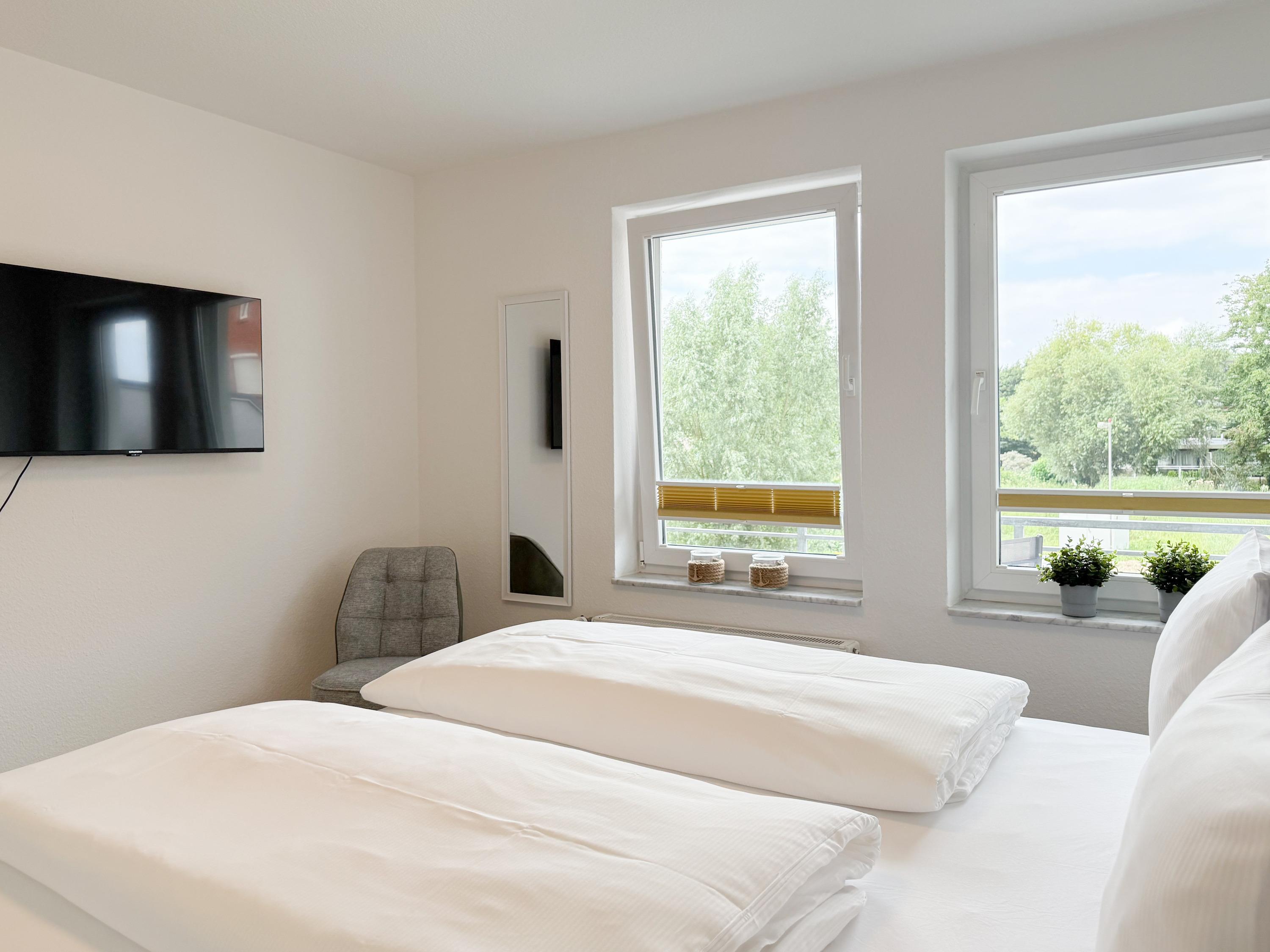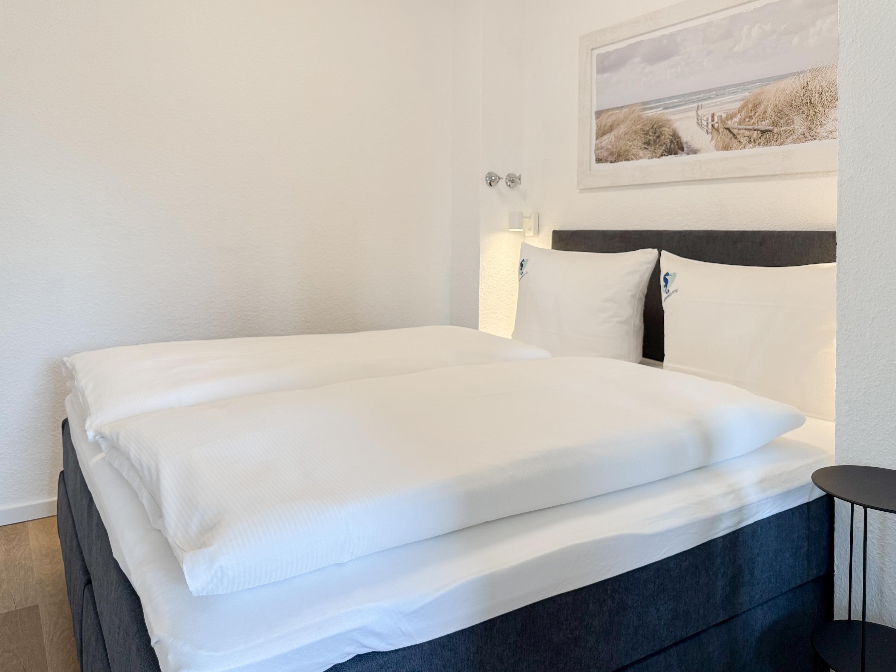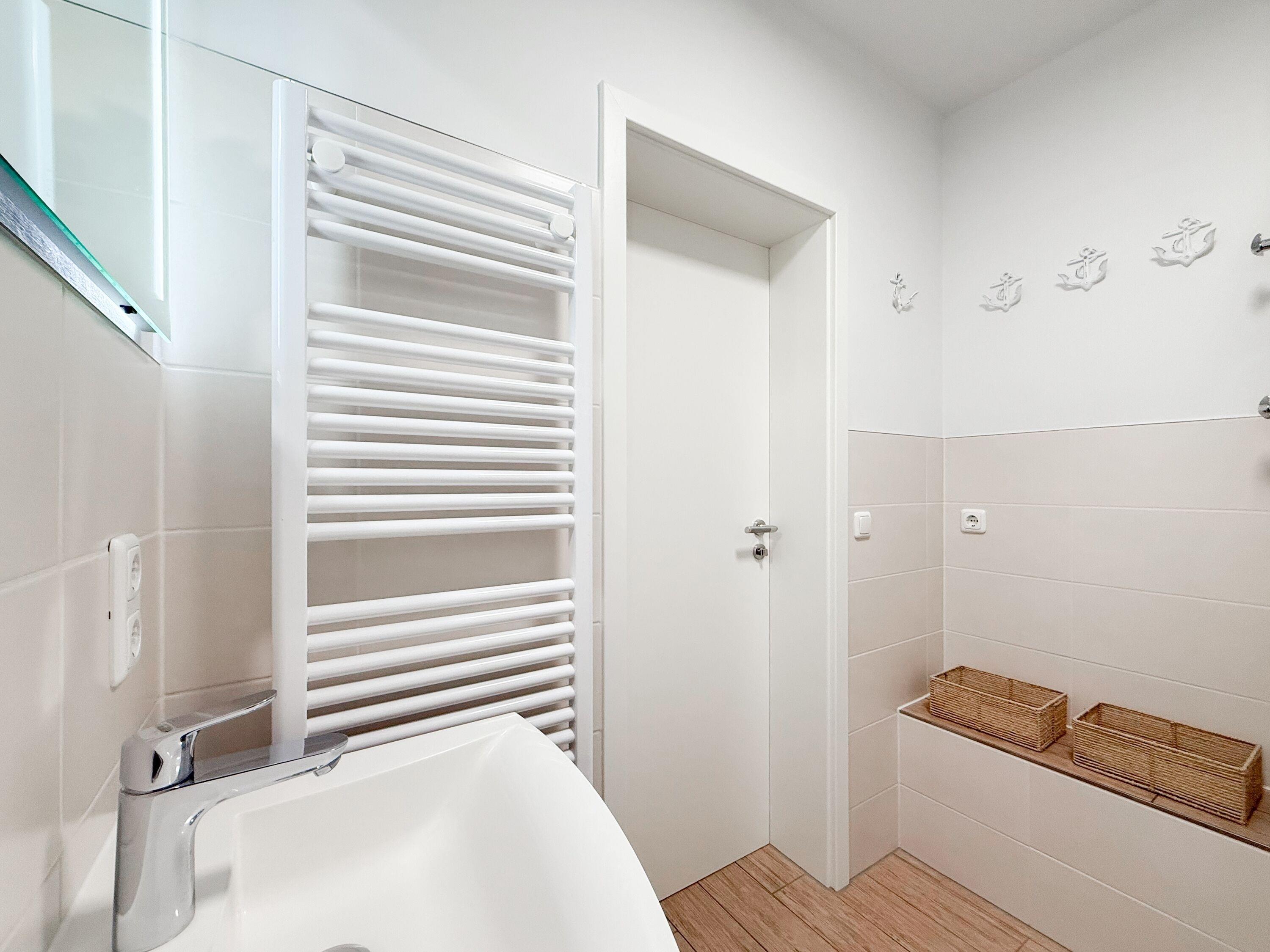 Im Jahr 2025 frisch und aufwendig renoviert, erwartet Sie in der 1. Etage einer sehr gepflegten Wohnanlage, eine lichtdurchflutete Wohlfühloase mit seitlichem Meerblick. Die hochwertige Einrichtung und Ausstattung der Wohnung sorgen für einen hohen Wohnstandard, um in einem schönen Ambiente den wohlverdienten Ostseeurlaub zu verbringen. Der helle Wohnbereich verfügt über ein komfortables Sofa, Smart-TV und einen schönen Essbereich mit ausreichend Platz für gemeinsame Mahlzeiten und gemütliches Beisammensein. Die neue integrierte Einbauküche ist hochwertig und bestens ausgestattet, mit Spülmaschine, Backofen-Mikrowellen-Kombi, Induktionskochfeld, Gefrierschrank und vielem mehr. Der Balkon, teilweise überdacht, erstreckt sich über die gesamte Wohnungsbreite und bietet sowohl einen schönen Blick ins Grüne als auch einen herrlichen seitlichen Blick auf die Ostsee. Genießen Sie vom späten Nachmittag die letzten Sonnenstunden und lassen den Abend bei einem Glas Wein ausklingen. Es gibt 2 separate Schlafzimmer, beide ausgestattet mit einem Boxspringbett (180x200 und 160x200) und TV. Das große Schlafzimmer ist mit einem Boxspringbett (180x200), TV, Verdunkelungsplissees und einem Kleiderschrank mit reichlich Stauraum eingerichtet. Das kleine, innenliegende Schlafzimmer ist ebenfalls mit einem Boxspringbett (160x200),[nbsp] TV und einem kleinen Kleiderschrank ausgestattet. Es verfügt über ein kippbares Fenster zum Wohnbereich, das mit einem Verdunkelungsrollo versehen ist. Das neuwertige moderne Duschbad ist ausreichend groß, Handtuchtrockner und Föhn sind vorhanden. WLAN steht selbstverständlich zur Verfügung.
