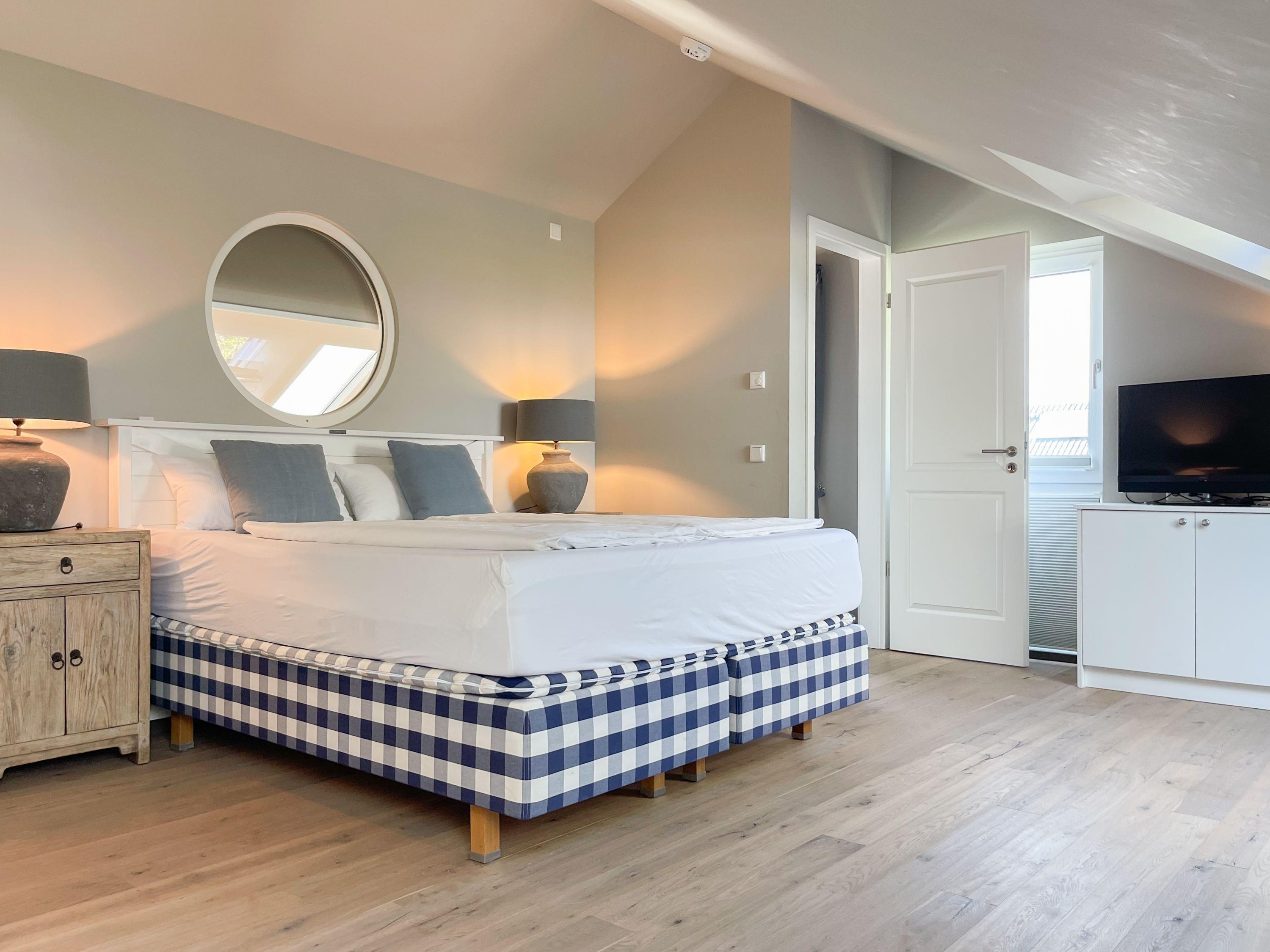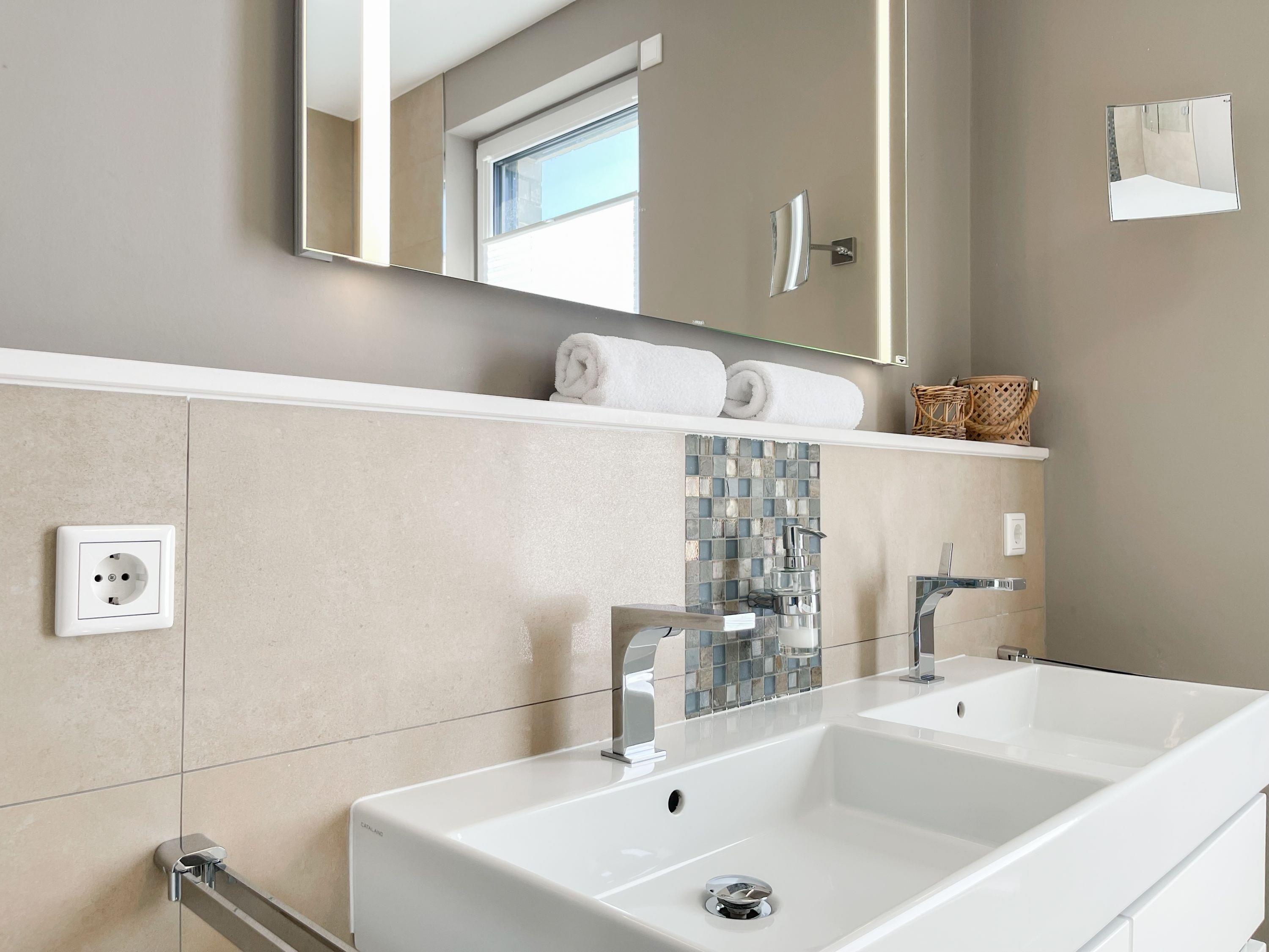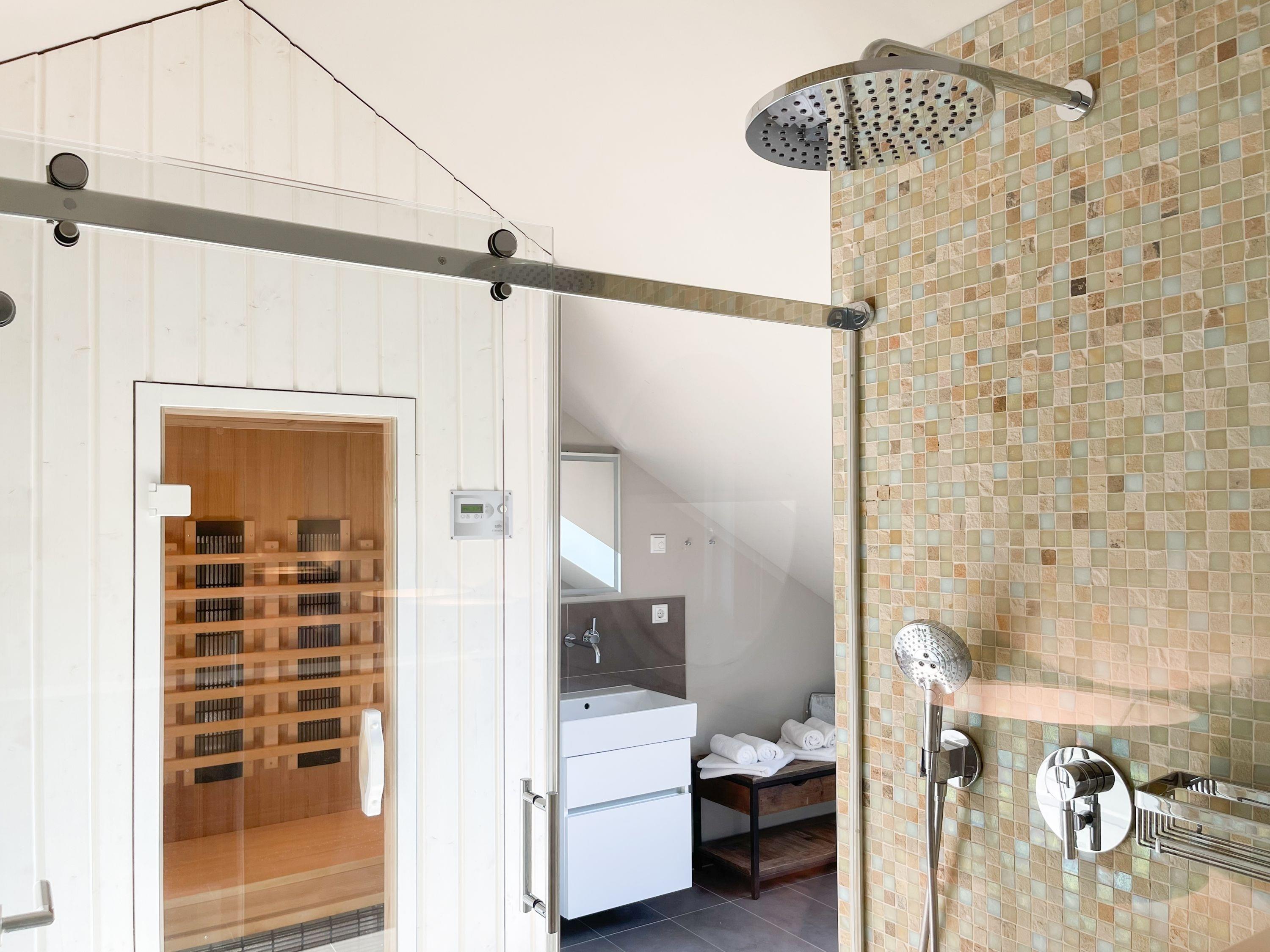 Das Penthouse präsentiert sich als traumhaftes Loft über 2 Ebenen. Die hochwertige, äußerst geschmackvolle Einrichtung vermittelt ein wunderbares Wohngefühl. Für erholsame Urlaubstage sorgen zwei großzügige Dachterrassen und die Infrarot Wärmekabine, besonders hilfreich gegen Verspannungen und zur Entschlackung. Auf der unteren Ebene ist der gemütliche Wohnbereich mit vorgelagerter Sonnenterrasse, der anschließende Essbereich und die offene, bestens ausgestattete Wohnküche mit integrierter Waschmaschine untergebracht. Auf dieser Wohnebene befindet sich ebenfalls ein Schlafzimmer, ausgestattet mit einem Boxspringbett und zusätzlichem TV. Highlight ist die vorgelagerte zweite Dachterrasse, um die ersten Sonnenstrahlen bei einem Morgenkaffee zu genießen. Ein hochwertiges Tageslichtbad mit kombinierter Badewanne/Dusche und ein separates Gäste WC stehen zur Verfügung. Auf der oberen Ebene befindet sich das zweite, abgeschlossene Schlafzimmer, das ebenfalls[nbsp] mit einem Doppelbett und zusätzlichem TV ausgestattet ist und ein modernes, helles Duschbad mit integrierter Infrarot Wärmekabine. Die Fenster der beiden Schlafzimmer sind mit Verdunkelungsplissees versehen, um einen erholsamen Schlaf zu gewährleisten.