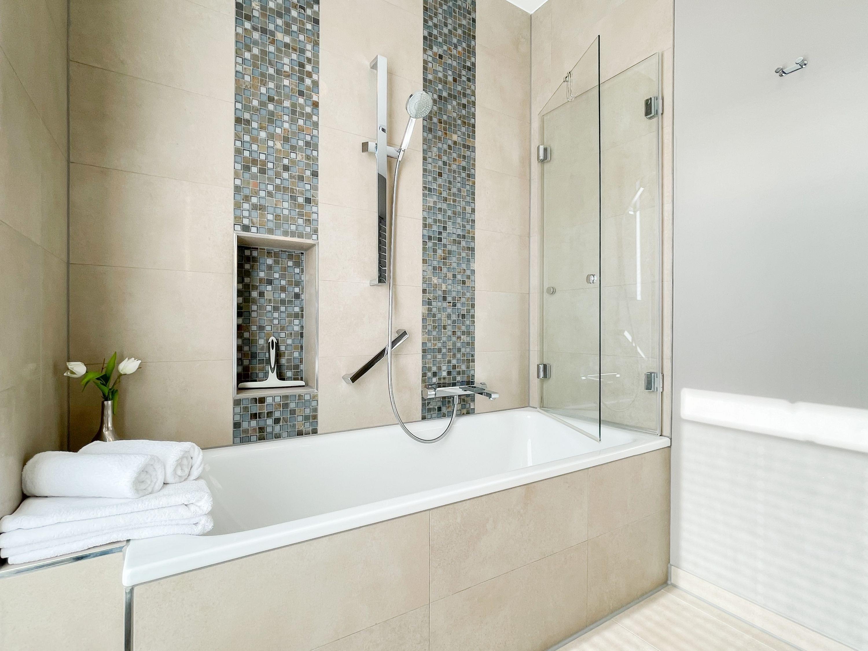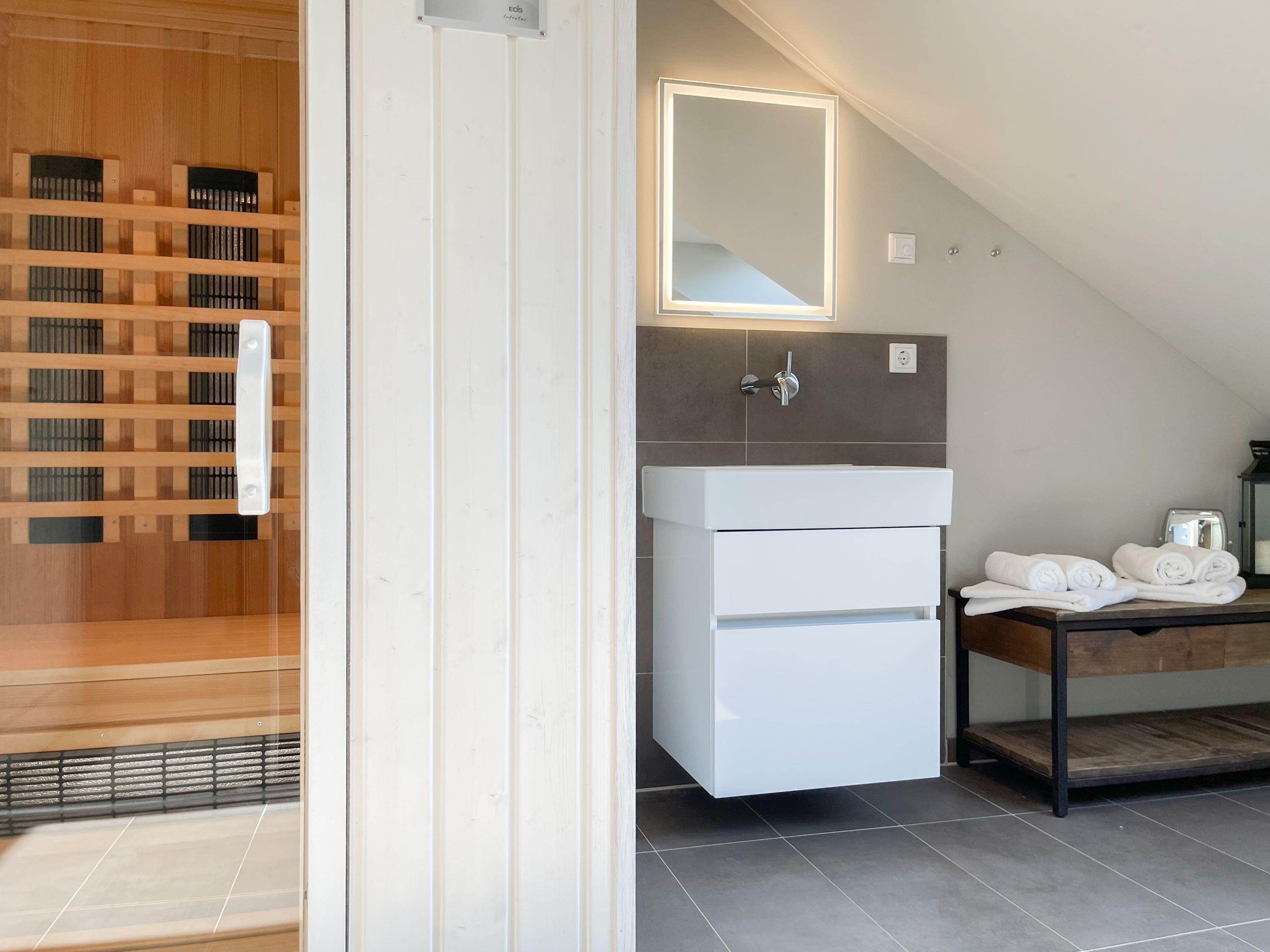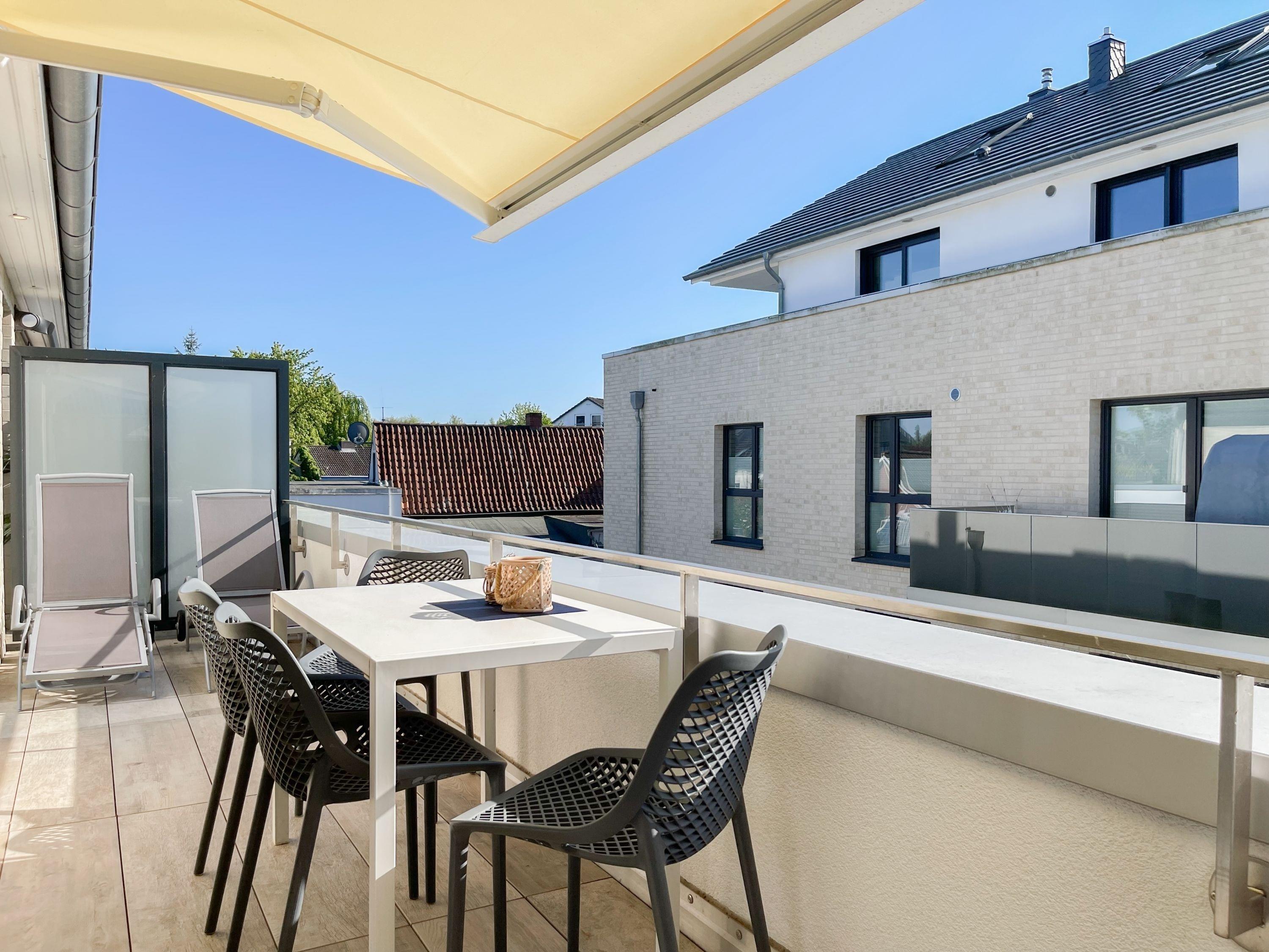 Moderne Penthouse-Ferienwohnung in Scharbeutz mit zwei Terrassen, Infrarotkabine und strandnaher Lage für erholsamen Urlaub.