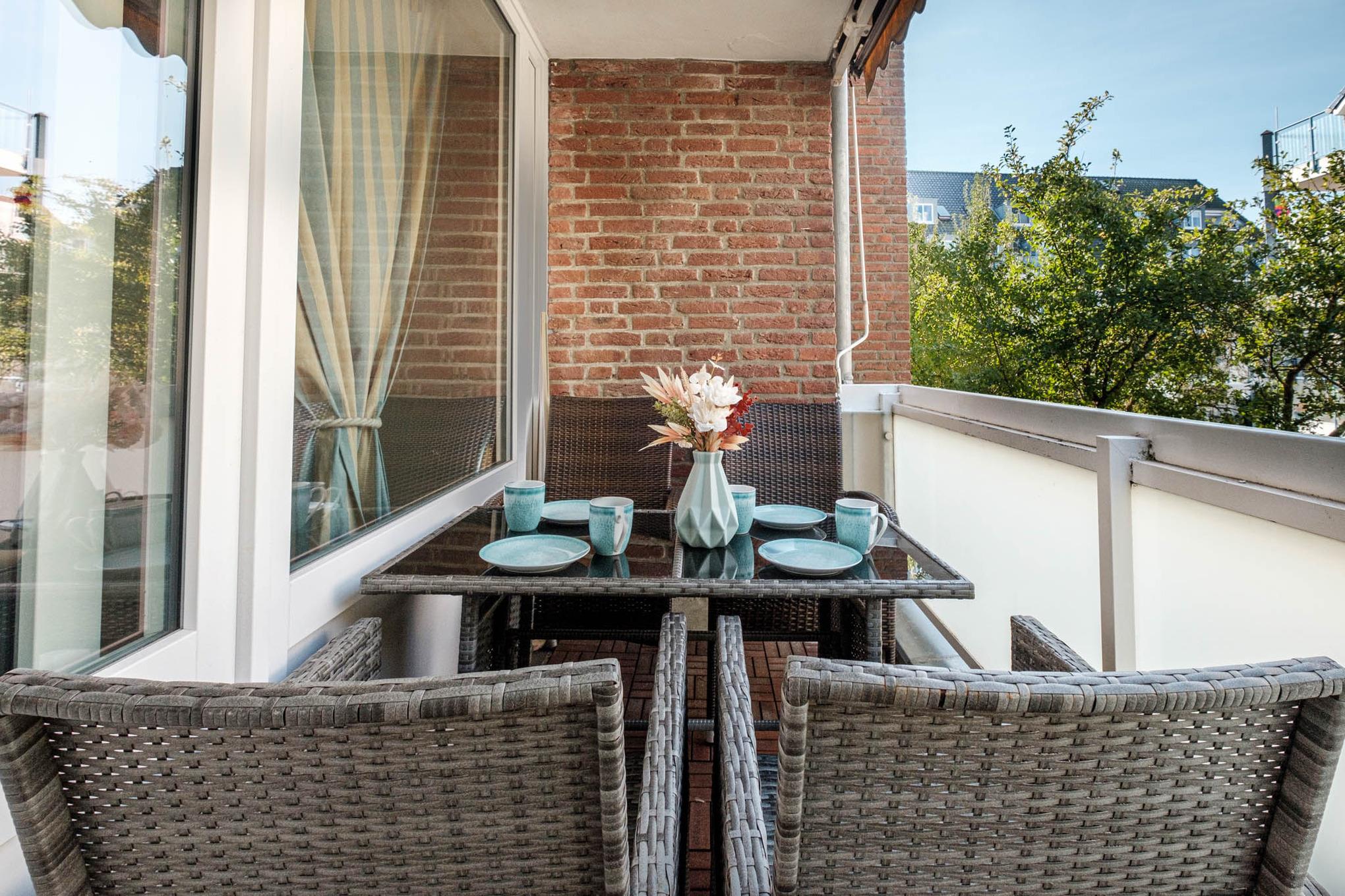 Maritim gestaltete Ferienwohnung "Nennas Nest" in Scharbeutz, nur 100m vom Strand, mit Balkon und moderner Ausstattung.
