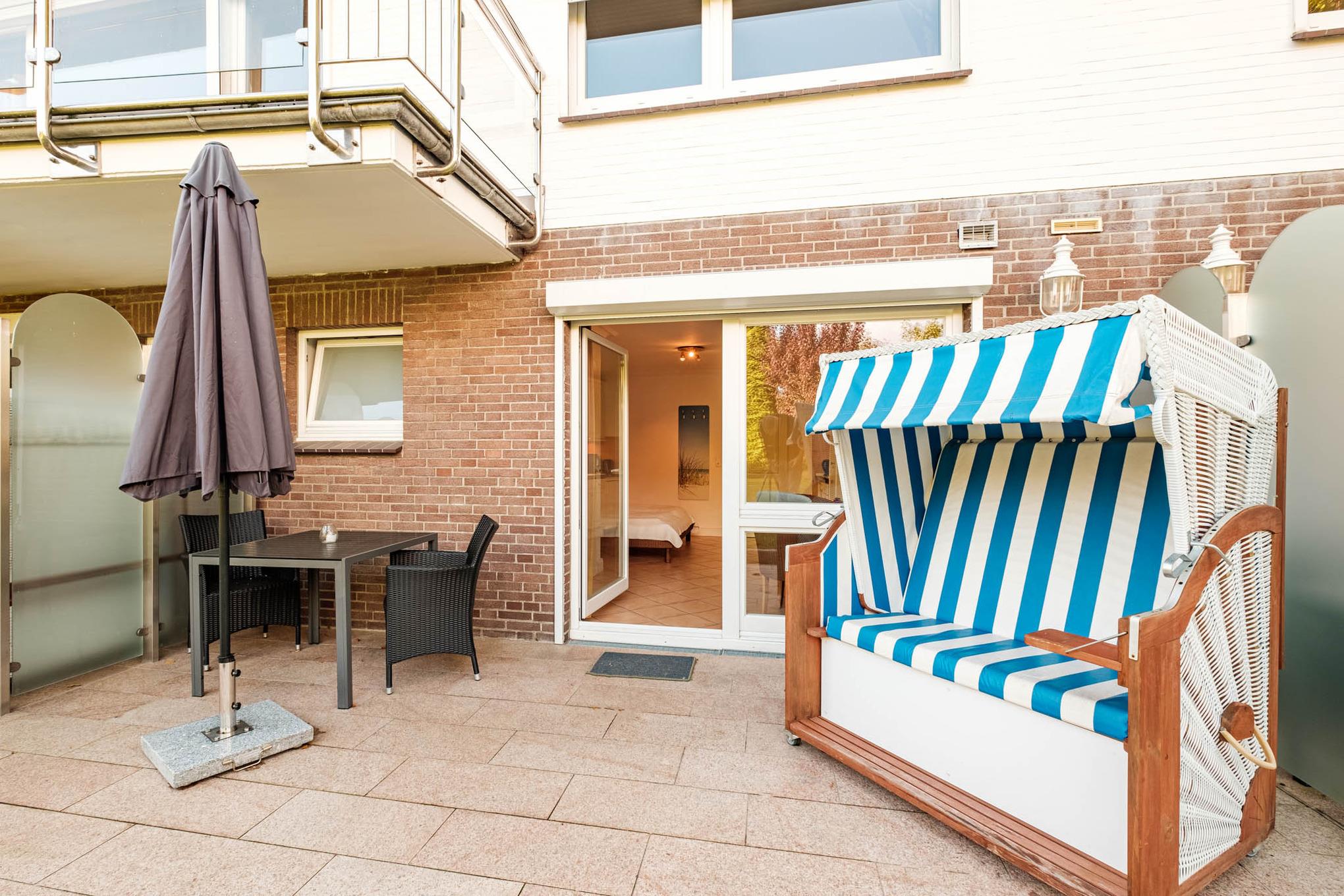 Die Scharbeutz Ferienwohnung Nr. 2 im Gästehaus Nina ist für 2 Personen ausgelegt. Sie liegt im Untergeschoss mit möblierter Nord-Ost-Terrasse. Das Haus Nina ist hanglagig gebaut, d.h. Sie müssen zunächst einige Treppenstufen runter gehen, um zur Wohnung zu kommen.