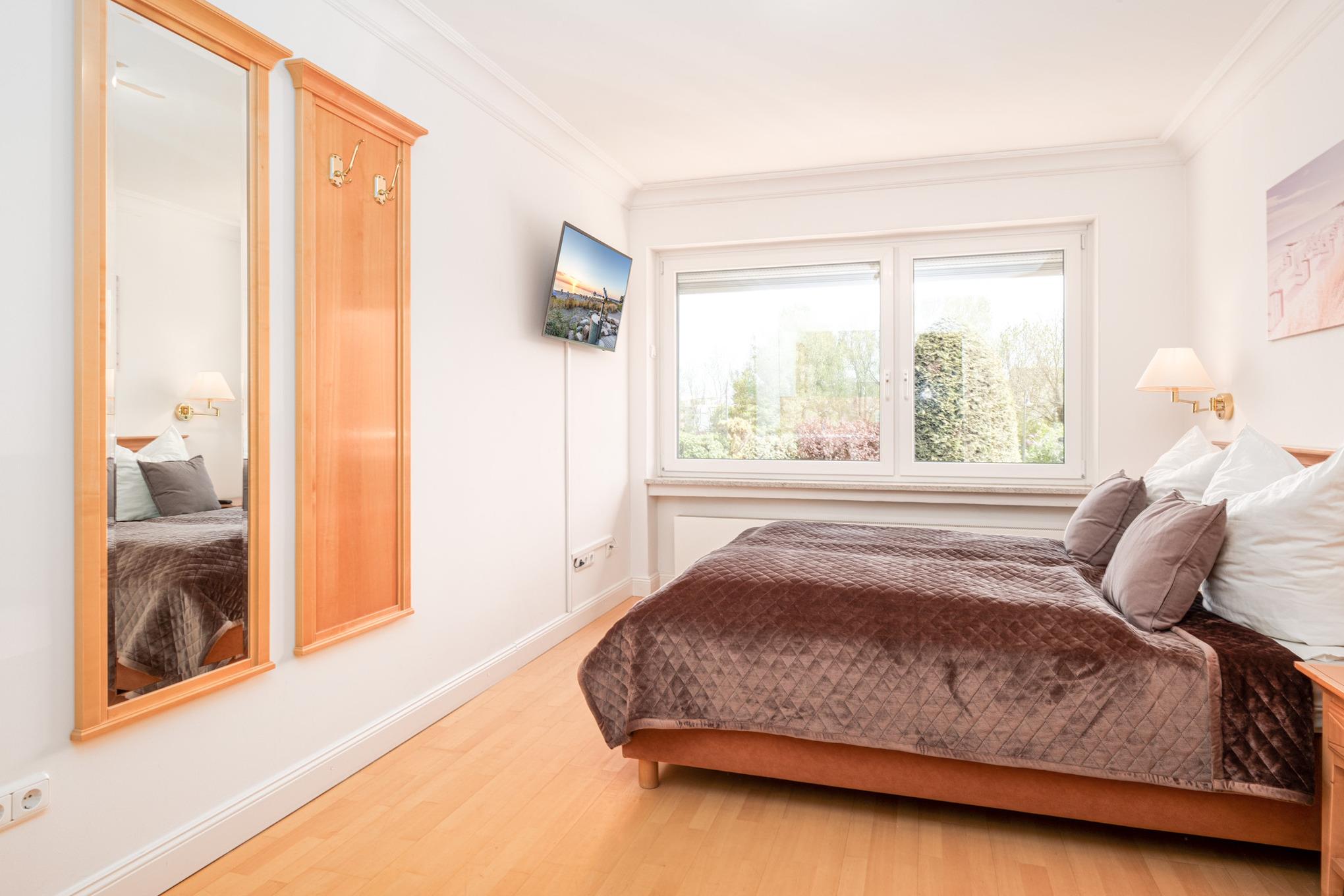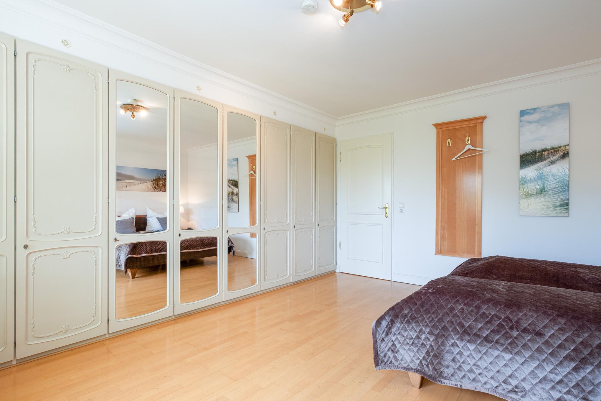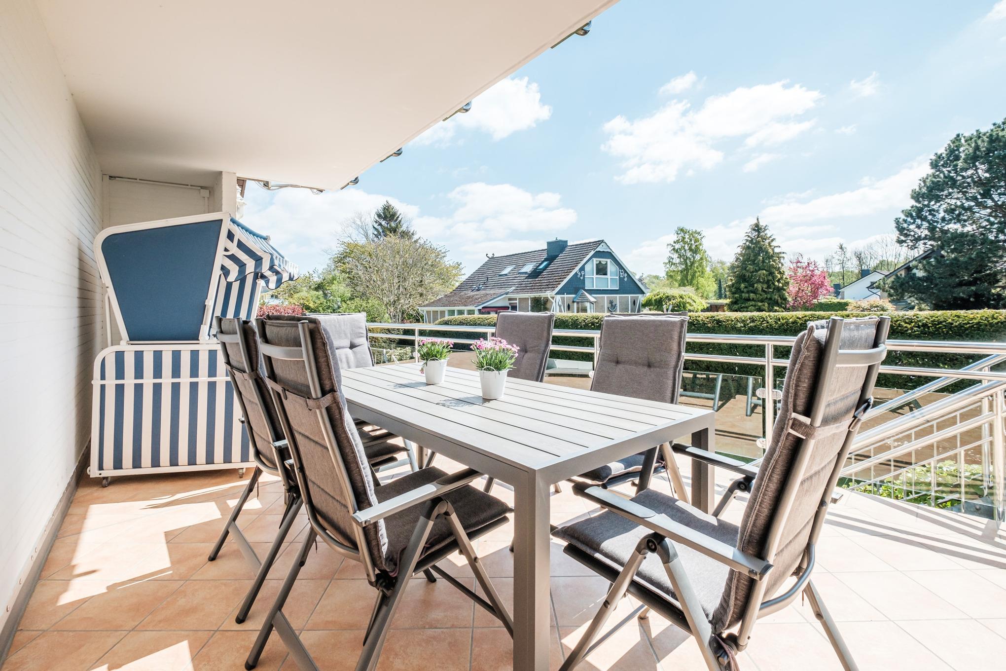 Die Scharbeutz Ferienwohnung Nr. 4 ist für 6 Personen ausgelegt und befindet sich im Hochparterre mit großer, umlaufender und möblierter Süd/Ost-Terrasse bzw. Balkon mit Treppe in den Garten. Auf ca. 150qm erwartet Sie eine große Ferienwohnung mit 3 separaten Schlafzimmern, jeweils mit Doppelbett (180x200 cm) und einmal mit zusätzlichem Flatscreen-TV.