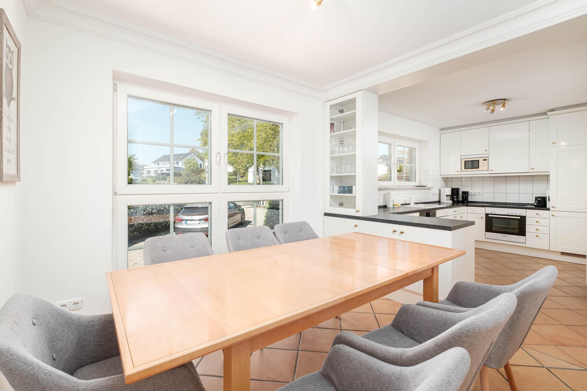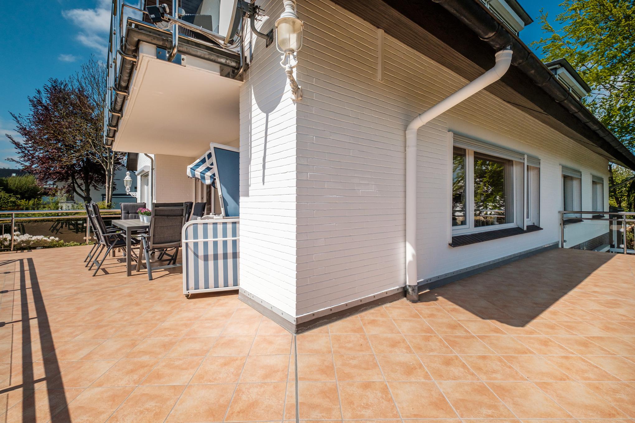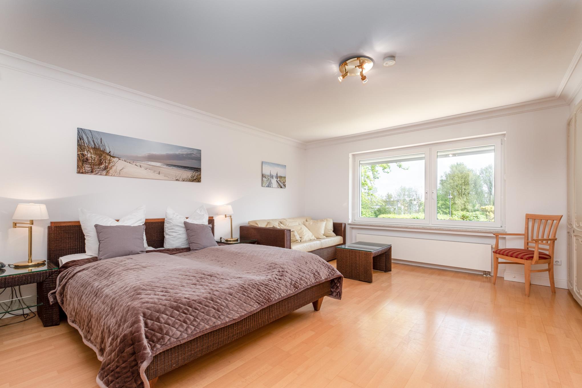 Die Scharbeutz Ferienwohnung Nr. 4 ist für 6 Personen ausgelegt und befindet sich im Hochparterre mit großer, umlaufender und möblierter Süd/Ost-Terrasse bzw. Balkon mit Treppe in den Garten. Auf ca. 150qm erwartet Sie eine große Ferienwohnung mit 3 separaten Schlafzimmern, jeweils mit Doppelbett (180x200 cm) und einmal mit zusätzlichem Flatscreen-TV.
