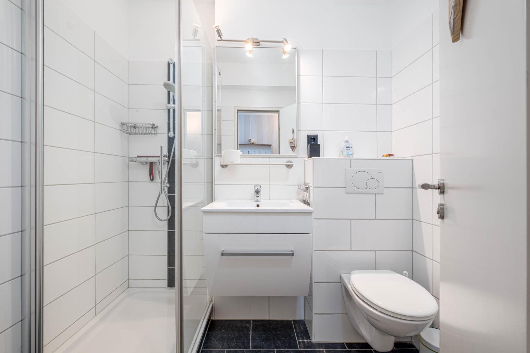 Das separate Schlafzimmer der Ferienwohnung Scharbeutz verfügt über ein Doppelbett (180x200cm) und einen großen Kleiderschrank. Das moderne Badezimmer verfügt über eine Dusche und WC.