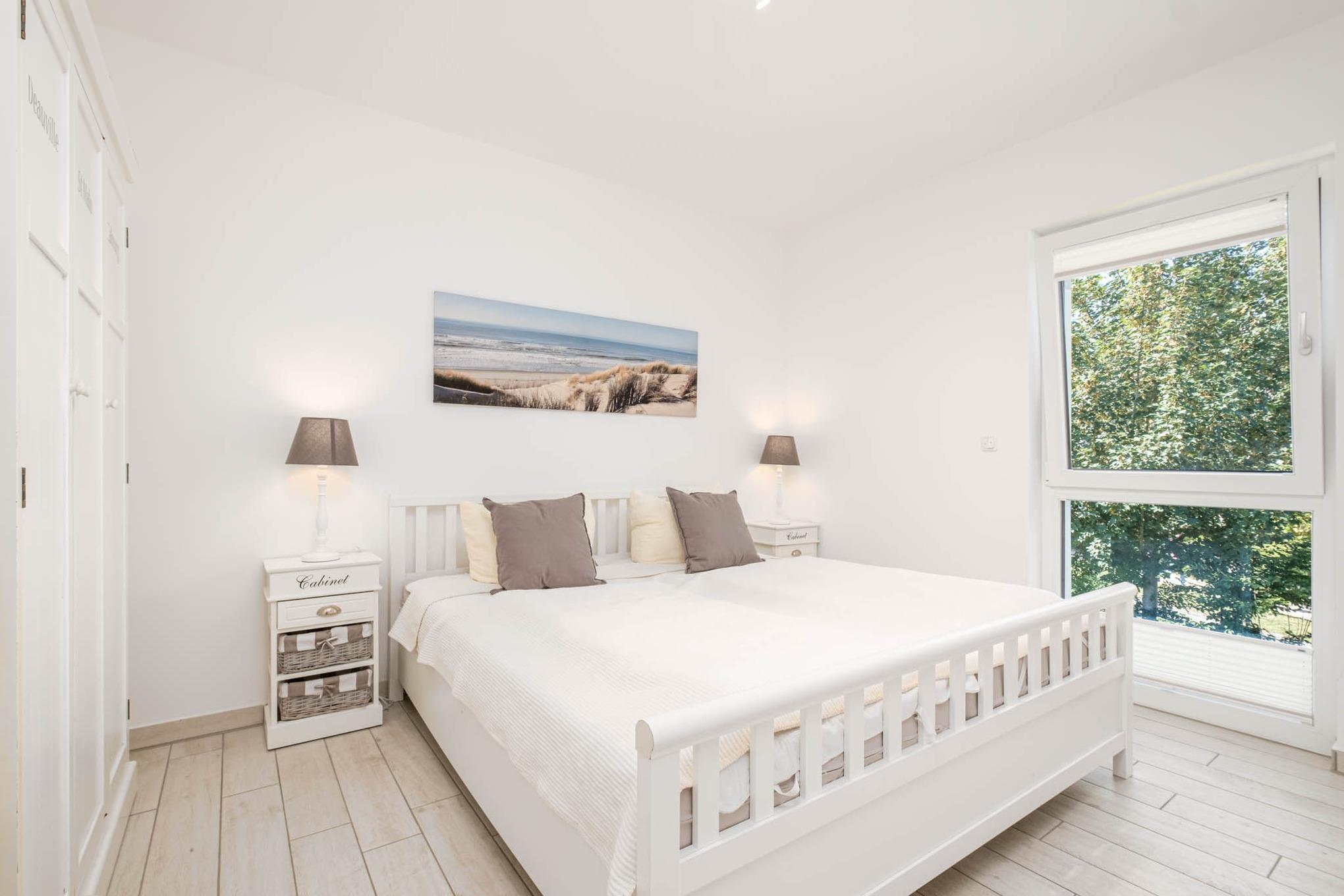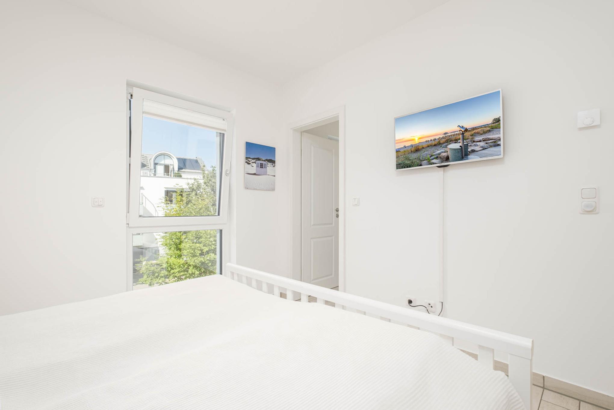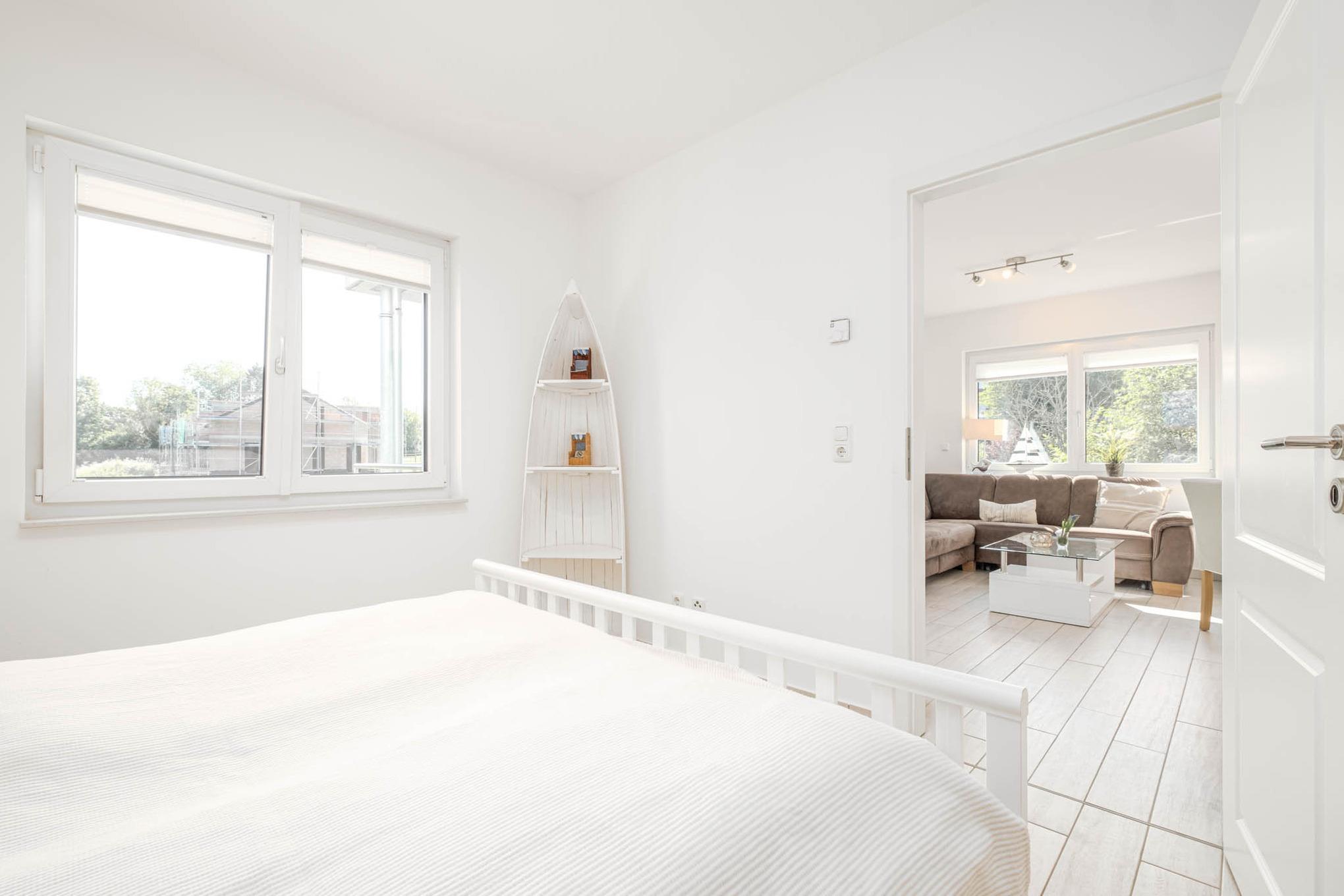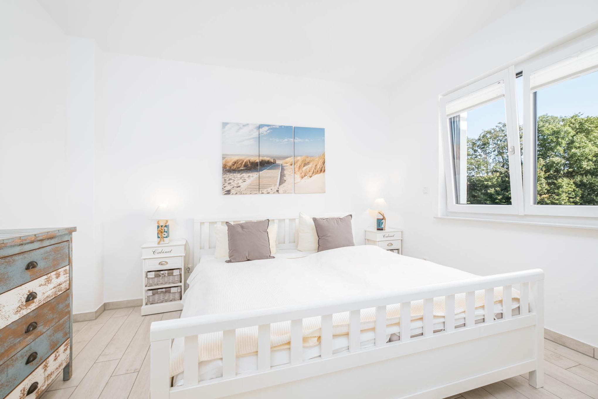 Diese Scharbeutz Ferienwohnung verfügt über 2 separate Schlafzimmer. Das Schlafzimmer I ist mit einem Doppelbett (180x200cm), einem Kleiderschrank sowie einem zusätzlichem Flatscreen-TV eingerichtet. Das Schlafzimmer II ist ebenfalls mit einem Doppelbett (180x200cm) ausgestattet. Ein großer Einbauschrank befindet sich im Flur.