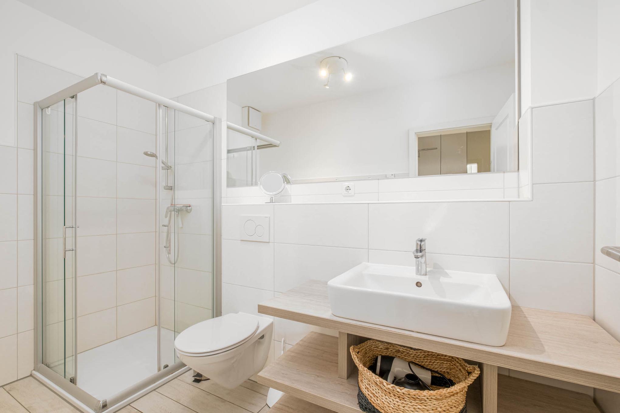 Auch dieses Appartement verfügt über 2 komplette Badezimmer. Beide Bäder besitzen eine eigene Dusche. Der möblierte und große Balkon in Süd-Ost-Lage rundet dieses wunderschöne Urlaubsdomizil im Herzen von Scharbeutz ab.