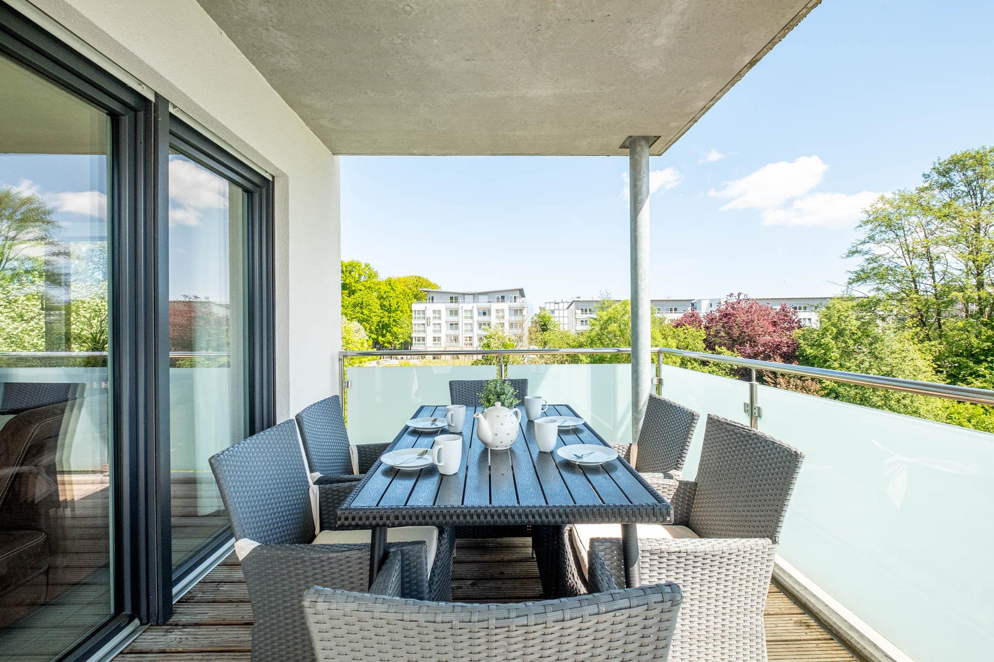 Diese Scharbeutz Ferienwohnung ist mit 2 separaten Bädern ausgestattet. Ein Badezimmer ist mit einer Dusche eingerichtet, das andere Badezimmer verfügt über eine Badewanne. Der möblierte und große Balkon in Süd-Lage bietet Platz für entspannte Stunden mit der Familie und rundet dieses wunderschöne Urlaubsdomizil im Zentrum von Scharbeutz ab.