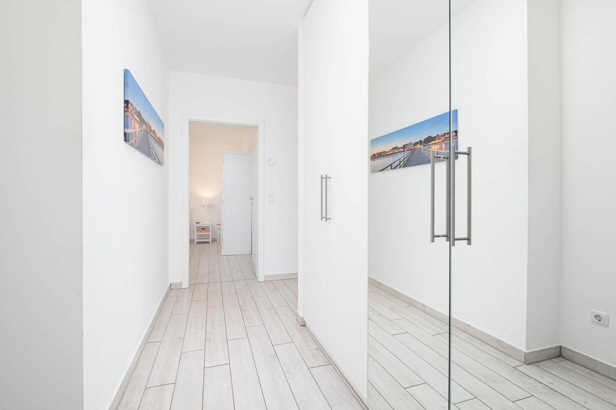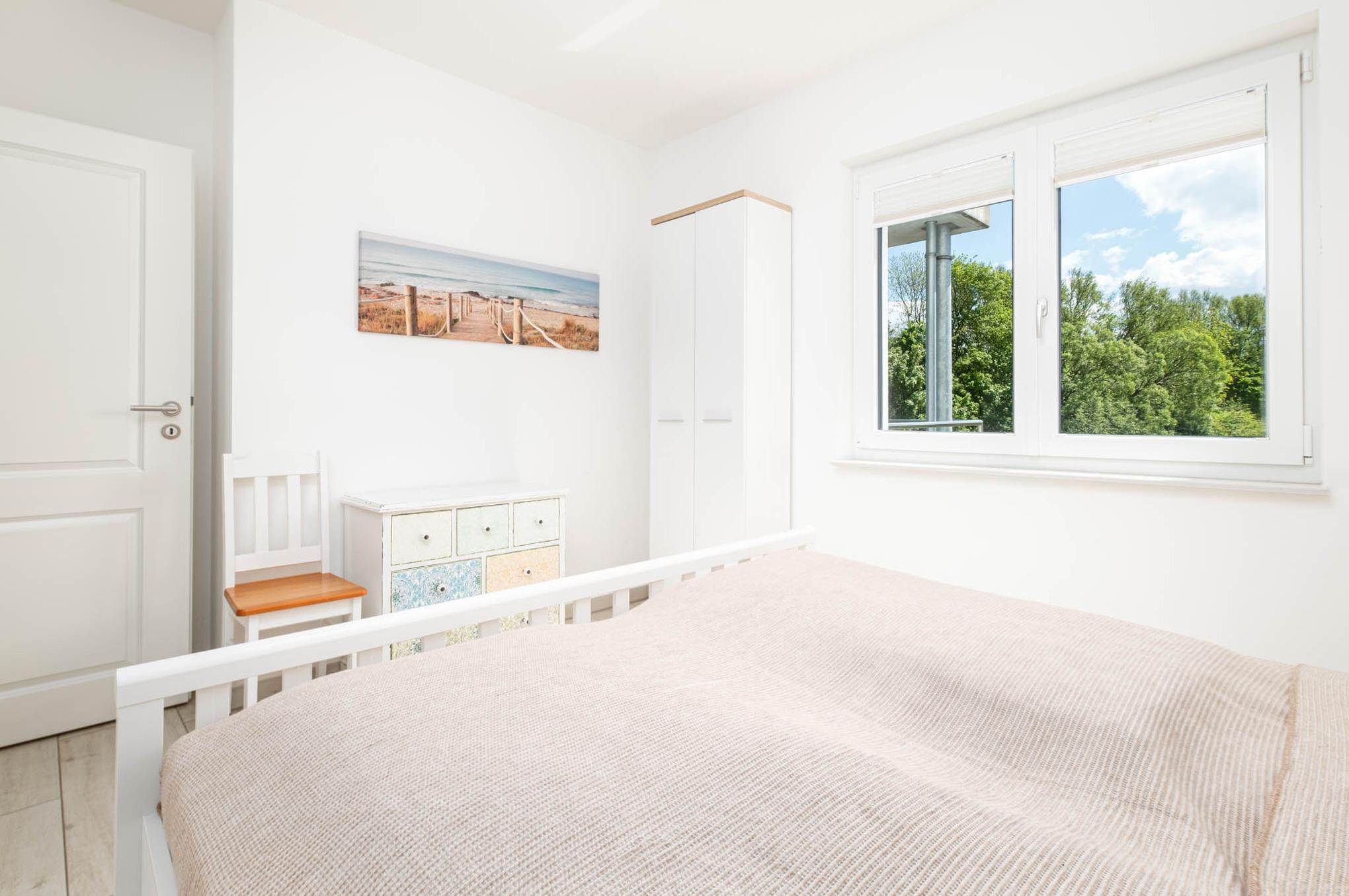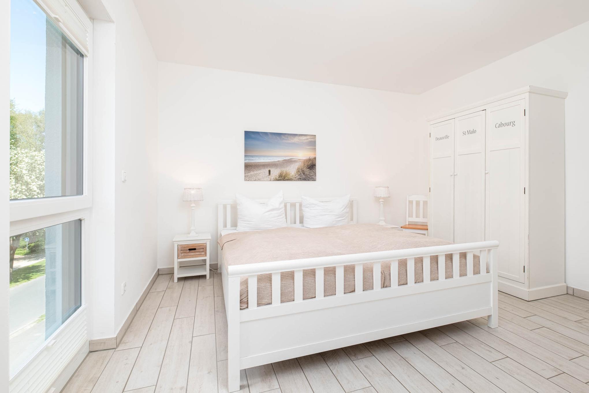 Die 4 Schlafplätze verteilen sich auf 2 separate Schlafzimmer. Das Schlafzimmer I ist mit einem Doppelbett (180x200cm), einem zusätzlichen Flatscreen-TV und einem Kleiderschrank ausgestattet. Das Schlafzimmer II verfügt ebenfalls über ein Doppelbett (180x200xm) und einen Kleiderschrank. Zudem gibt es einen großen Einbauschrank im Flur.