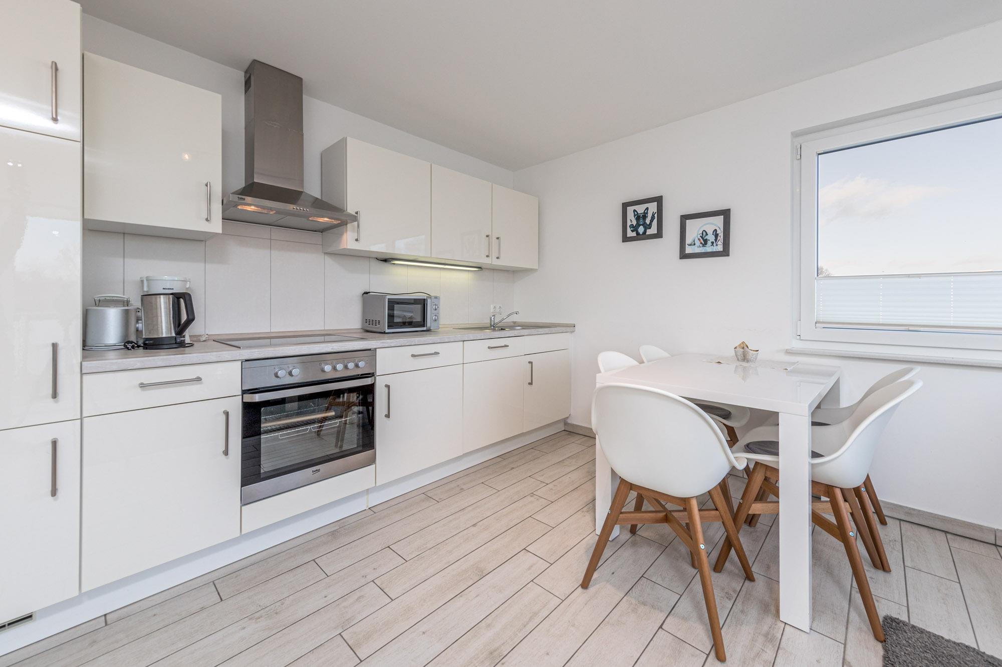 Das moderne 3-Zimmer-Appartement Nr. 6 liegt in der 2. Etage mit einem großen Balkon und bietet Platz für maximal 5 Personen. Der Mietpreis gilt für eine Belegung mit 4 Personen. Die 5. Person wird mit 15,-€/Übernachtung extra berechnet!