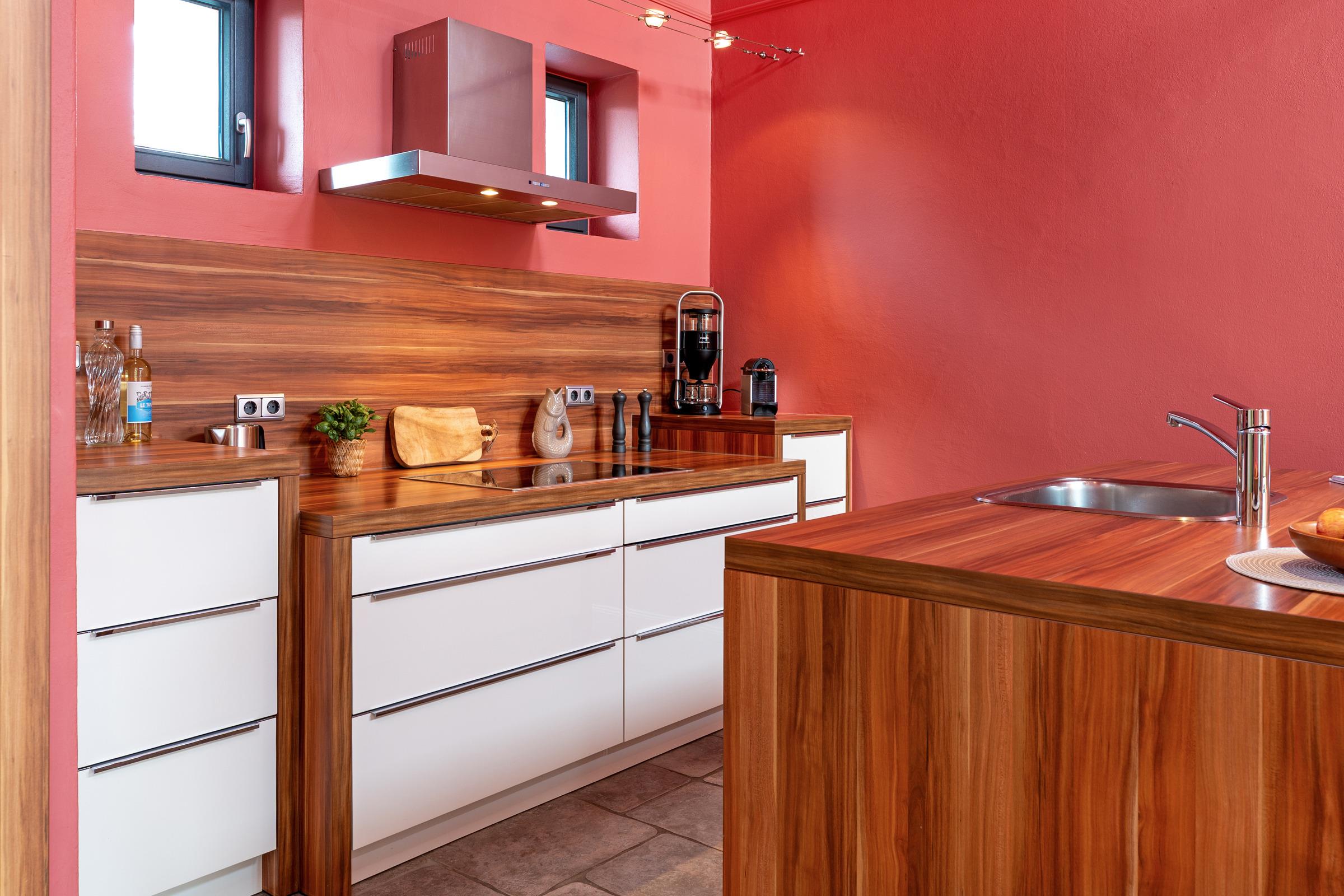 Die offene, voll ausgestattete Küche lässt keine Wünsche offen: Cerankochfeld, Backofen, Geschirrspülmaschine, Kühlschrank, Gefrierschrank, Mikrowelle, Kaffeemaschine und Kapselmaschine, Wasserkocher und Toaster stehen bereit.