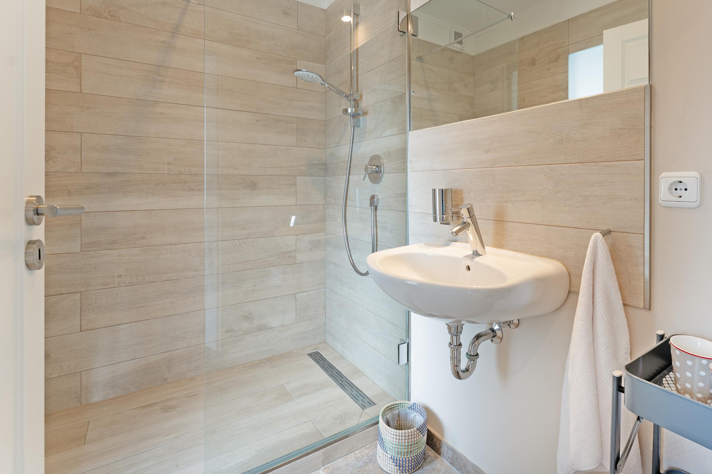 Im Erdgeschoss befindet sich ein Schlafzimmer mit Schlafsofa (80 x 190 cm) sowie ein Gäste-WC. Über eine Wendeltreppe erreichen Sie das Obergeschoss mit zwei weiteren Schlafzimmern, jeweils ausgestattet mit Doppelbett. Zwei moderne Badezimmer sorgen für Komfort: ein Duschbad und ein weiteres Bad mit bodengleicher Dusche und Badewanne. Fußbodenheizung, Verdunklungsmöglichkeiten, Waschmaschine und WLAN runden die Ausstattung ab.