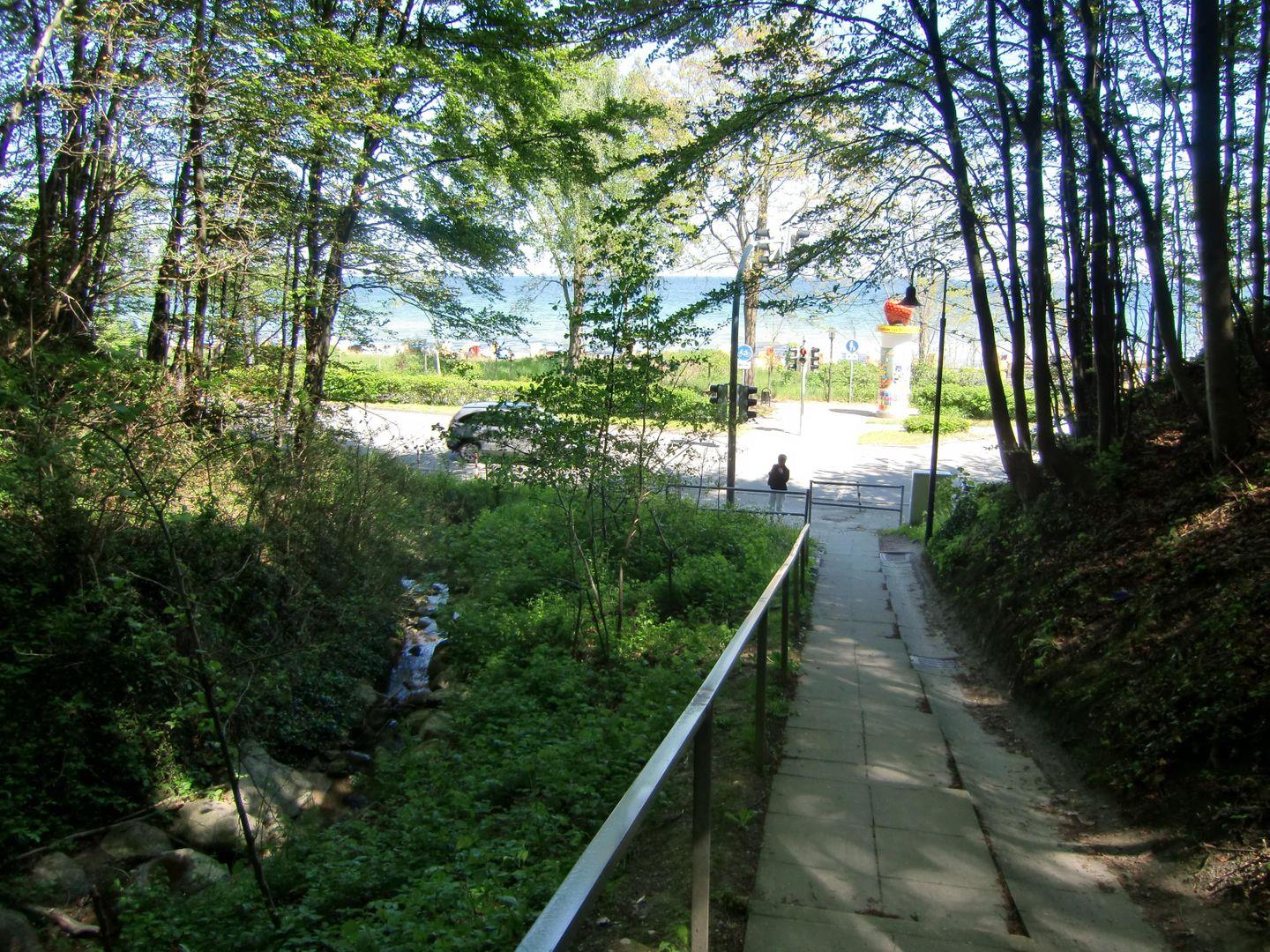 Nur ca. 100 m und eine öffentliche Treppe hinab und schon sind Sie am feinsandigen langen Strand. Eine Fußgängerampel macht Ihnen den Weg frei auf die andere Seite, auf die Strandseite. Nur wenige Meter und Sie joggen im Wald, nur 20 Fuß-Minuten und Sie sind bei der bekannten zu Scharbeutz gehörenden Ostseetherme an der Gemeindegrenze zu Timmendorfer Strand.