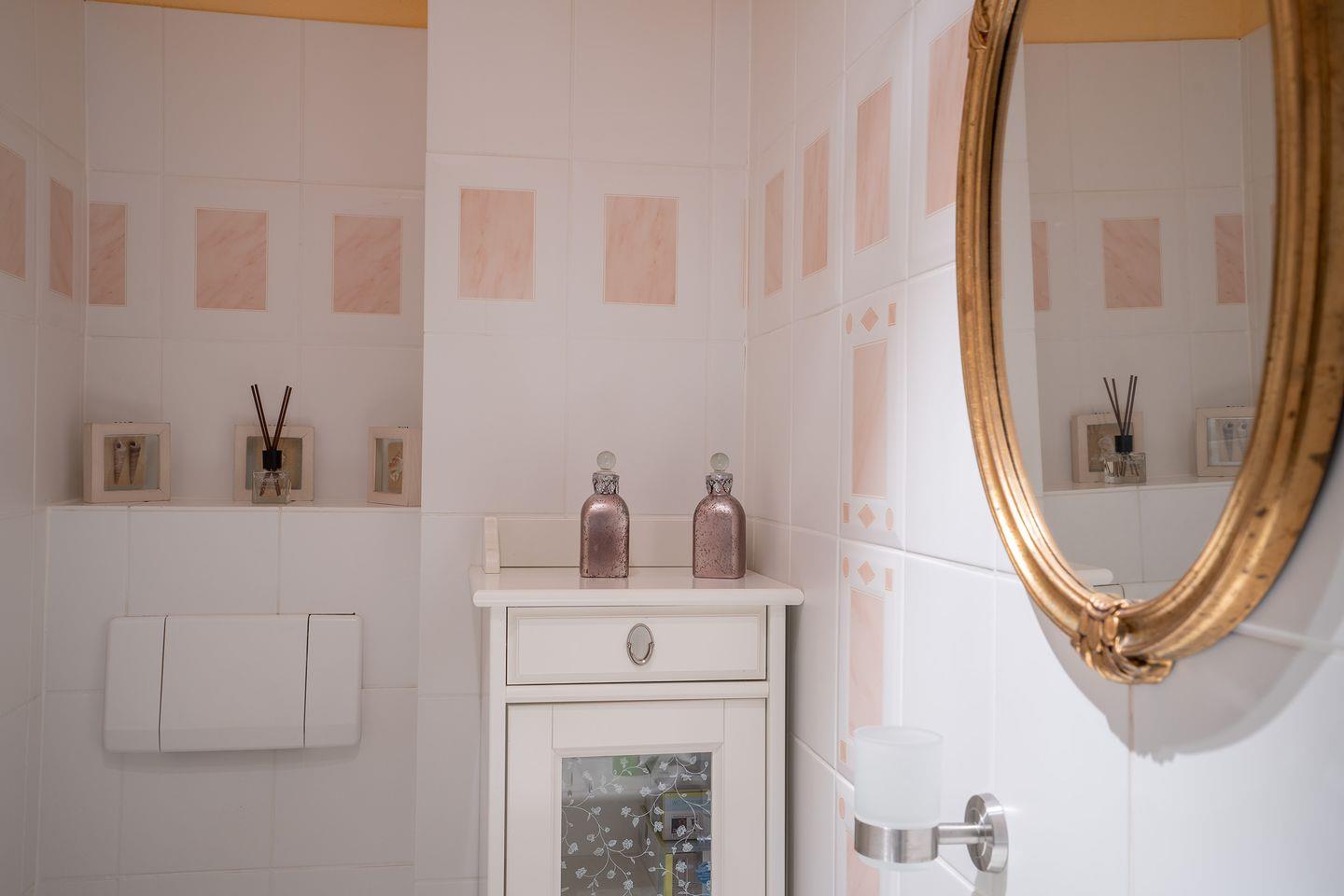 Über eine Treppe erreicht man das zweite Schlafzimmer ebenfalls mit einer Terrasse. In dem Schlafzimmer gibt es ein Doppelbett (180x200 cm/Einzelmatratzen) ) und ein weiteres TV-Gerät. Ein zweites Duschbad mit einem kleinen Abstellraum sind auf dieser Ebene vorhanden. Im Keller gibt es eine Waschmaschine und einen Trockner ( Münzbetrieb ).