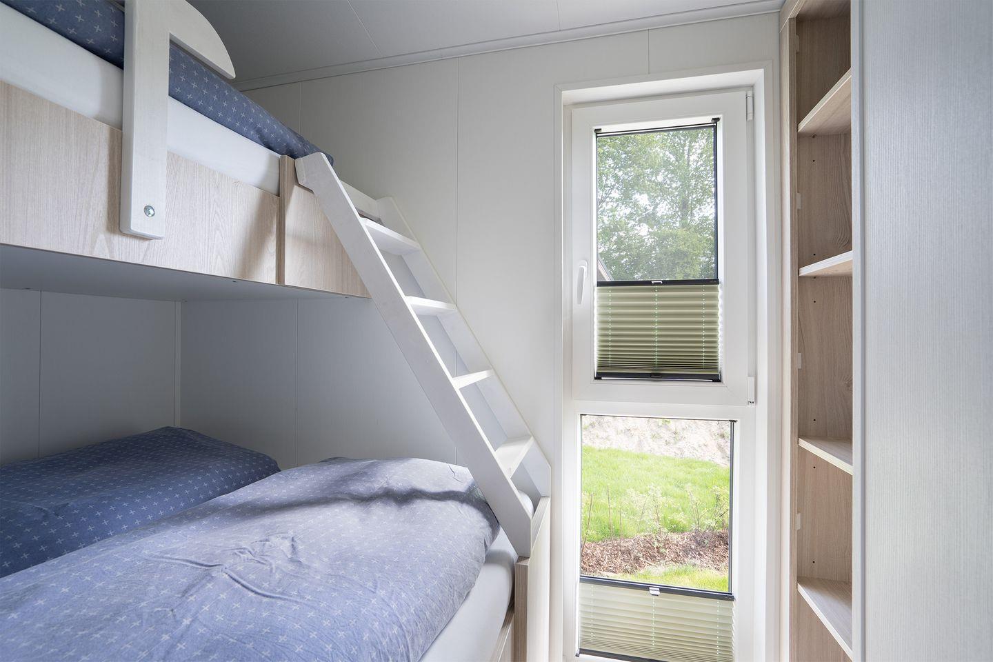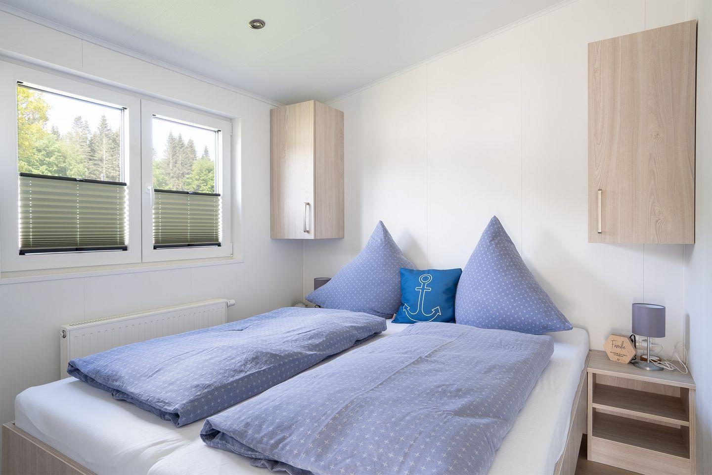 Das TO HUUS bietet anhand der 2 Schlafzimmer mit einem Doppel- und einem Hochbett Platz für 4-6 Personen. In dem offenen Wohn-, Ess- und Kochbereich befindet sich neben einer gut ausgestatteten Küche und einem Esstisch mit 5 Sitzmöglichkeiten auch ein Schlafsofa und TV. Zwischen dem Wohn- und Schlafbereich befindet sich das kleine Bad mit bodengleicher Dusche, Waschtisch, Toilette und Fenster für die tägliche Körperpflege.