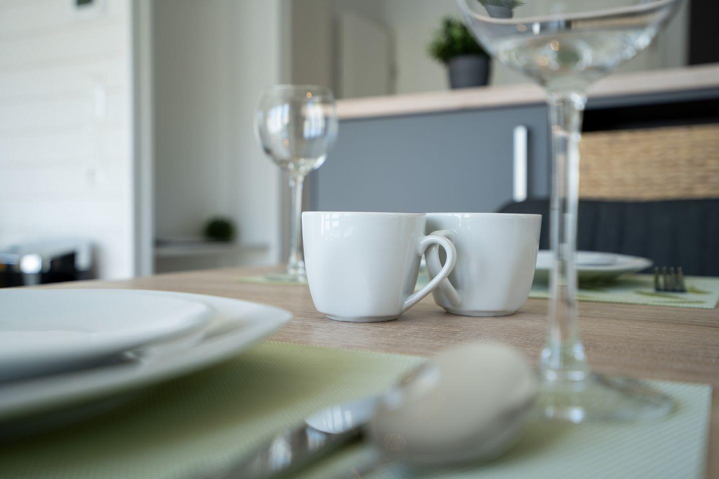 Der offene Wohnbereich lädt zu entspannten Abenden mit der ganzen Familie ein. Die integrierte Küche ist voll ausgestattet und lässt keine Wünsche offen. Der angrenzende Essbereich bietet genügend Platz.