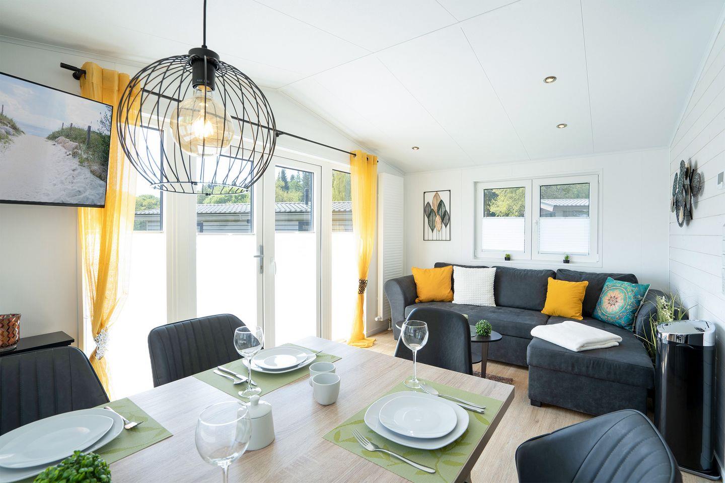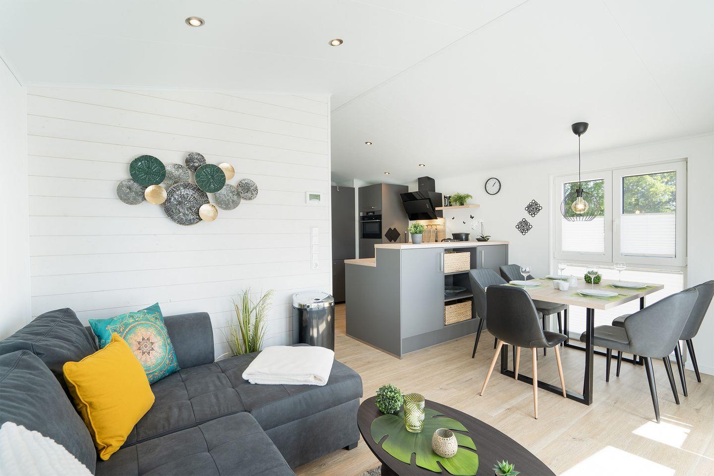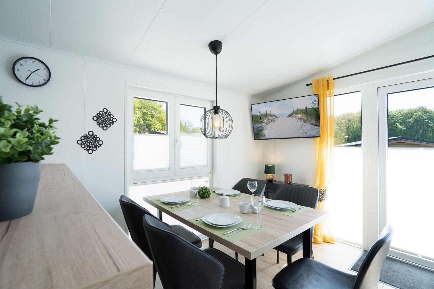Erleben Sie erholsamen Urlaub im modernen Mobilheim "Haus Dünenresidenz" nahe der Lübecker Bucht in ruhiger Waldlage.