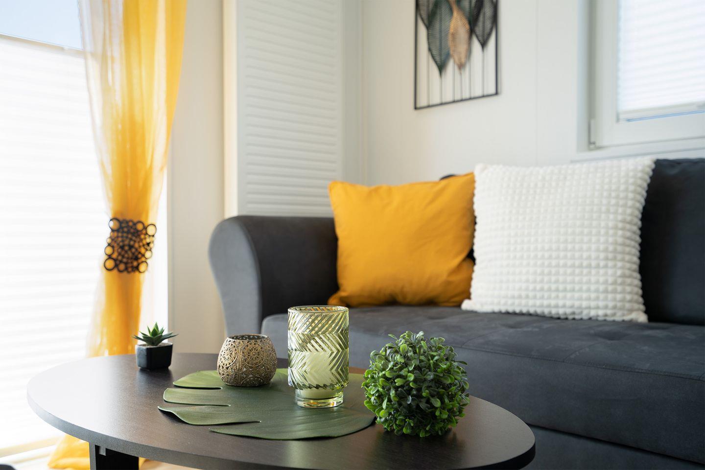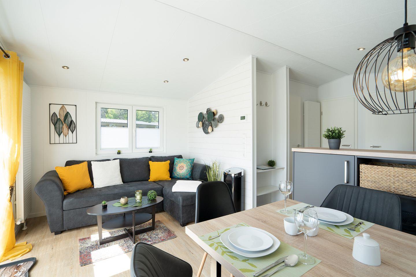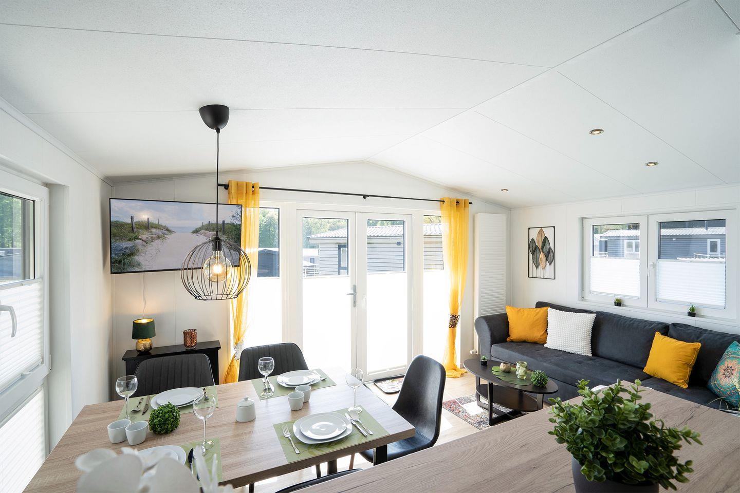 und gemütlich eingerichtete Mobilheim mit 45 qm ein einzigartiges Urlaubserlebnis an der Lübecker Bucht.