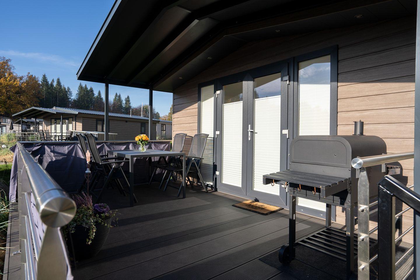 Modernes Mobilheim nahe Lübecker Bucht im Wald