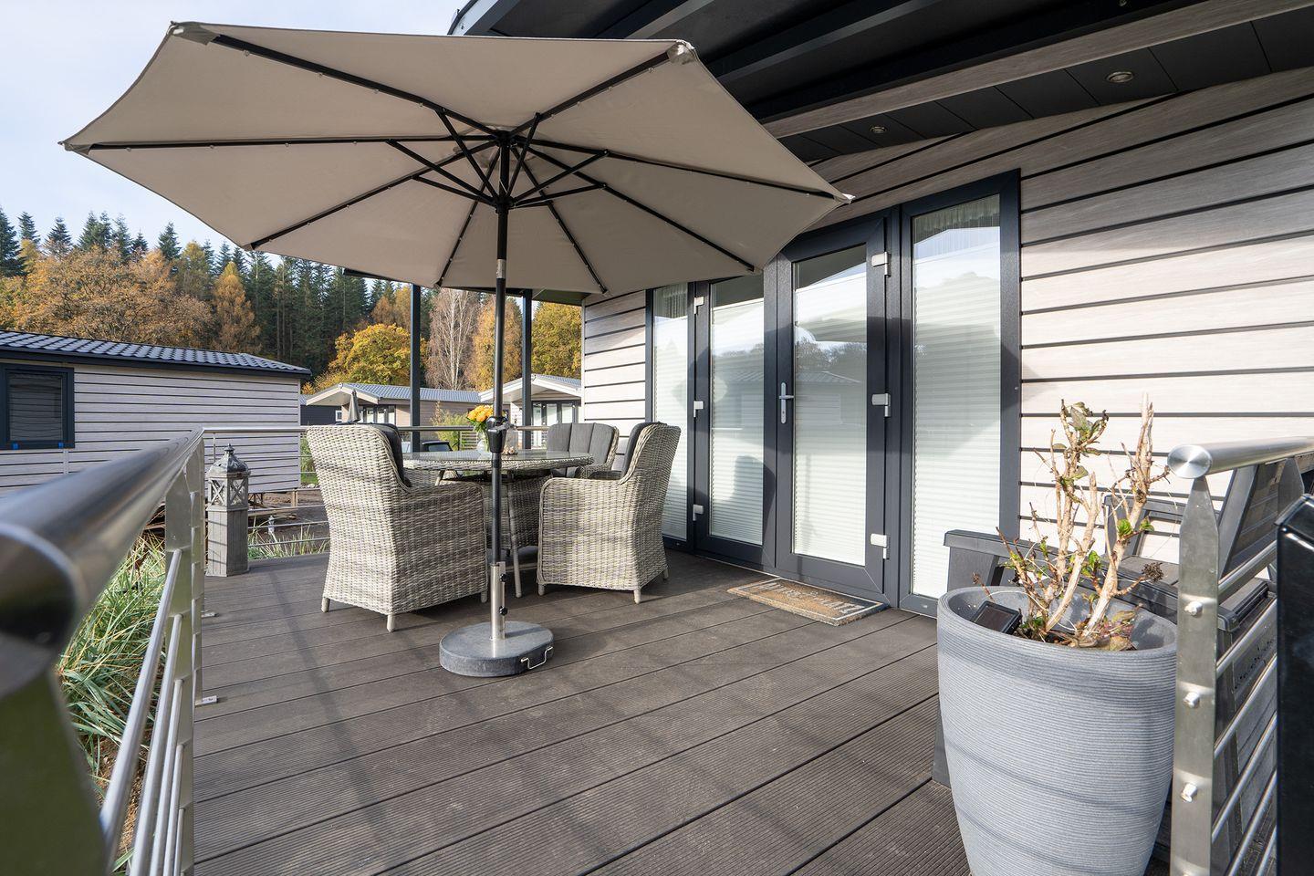 Auf der Terrasse können Sie bei fast jedem Wetter gemütlich beisammensitzen. Sie ist teilweise überdacht.