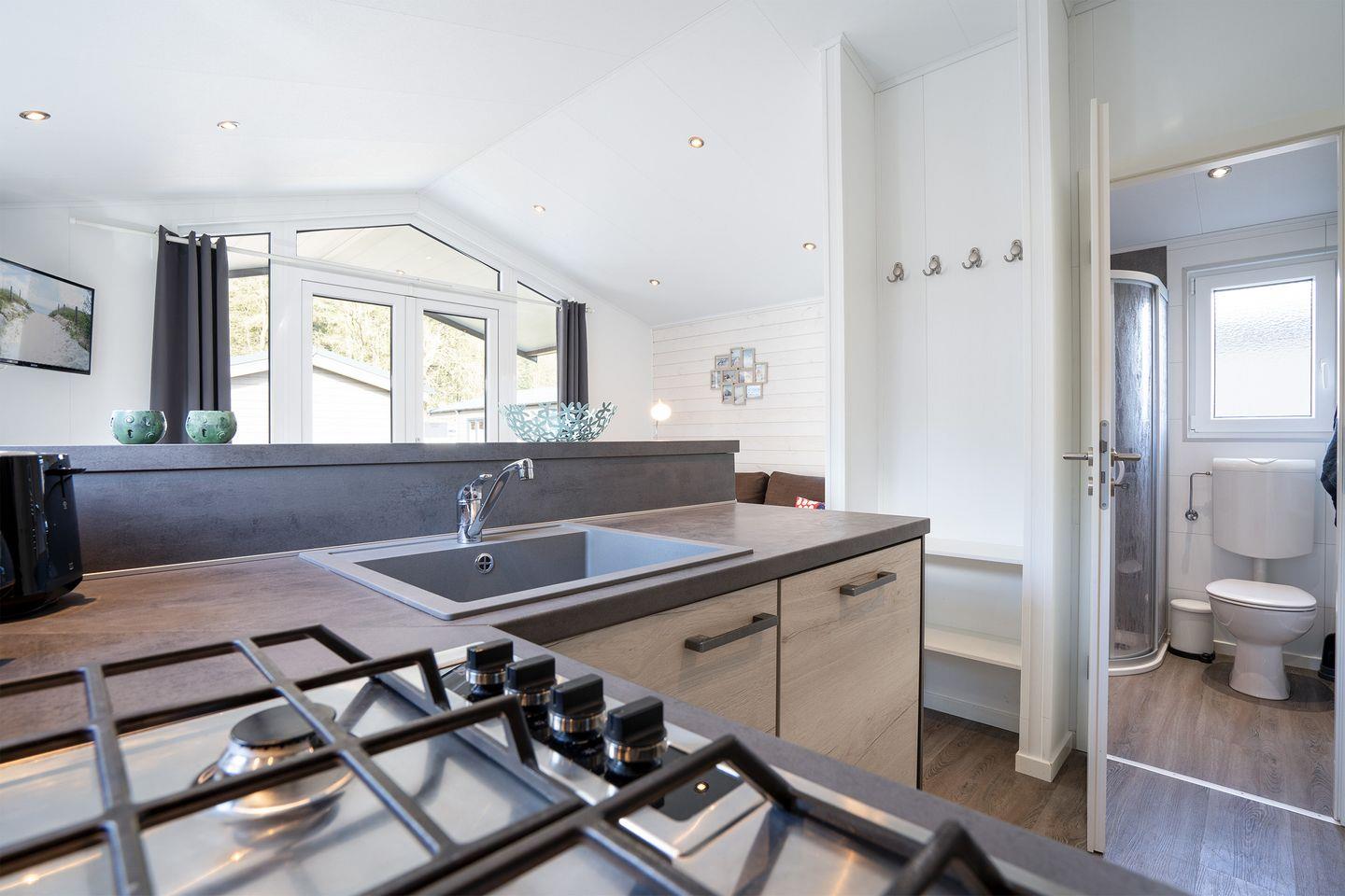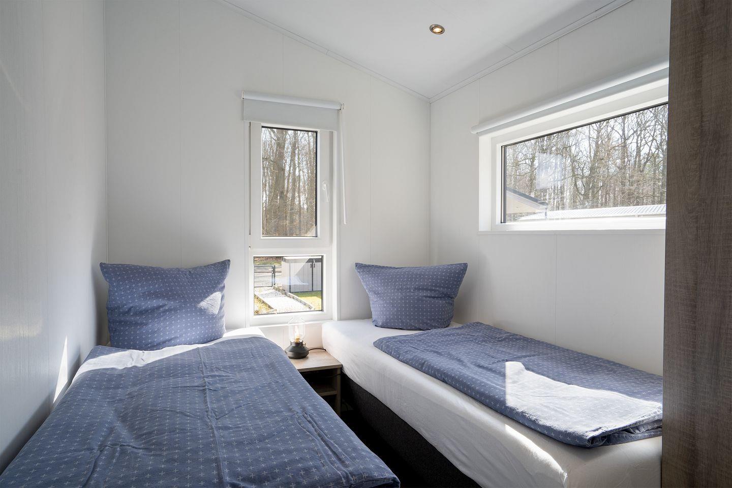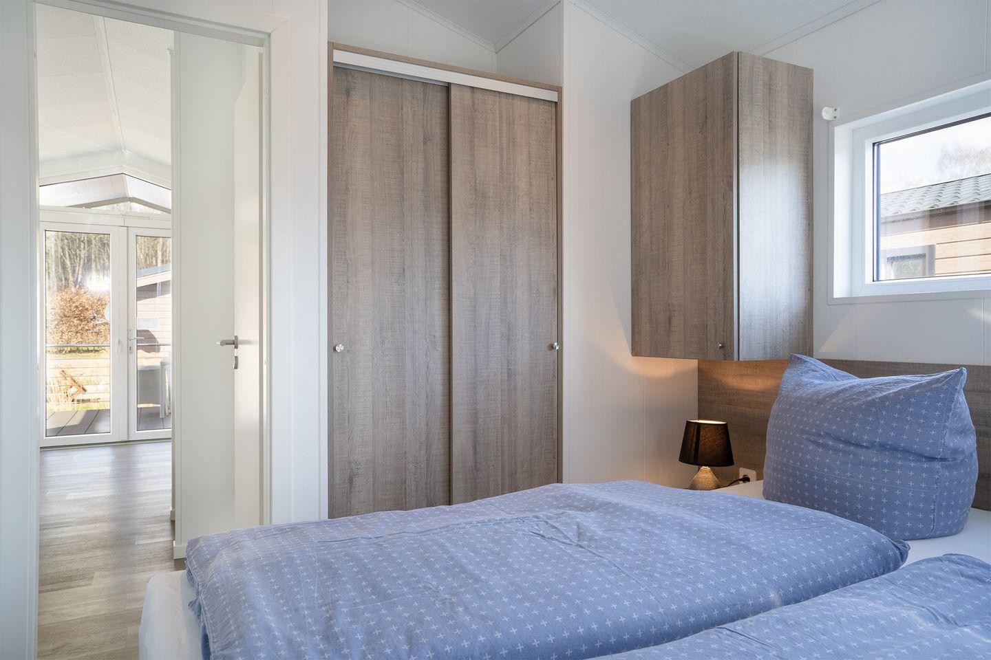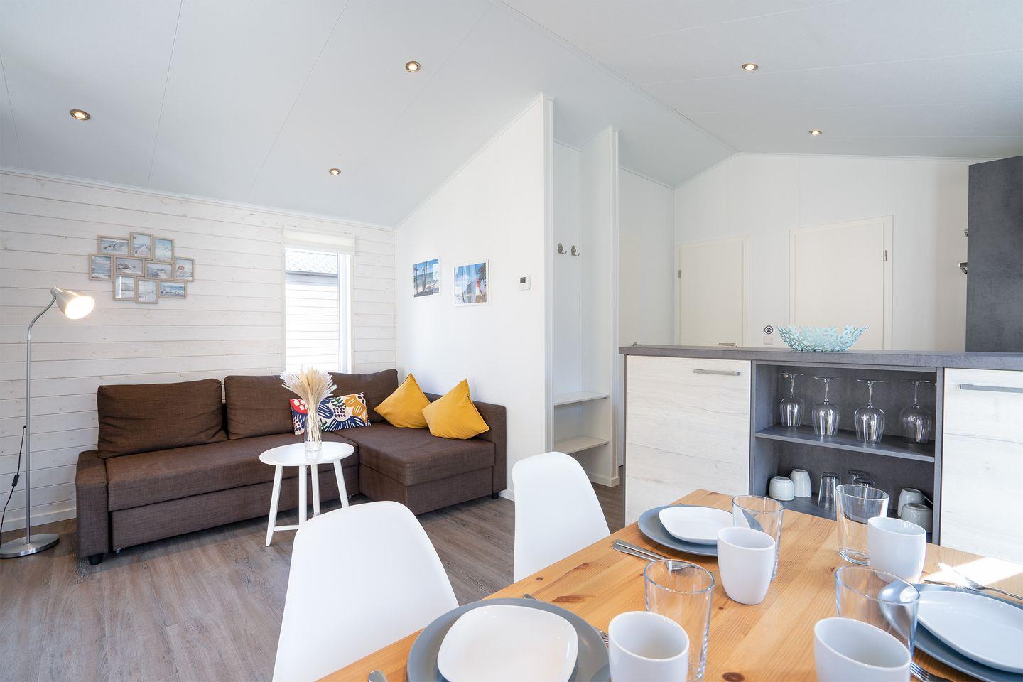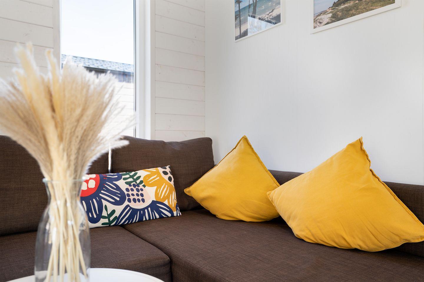 Das Chalet »Passat» verfügt bei einer Wohnfläche von 40 qm über zwei Schlafzimmer (1 Doppelbett, 2 Einzelbetten), einen Aufenthalts-/Essbereich mit Flachbild-Sat-TV und gemütlicher Sofaecke. Das Sofa kann zu einem weiteren Doppelbett ausgeklappt werden, sodass bis zu sechs Personen Platz finden.