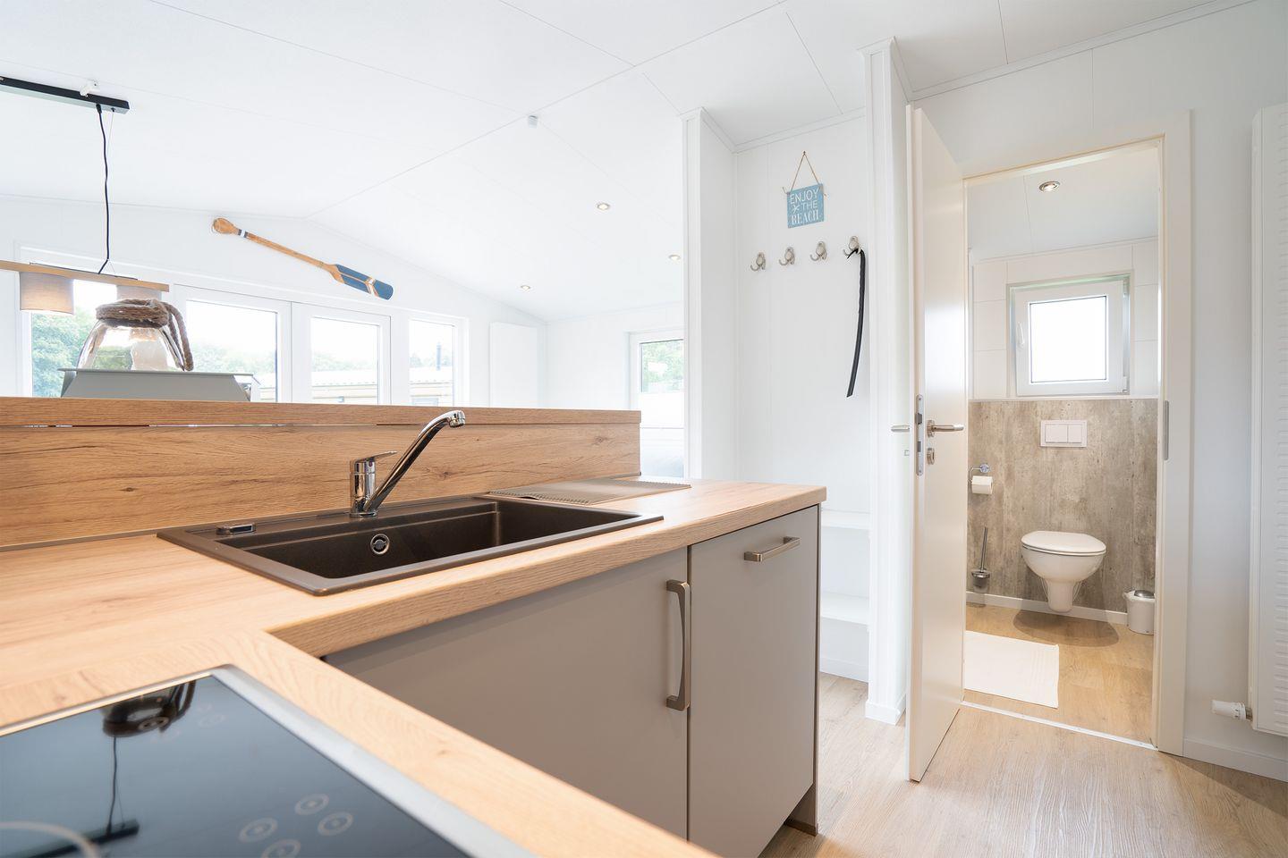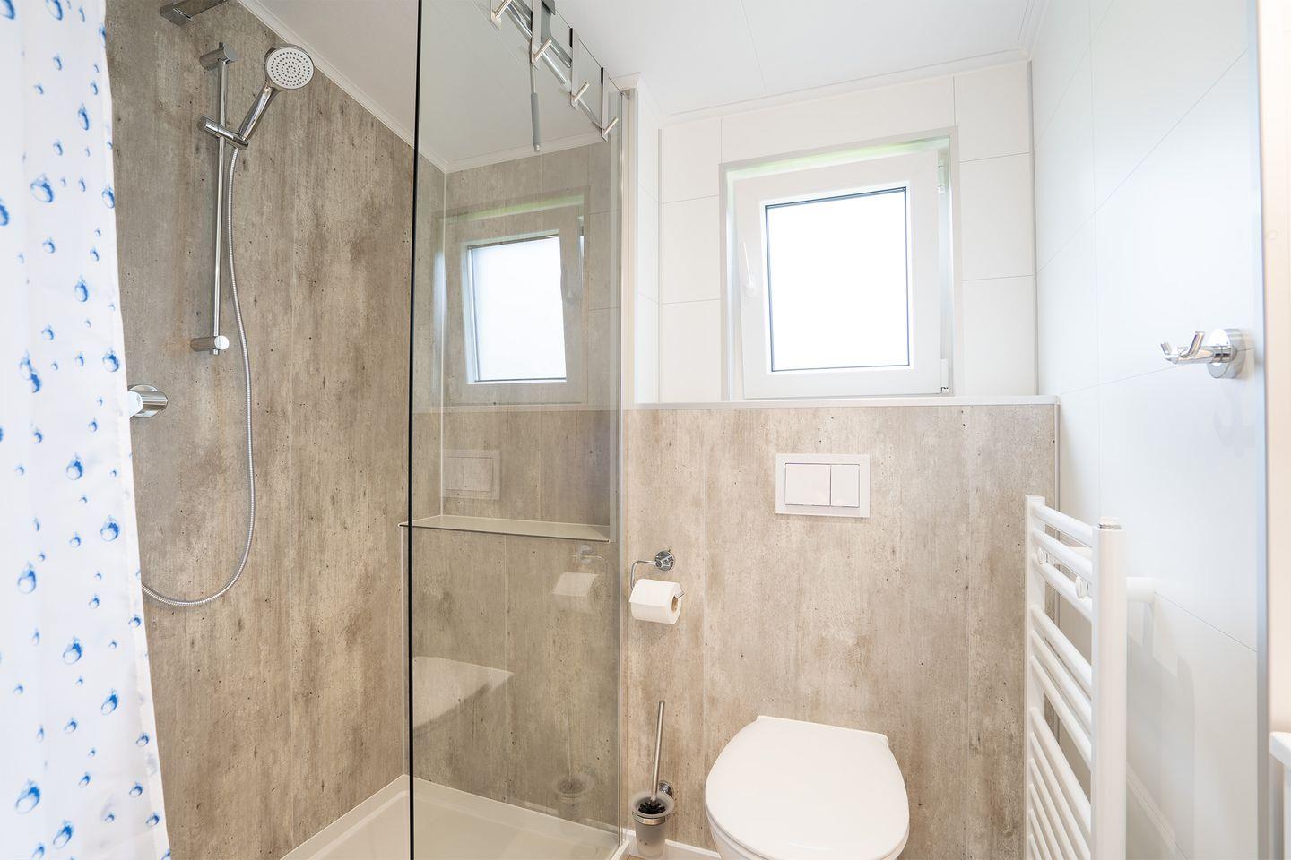 Neben dem eigenen Bad im Ferienhaus stehen auf dem Platz weitere Sanitärgebäude und ein Waschhaus mit Waschmaschine/Trockner (gegen Gebühr) zur Verfügung.