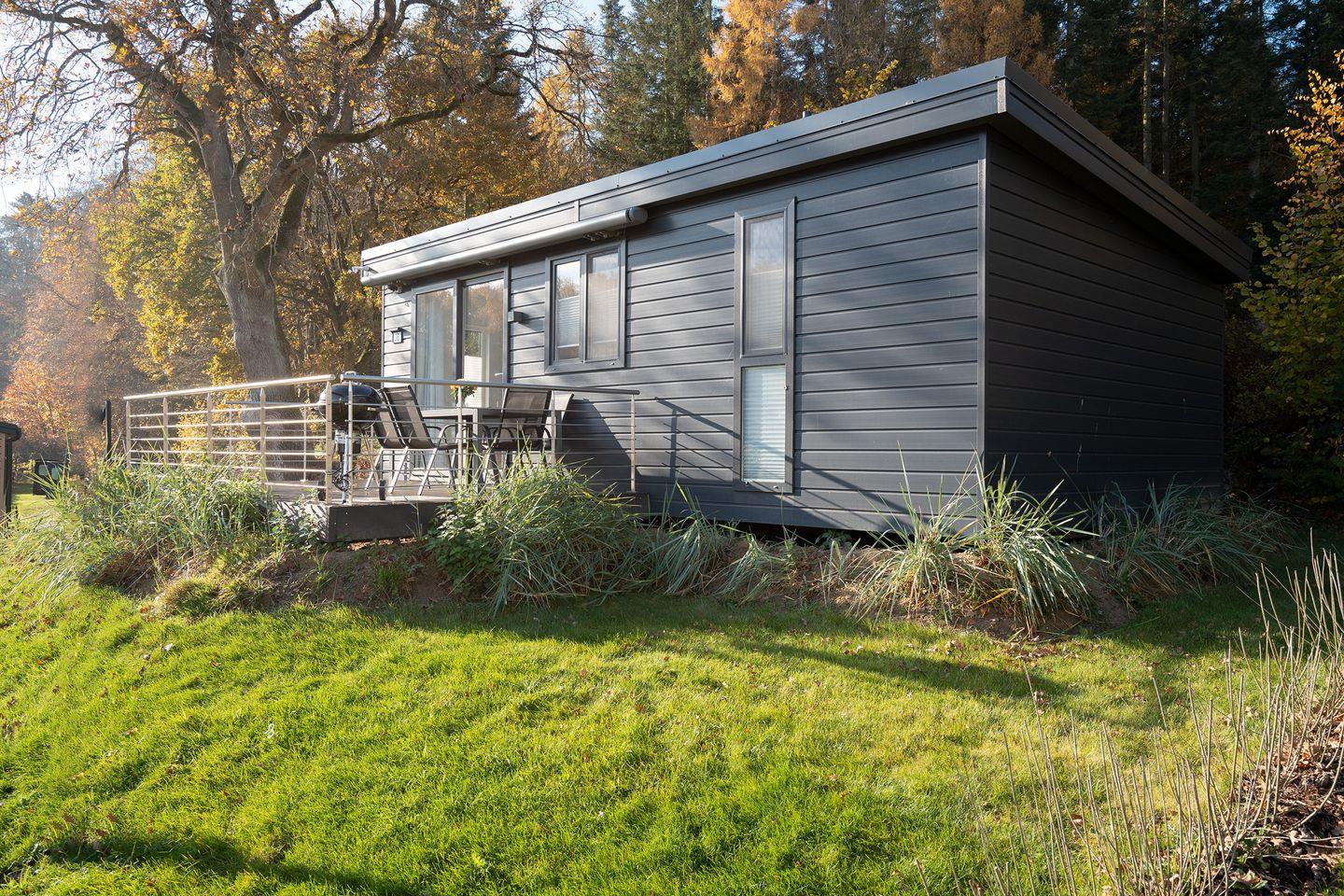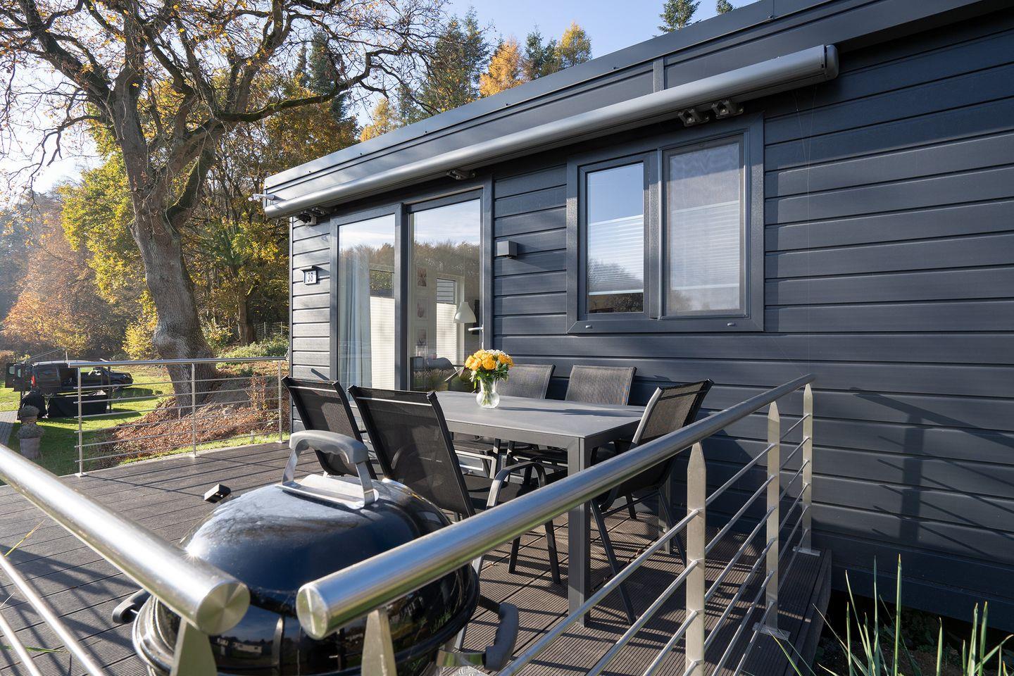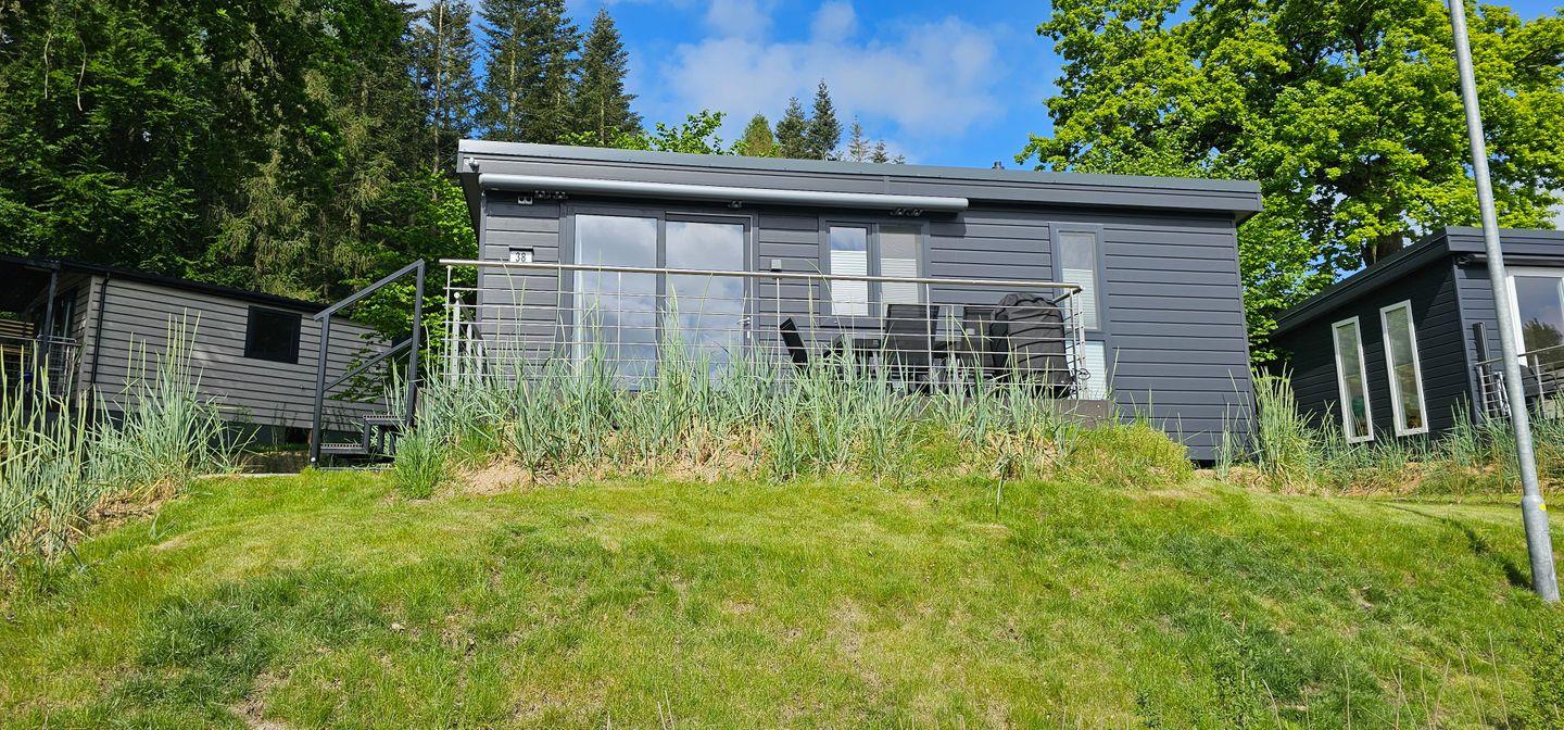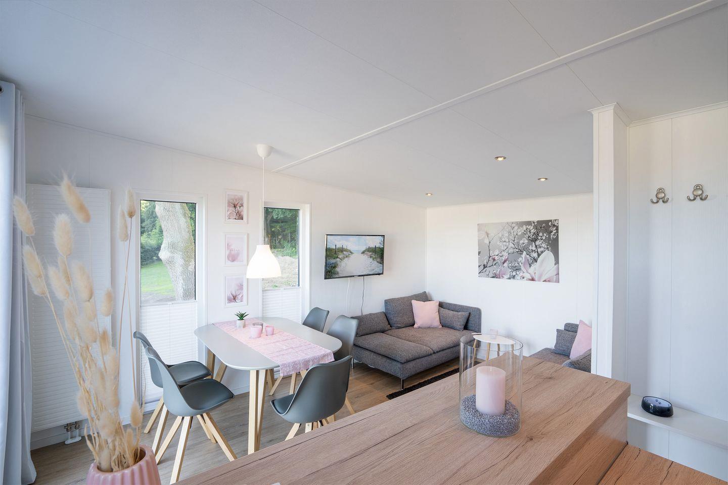 Modernes Mobilheim RELAX im Ostseecamp Scharbeutz mit Terrasse, Garten, WLAN und privatem Parkplatz.