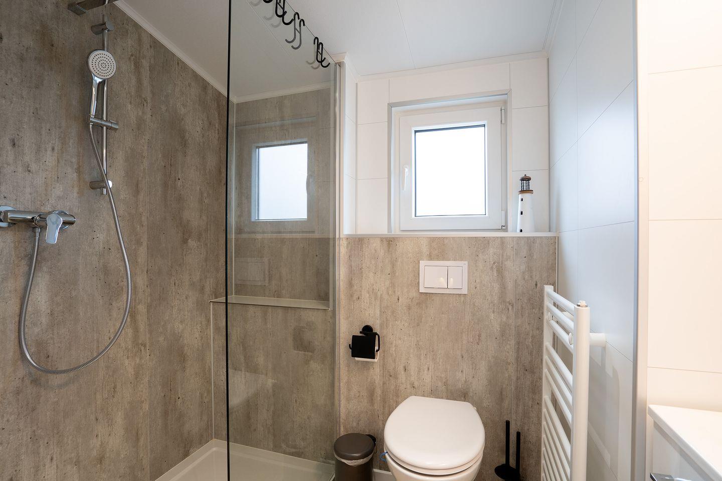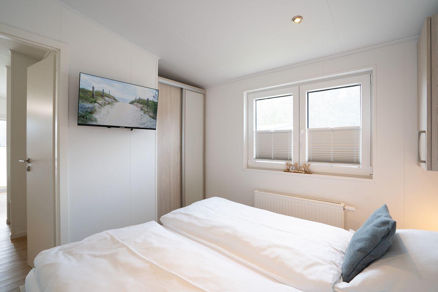 Sowohl im Wohn- und Essbereich als auch im Hauptschlafzimmer befindet sich ein Flachbild-TV. Das Ferienhaus Ju-Li bietet ein Hauptschlafzimmer mit Doppelbett (180x200cm, offenes Fußende), das zweite Schlafzimmer mit einem Etagenbett (Liegefläche oben 80x200cm, Liegefläche unten 140x200cm) ist für Kinder bis 14 Jahre bestens geeignet. Ein modernes Duschbad sorgt für Erfrischung.