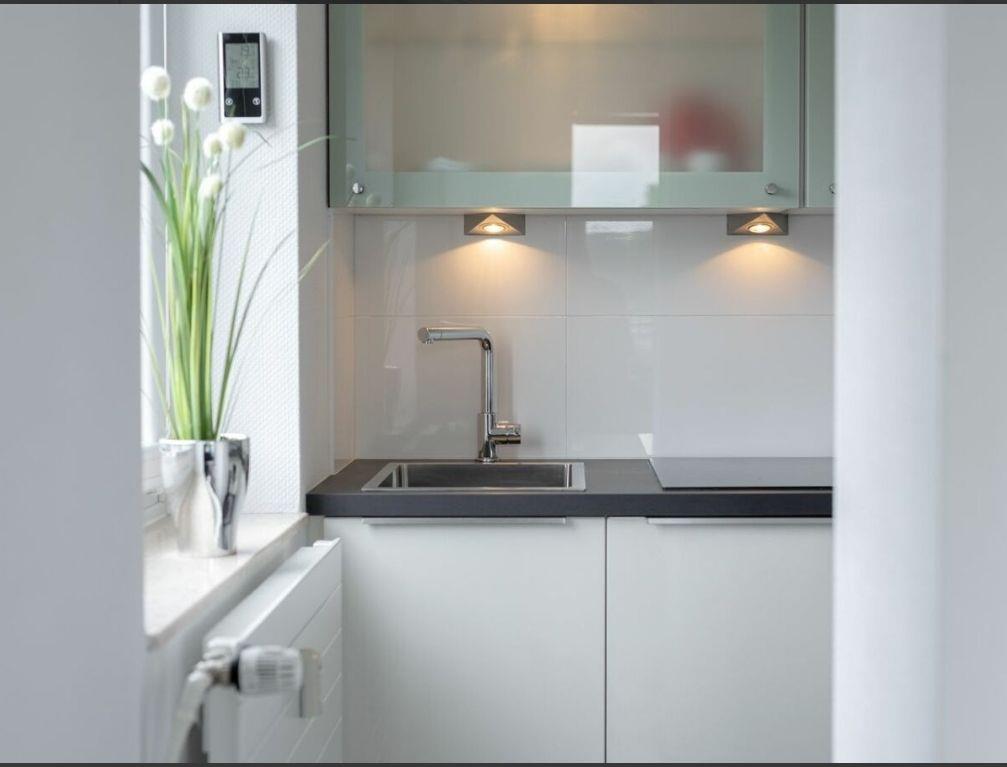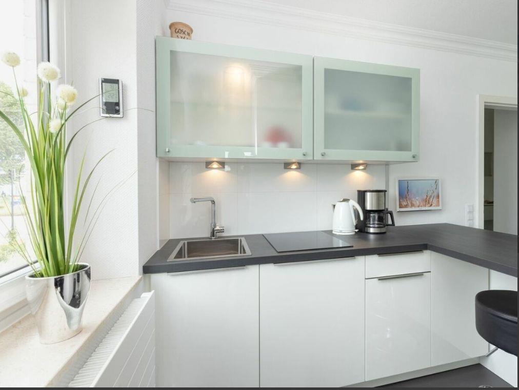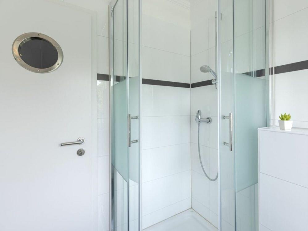 Die offene Küchenzeile, räumlich vom Wohnzimmer getrennt, ist bestens ausgestattet mit einem Cerankochfeld, einem Toaster, einer Kaffeemaschine, einem Wasserkocher und sogar einem kleinen LCD-Fernseher. Der Essbereich ist als Tresenlösung in die Küche integriert. Vom Küchenfenster aus genießen Sie einen seitlichen Meerblick. Das moderne Badezimmer mit großer Dusche und Fenster lässt keine Wünsche offen.