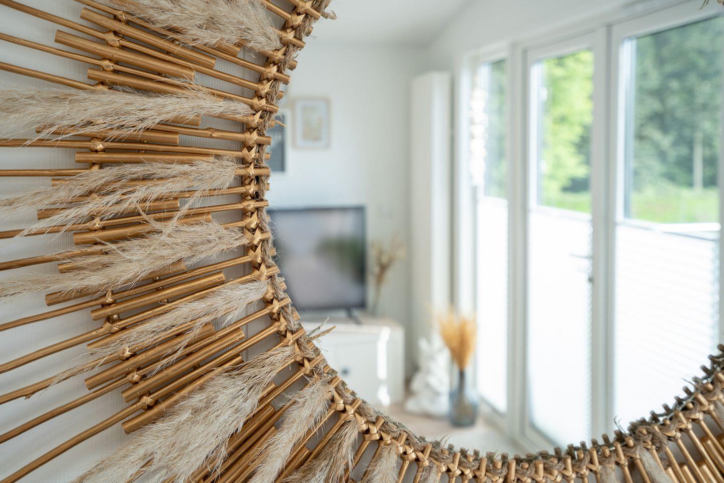 Auf der großen Terrasse steht Ihnen ein Weber-Holzkohle-Kugelgrill und eine Sitzgruppe für leckere Grillabende zur Verfügung. Eine 1,80 m hohe Seitenmarkise sorgt für viel Privatsphäre auf Ihrer Terrasse und der Sonnenschirm spendet bei Bedarf Schatten. Im Garten warten schon Ihre 2 Sonnenliegen - und damit auch bei Schmuddelwetter keine Langeweile aufkommt, haben wir neben den Fernsehern, Spiele und eine kleine Bücher-Tauschbibliothek für unsere Gäste bereitgestellt.