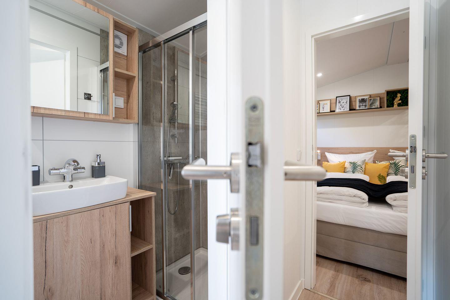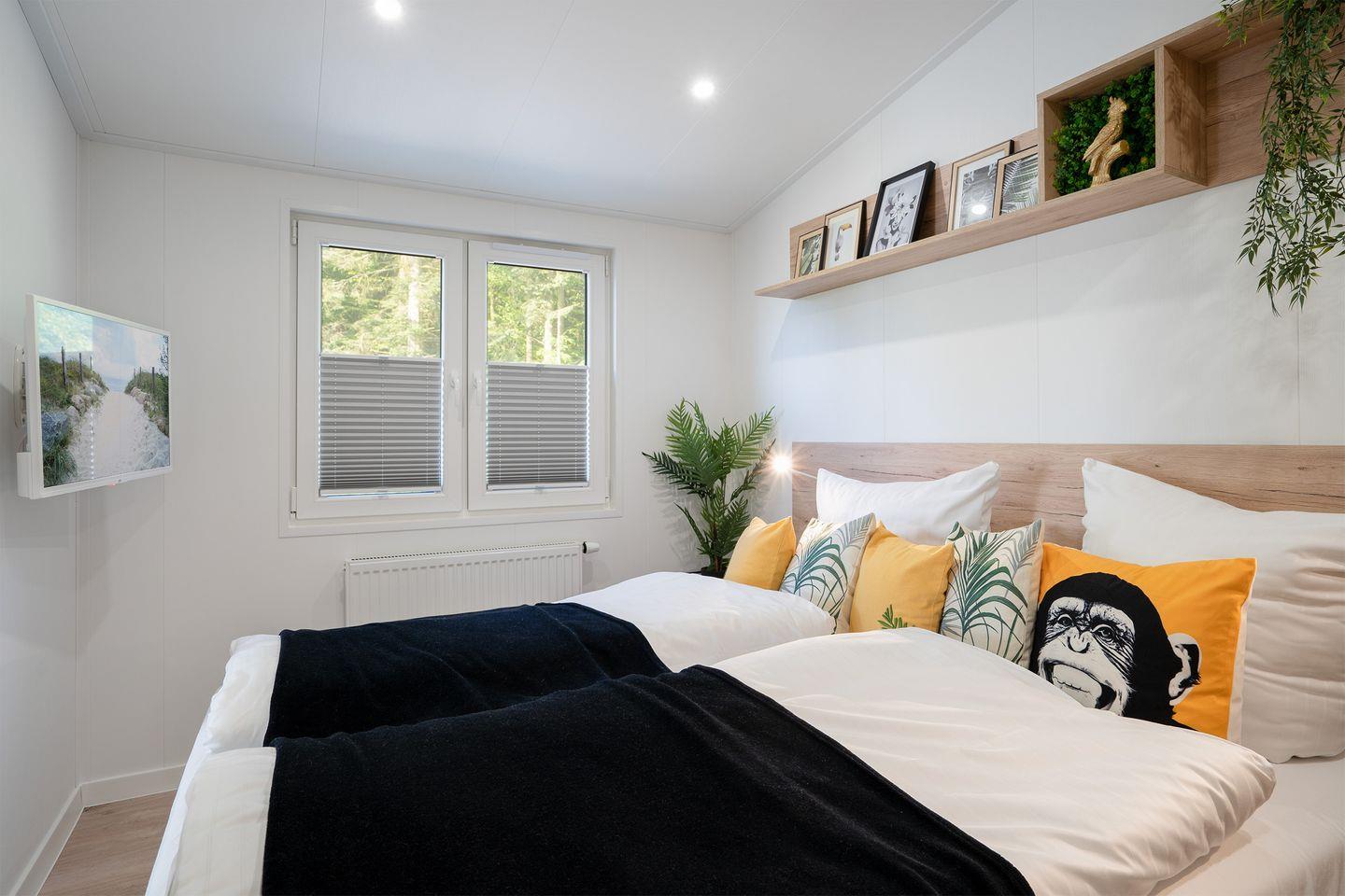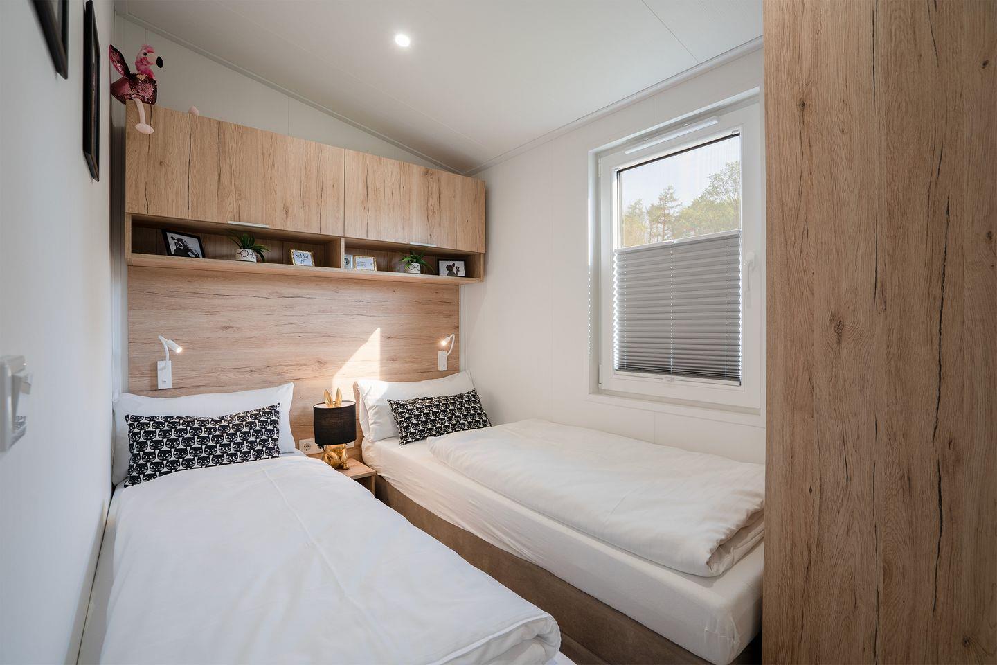 Zwei separate Schlafzimmer (1 Doppelbett im Hauptschlafraum und 2 Einzelbetten im Kinderzimmer) mit Verdunklungsplissees und Fliegengitter sorgen für ausgeruhte Nächte. Das Hauptschlafzimmer verfügt zusätzlich über einen weiteren Smart-TV und beleuchteten Schminktisch oder Arbeitsplatz bei Bedarf. In beiden Räumen stehen Ihnen großzügige Kleiderschränke mit ausreichend Stauraum zur Verfügung.