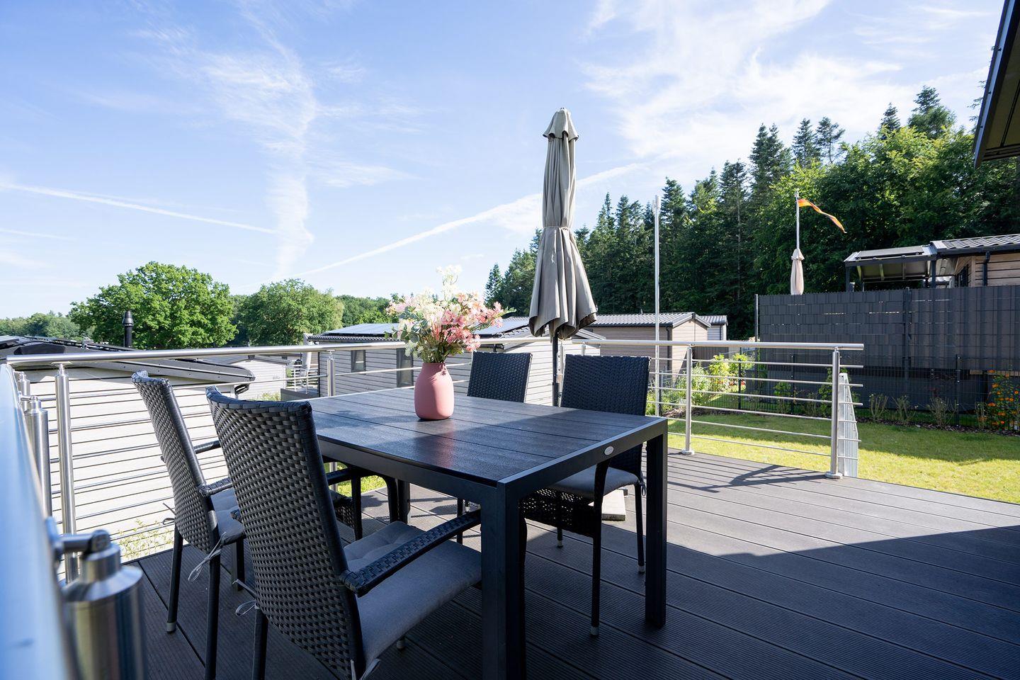 Gemütliches Ferienhaus Fuchsbau in Scharbeutz mit zwei Schlafzimmern, moderner Ausstattung und überdachter Terrasse zum Entspannen.
