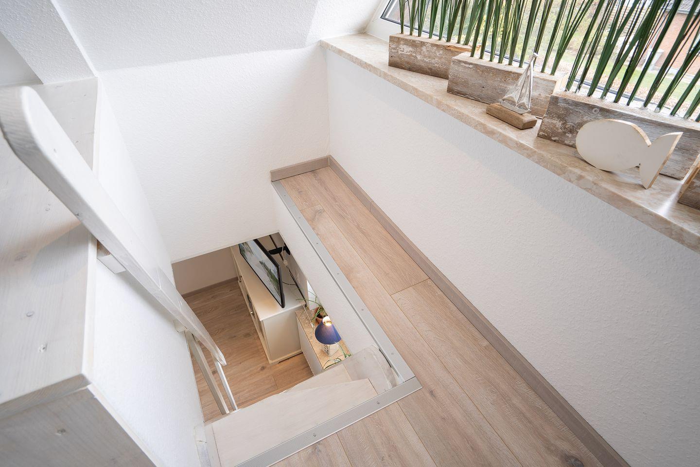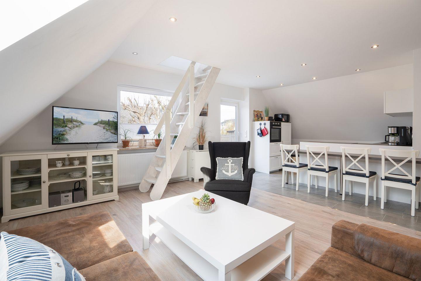 Bitte beachten Sie, die Wohnung liegt in der ersten Etage (kein Aufzug), die Treppe zur offenen zweiten Schlafebene ist sehr steil und nicht für kleine Kinder gesichert.