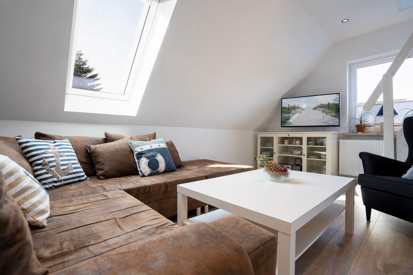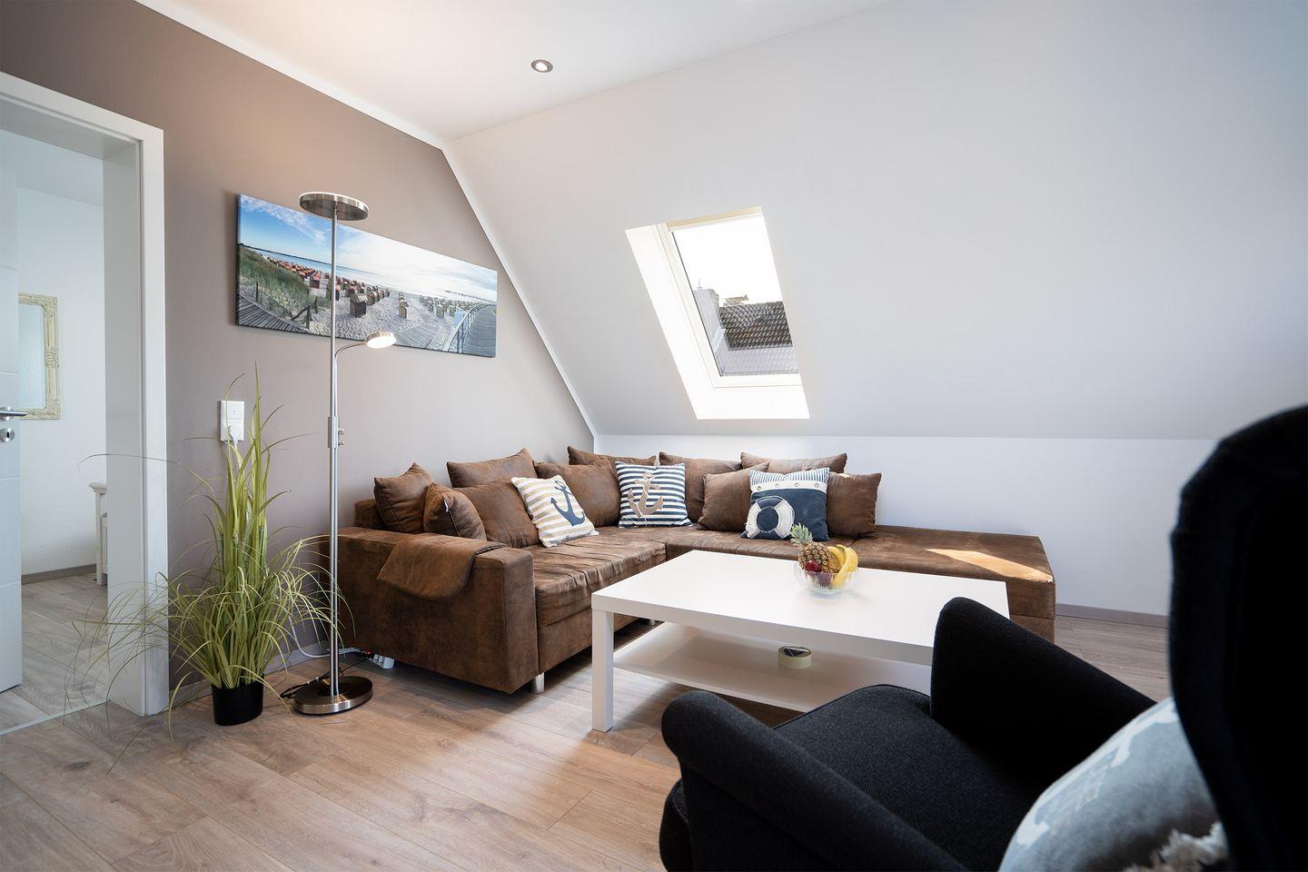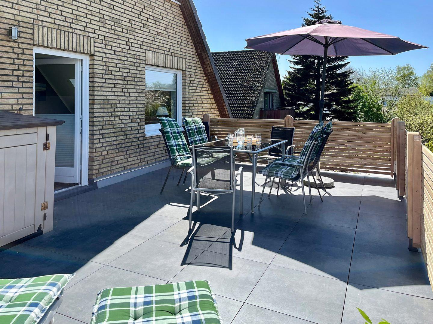 Frisch renovierte Maisonette-Ferienwohnung in Scharbeutz, nur 400 m vom Strand entfernt mit großer Dachterrasse.