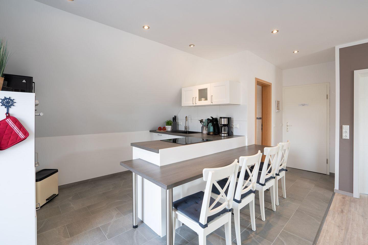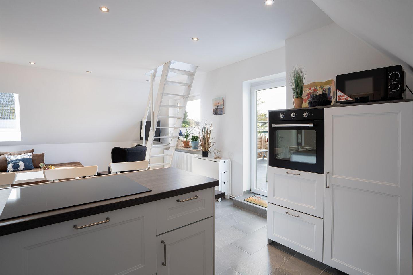 Die vollausgestattete Küche mit Spülmaschine, Kaffeemaschine, Senseo, Mikrowelle, Induktionsherd, Backofen, großem Kühlschrank mit Tiefkühlfach und vielem mehr, lädt zum Verweilen ein.