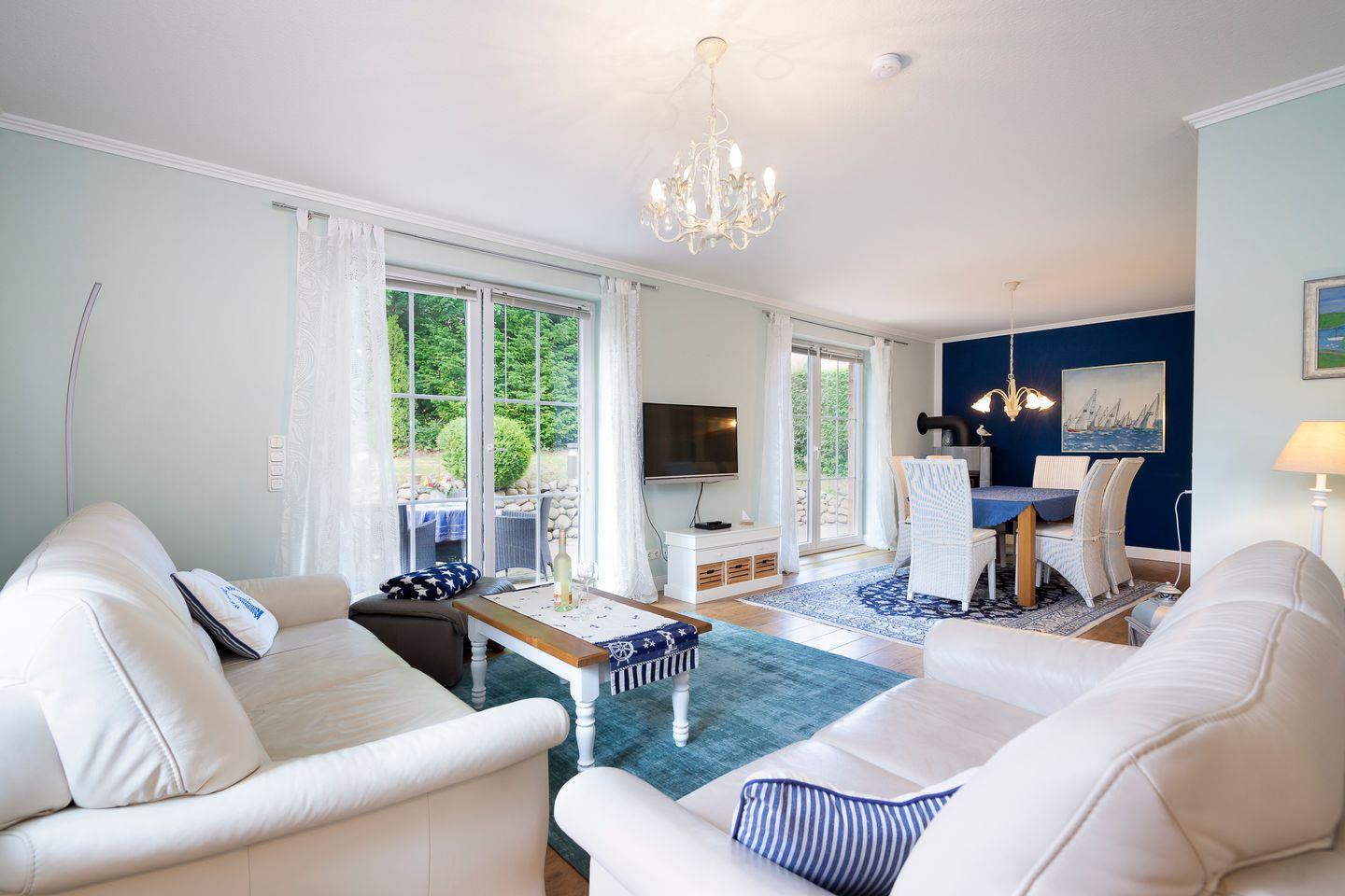 Die großzügig aufgeteilte, 100 m2 große 3-Zimmer-Ferienwohnung mit eingegrünter Terrasse liegt in einer ruhigen Wohngegend von Scharbeutz und ist der ideale Ort für einen erholsamen Urlaub an der Ostsee. In weniger als 10 Gehminuten sind Sie am Strand und der Promenade, ca. 15 Minuten laufen Sie bis in die Ortsmitte. Die geschmackvoll und maritim eingerichtete Wohnung teilt sich auf in einen großen Wohn- und Essbereich mit offener Küche und zwei Schlafzimmer mit komfortablen Doppelbetten. Die Einbauküche ist mit Spülmaschine, Backofen, Herd und Mikrowelle voll ausgestattet. Der Kaminofen im Wohn- und Essbereich spendet behagliche Wärme für gemütliche Mußestunden. Das Gäste-WC ist zusätzlich mit einer Dusche ausgestattet, das Badezimmer verfügt über Badewanne und Bidet. Ihren PKW oder Ihre E-Bikes können Sie in der zum Haus gehörenden Garage parken. Der Garten rund um das Haus ist eingezäunt und bietet viel Platz zum Spielen.