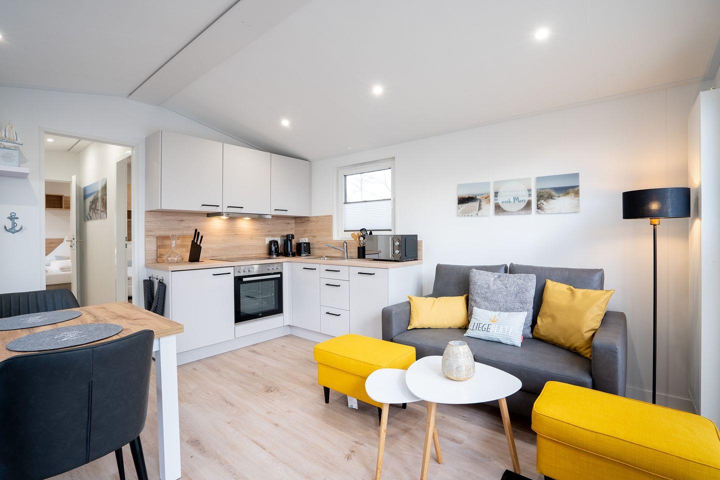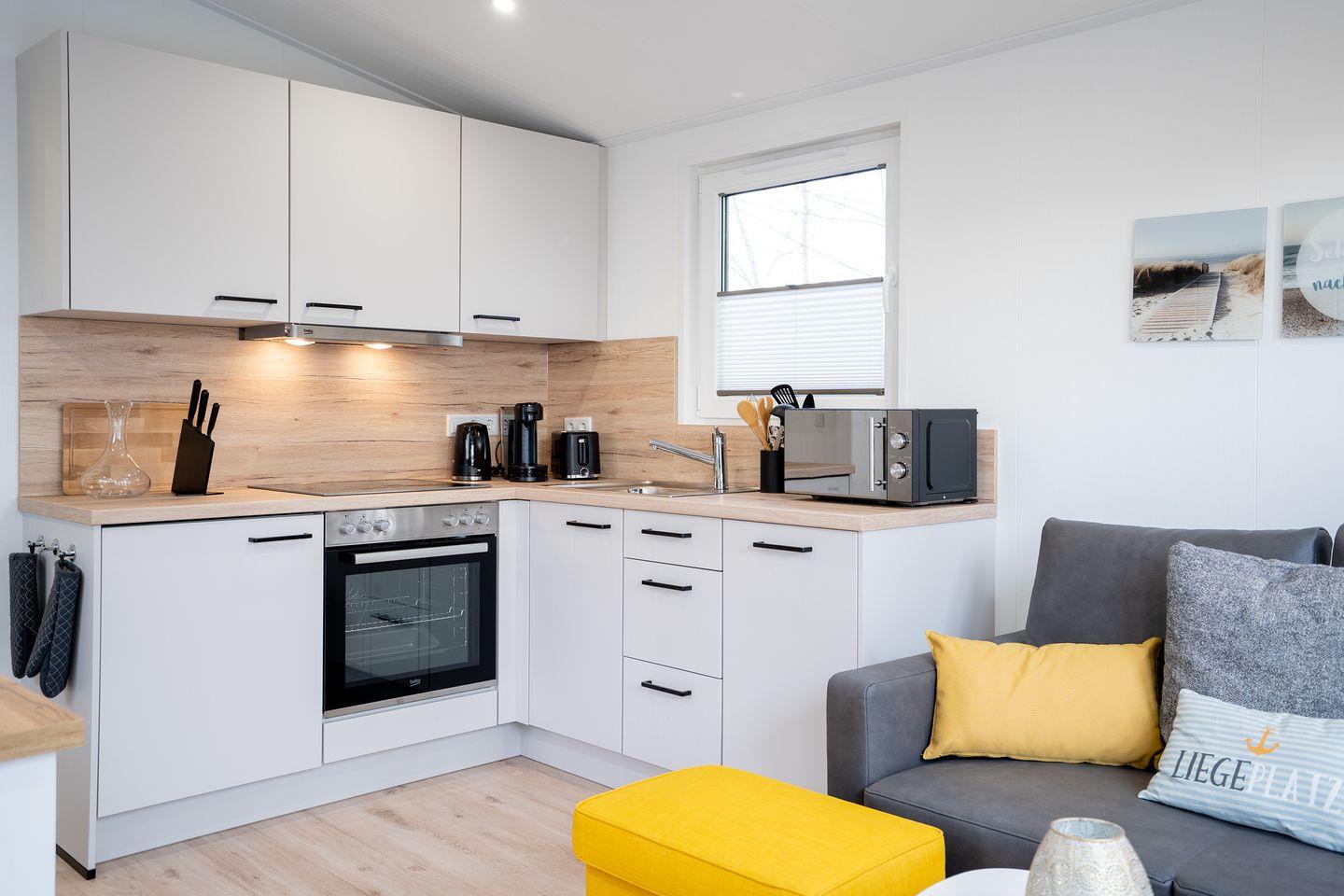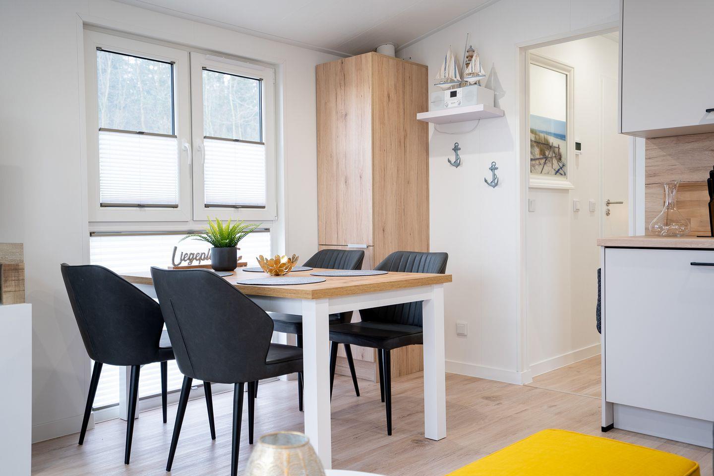 Im Inneren des Ferienhauses finden Sie eine gut ausgestattete Küche, in der Sie Ihre Lieblingsgerichte zubereiten können. Das Badezimmer ist modern und komfortabel ausgestattet. Das offene Wohn- und Esszimmer lädt zu gemeinsamen Mahlzeiten und gemütlichen Abenden ein. Das Ferienhaus "Liegeplatz" ist der ideale Ort, um familiäre Geborgenheit zu erleben.